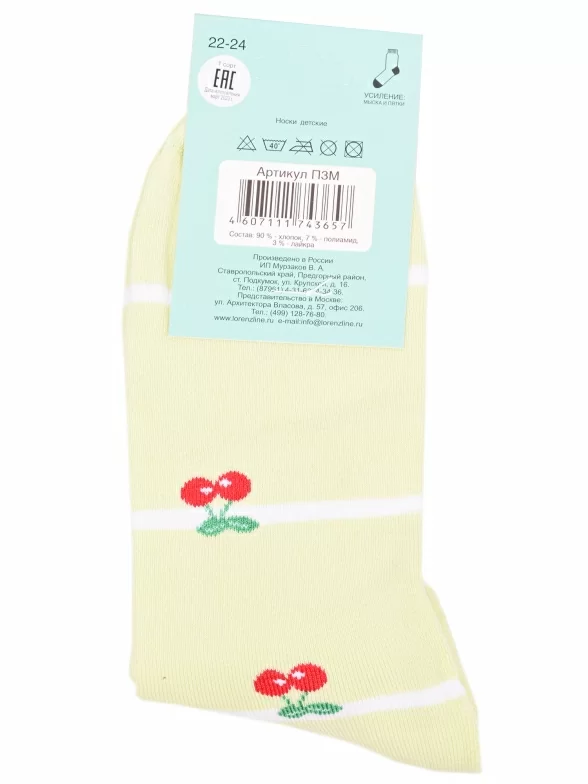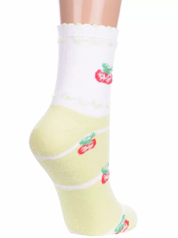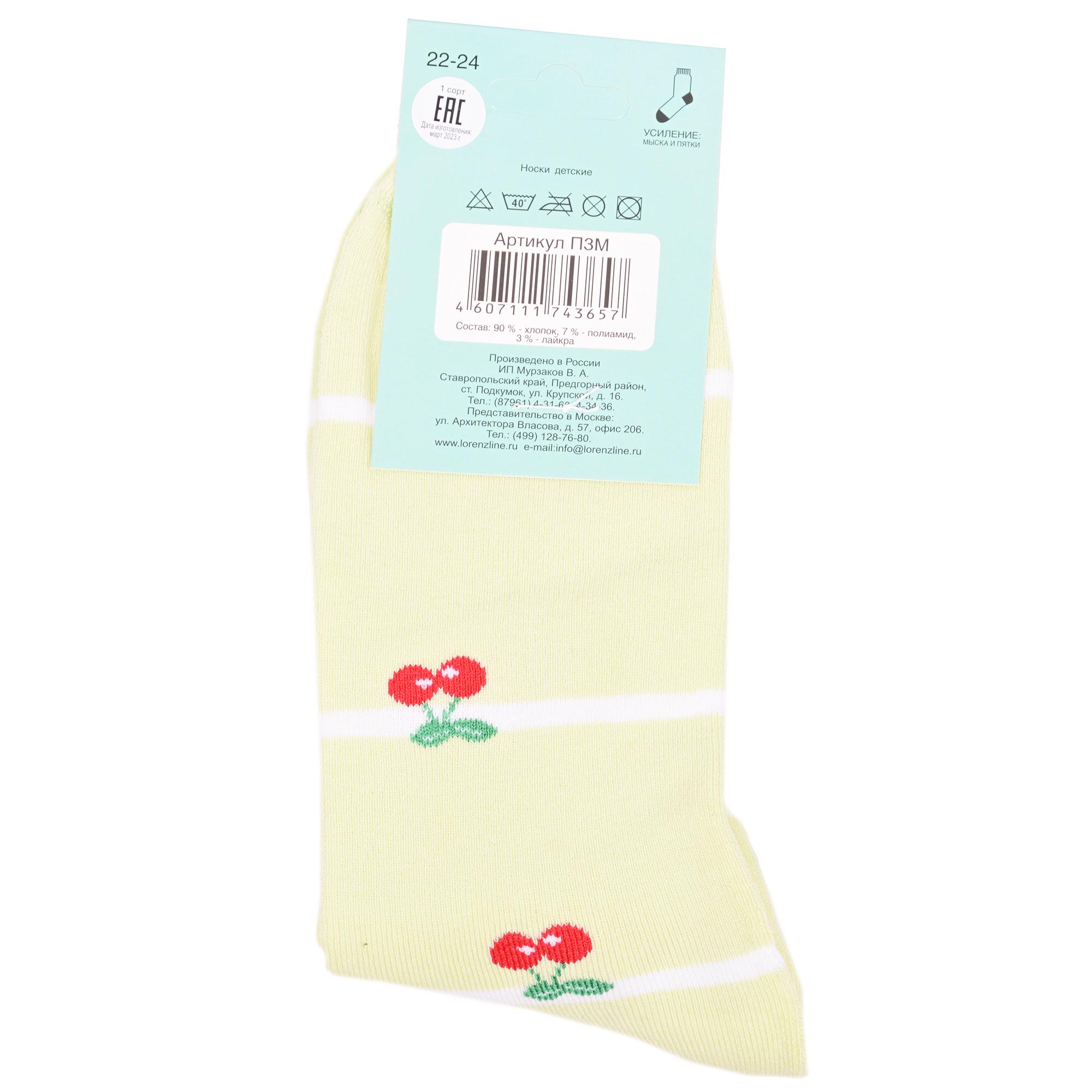 Межсезонные или зимние укороченные детские носки, цвет салатовый, теплые, повседневные, махровые, возможно бесшовные, принт (рисунок): овощи / фрукты / ягоды, полоски, с узором, состав: 90% хлопок, 7% полиамид, 3% эластан (лайкра), арт. П3М. Производитель «ИП Мурзаков В.А., Ставропольский край, Россия» под брендом «Lorenzline».