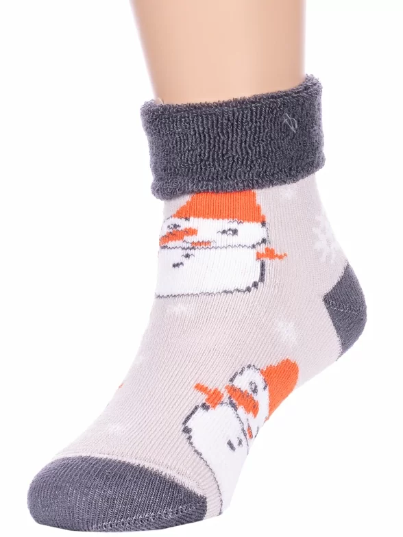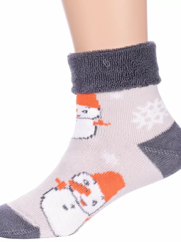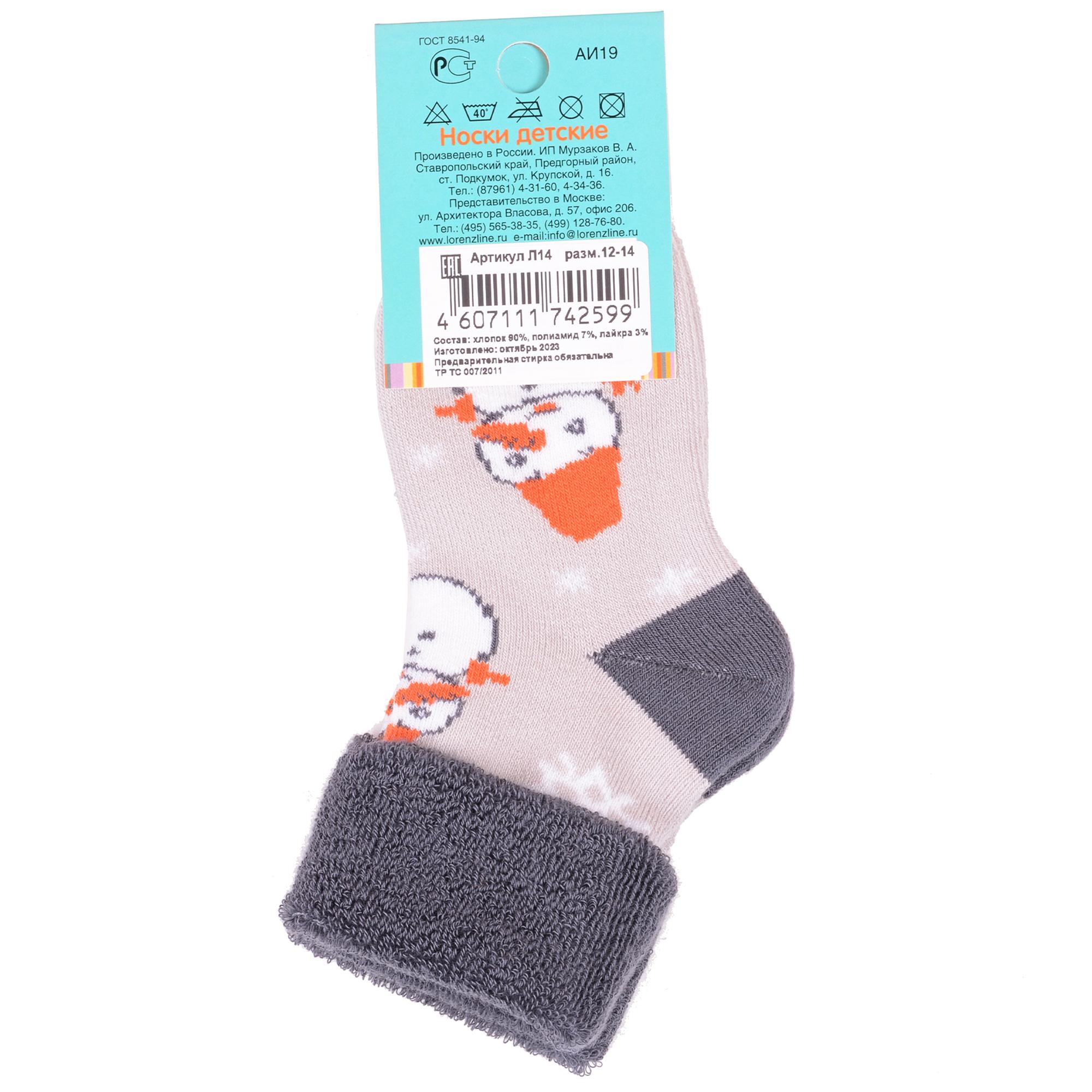 Межсезонные или зимние укороченные детские носки, цвет бежевый-серый, теплые, с отворотом, с принтом, махровые, состав: 90% хлопок, 7% полиамид, 3% эластан (лайкра), арт. Л14. Производитель «ИП Мурзаков В.А., Ставропольский край, Россия» под брендом «Lorenzline».