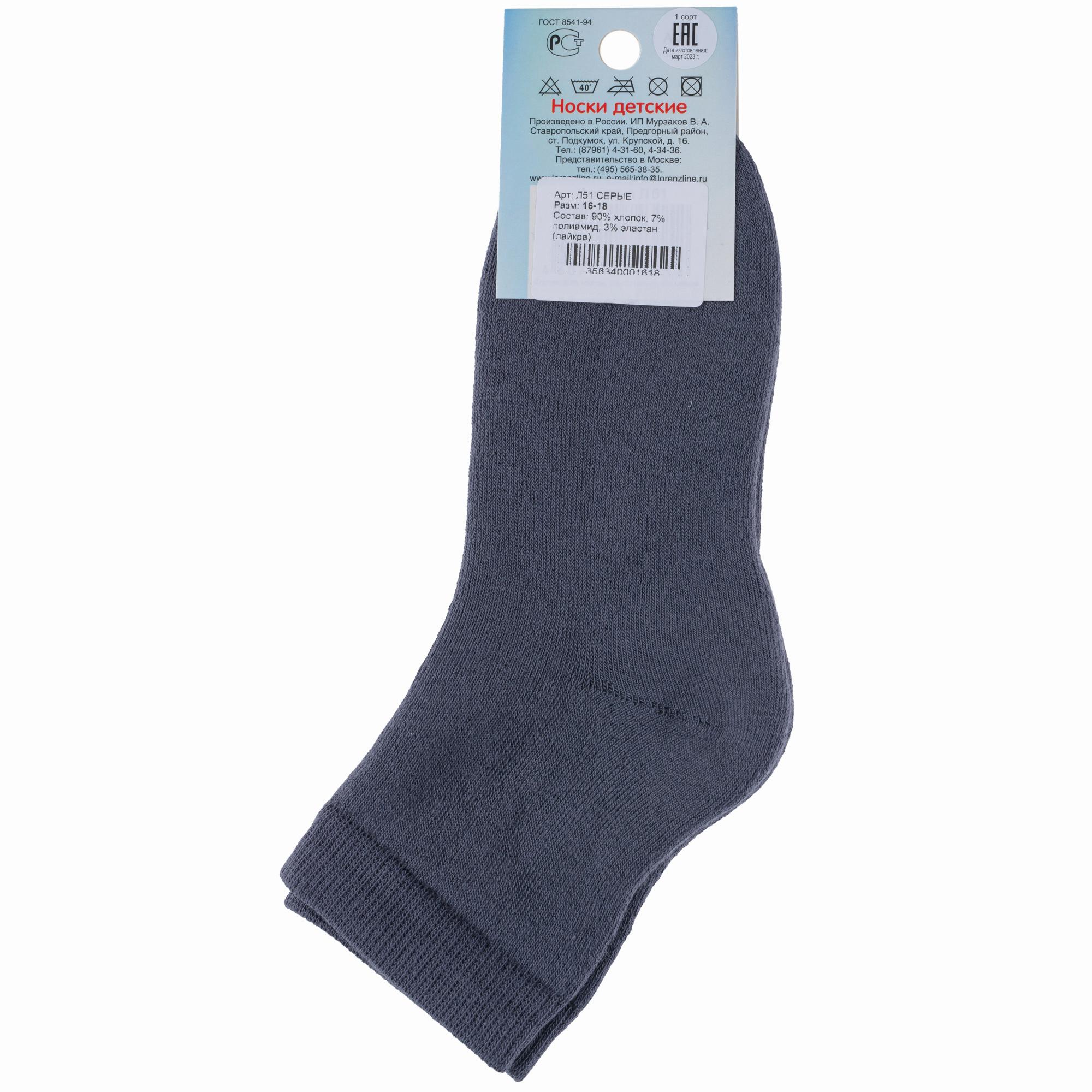 Зимние укороченные детские носки, цвет серый, теплые, махровые, классические, шов обычный (не бесшовные), принт (рисунок): однотонный, без рисунков/узоров, состав: 90% хлопок, 7% полиамид, 3% эластан (лайкра), арт. Л51. Производитель «ИП Мурзаков В.А., Ставропольский край, Россия» под брендом «Lorenzline».