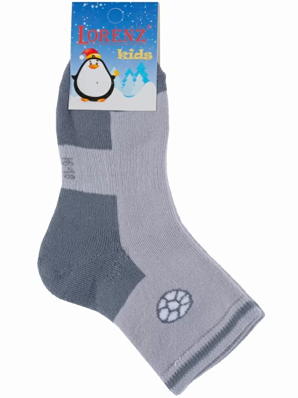 Зимние укороченные детские носки, цвет серый, теплые, спортивные, повседневные, махровые, шов обычный (не бесшовные), принт (рисунок): спортивные, игры, с узором, состав: 90% хлопок, 7% полиамид, 3% эластан (лайкра), арт. Л79. Производитель «ИП Мурзаков В.А., Ставропольский край, Россия» под брендом «Lorenzline».