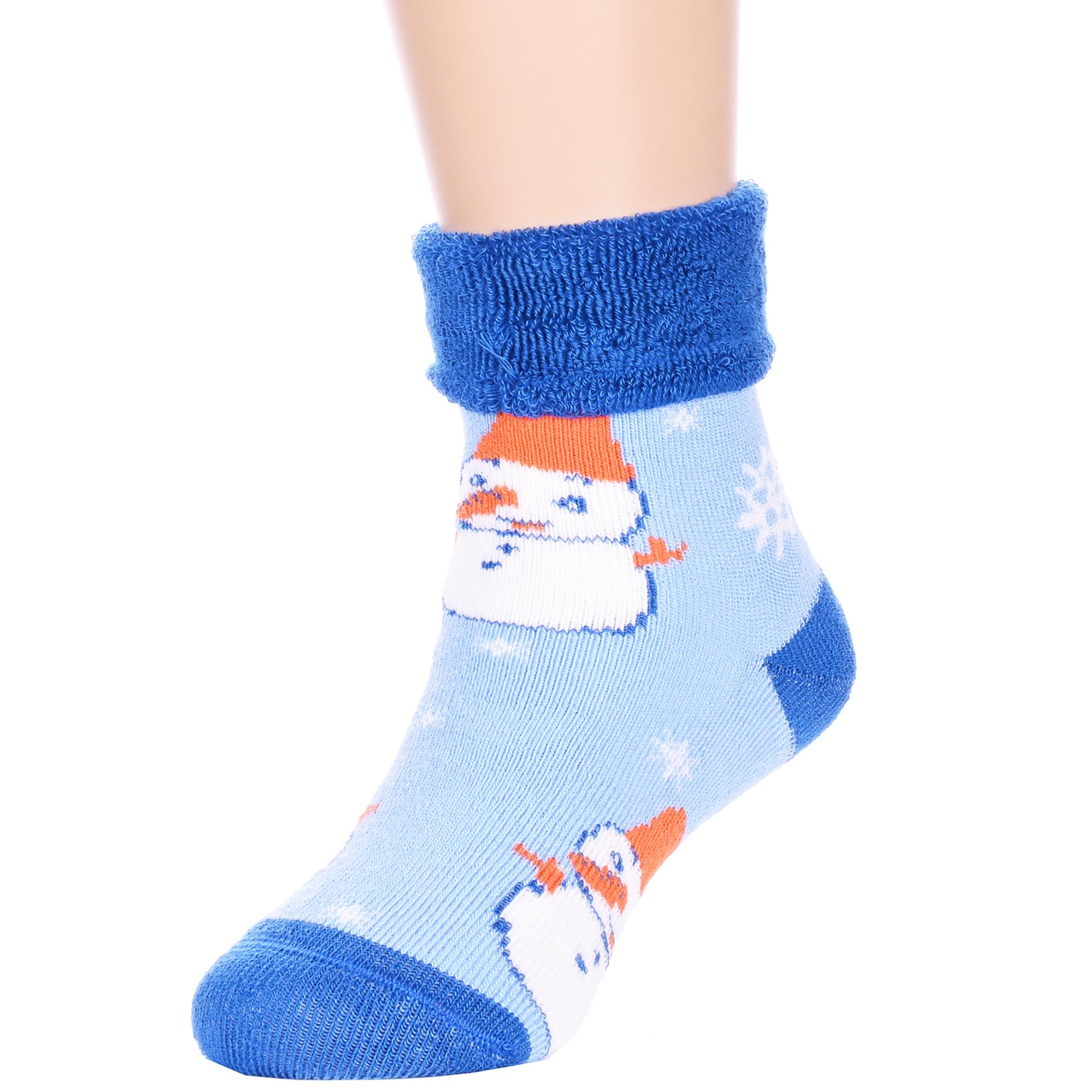 Зимние или межсезонные укороченные детские носки, цвет голубой-синий, теплые, с принтом, махровые, с отворотом, состав: 90% хлопок, 7% полиамид, 3% эластан (лайкра), арт. Л14. Производитель «ИП Мурзаков В.А., Ставропольский край, Россия» под брендом «Lorenzline».