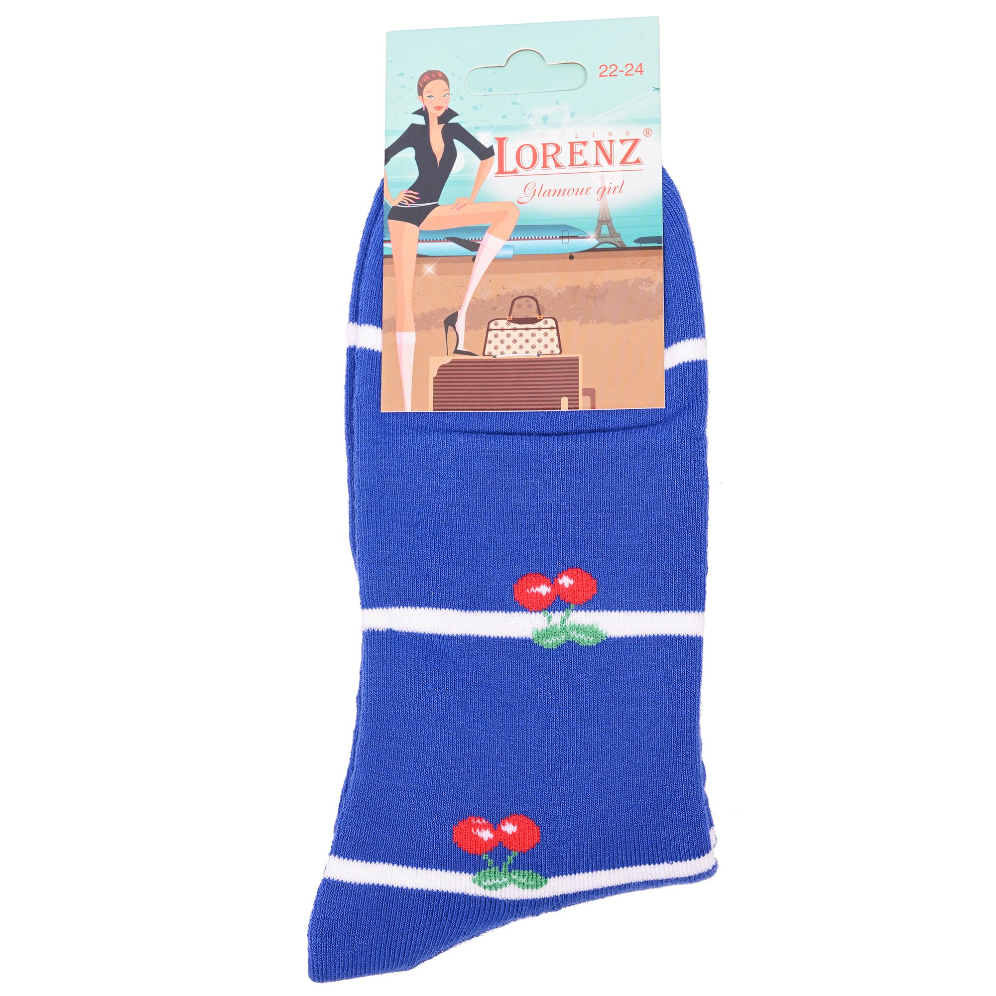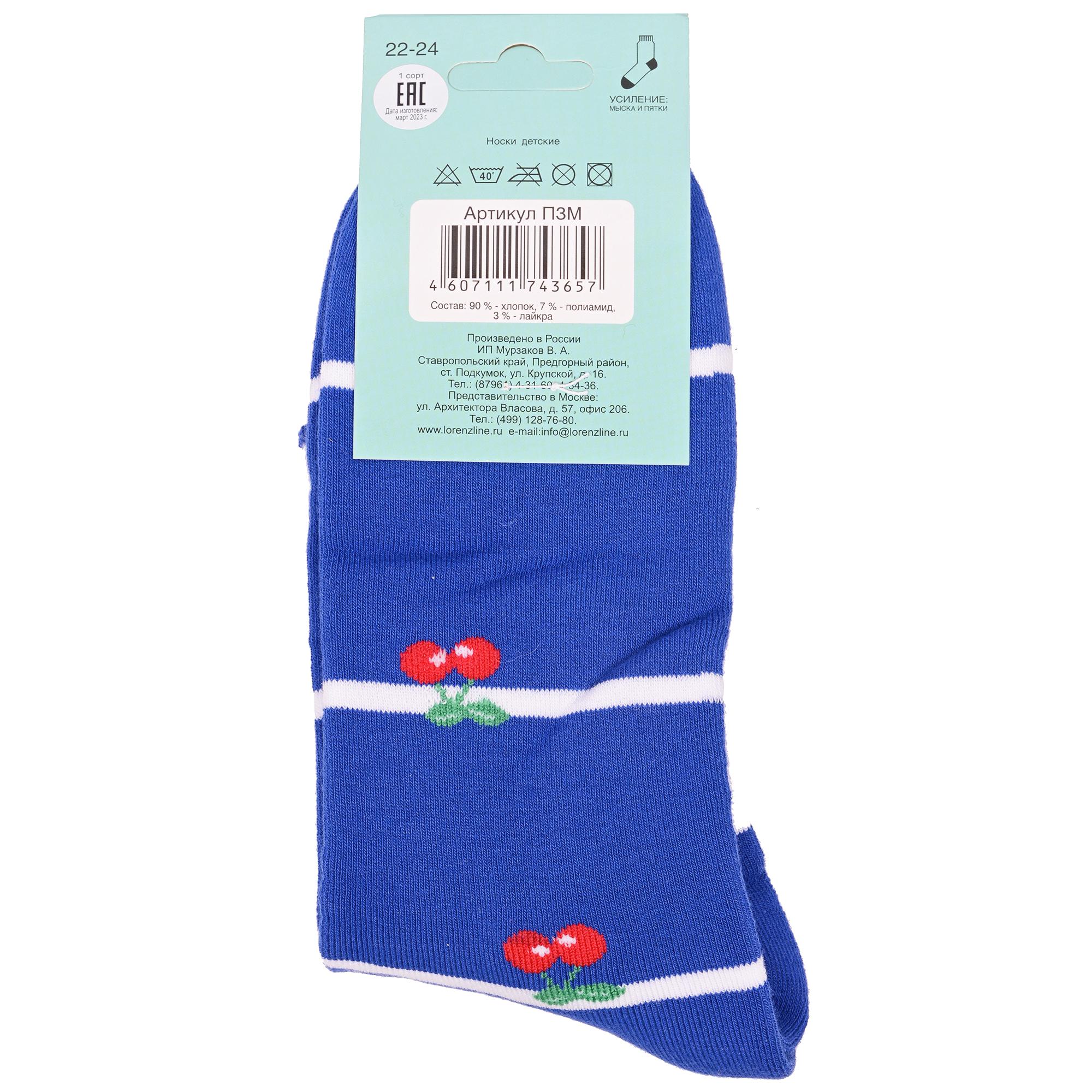 Межсезонные или зимние укороченные детские носки, цвет синий, теплые, повседневные, махровые, возможно бесшовные, принт (рисунок): овощи / фрукты / ягоды, полоски, с узором, состав: 90% хлопок, 7% полиамид, 3% эластан (лайкра), арт. П3М. Производитель «ИП Мурзаков В.А., Ставропольский край, Россия» под брендом «Lorenzline».