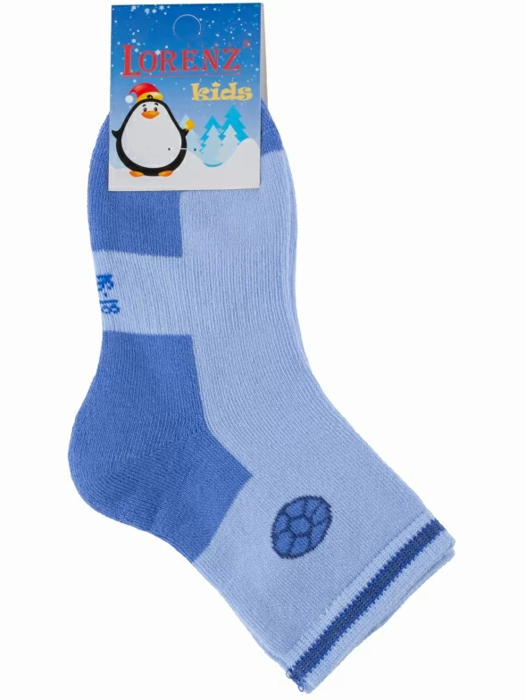 Зимние укороченные детские носки, цвет голубой, теплые, спортивные, повседневные, махровые, шов обычный (не бесшовные), принт (рисунок): спортивные, игры, с узором, состав: 90% хлопок, 7% полиамид, 3% эластан (лайкра), арт. Л79. Производитель «ИП Мурзаков В.А., Ставропольский край, Россия» под брендом «Lorenzline».