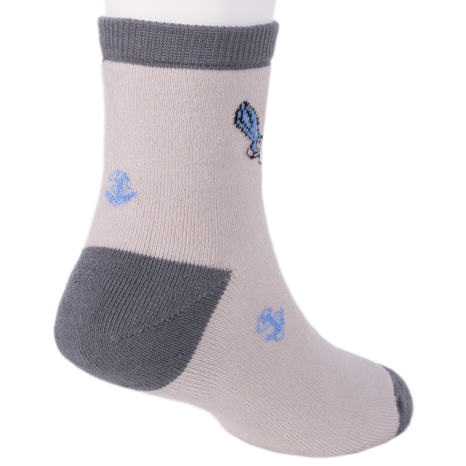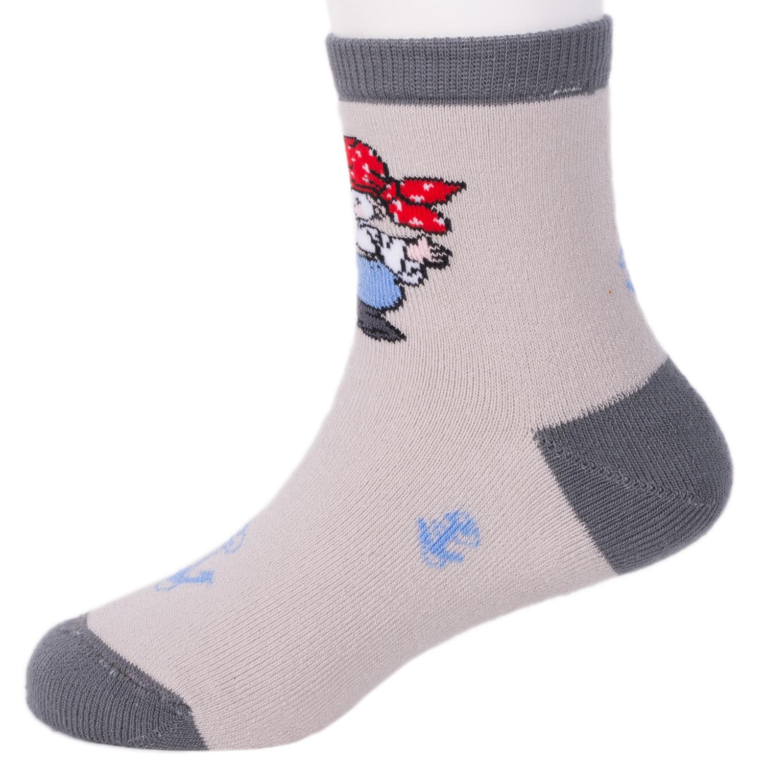 Красивые носки для детей светло-серого цвета с контрастной резинкой, мяском и пяткой. Производитель LORENZLine. Изготовлены в России на современном оборудовании, с использованием высококачественного хлопкового сырья. Состоят на 90% из хлопка. Модель с забавным пиратским принтом, который понравится каждому ребенку. После многочисленных стирок не теряют форму, не покрываются катышками. Эластичная резинка не перетягивает ногу.