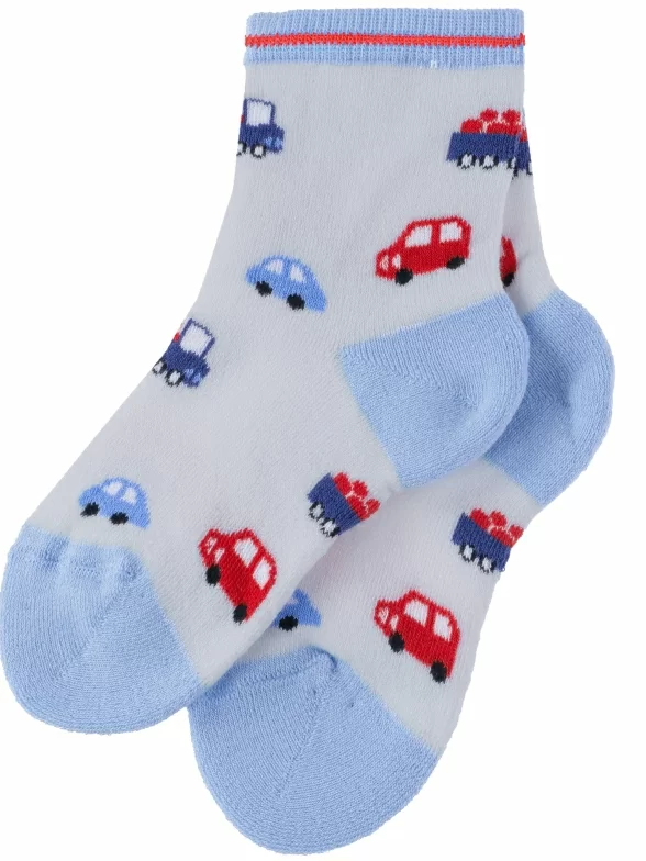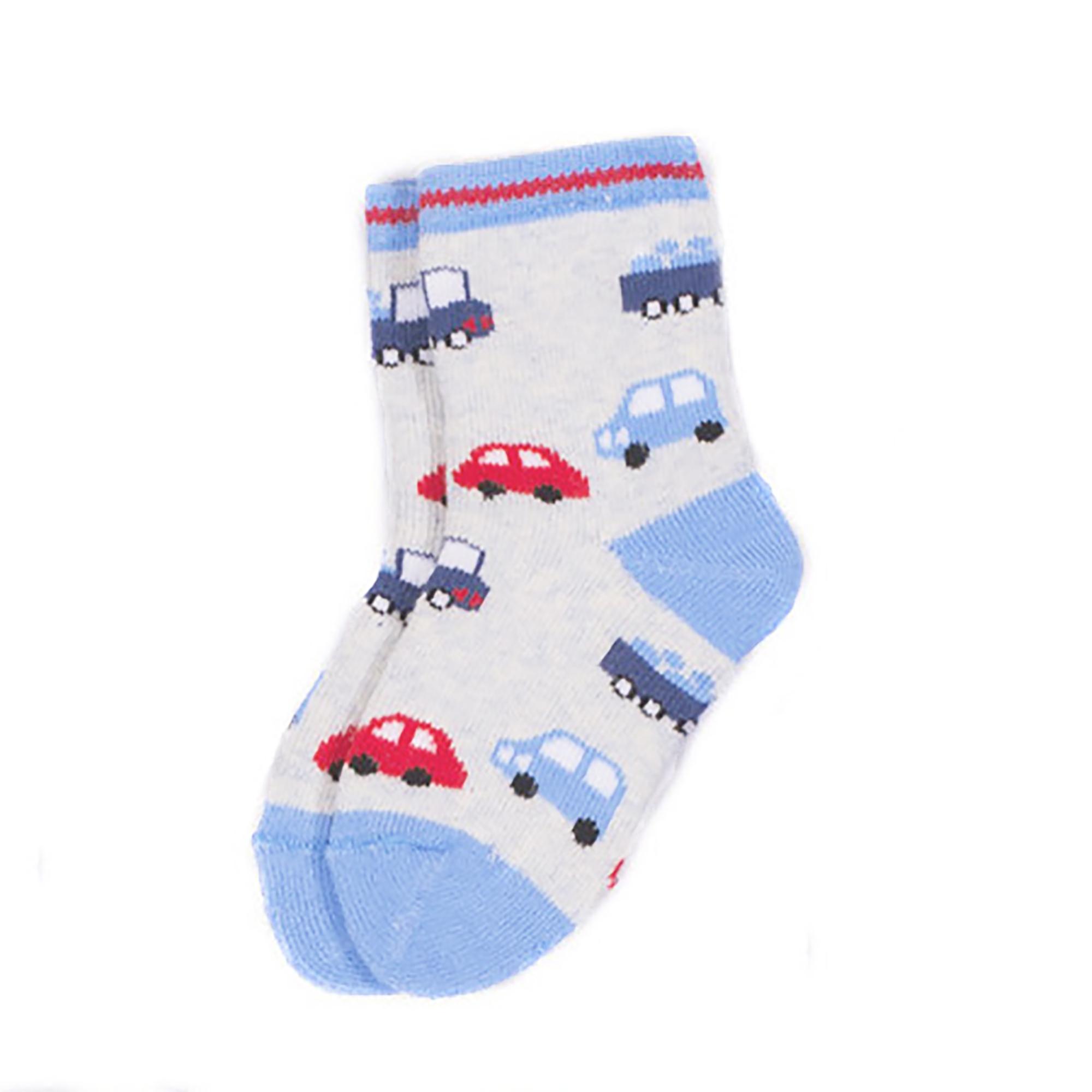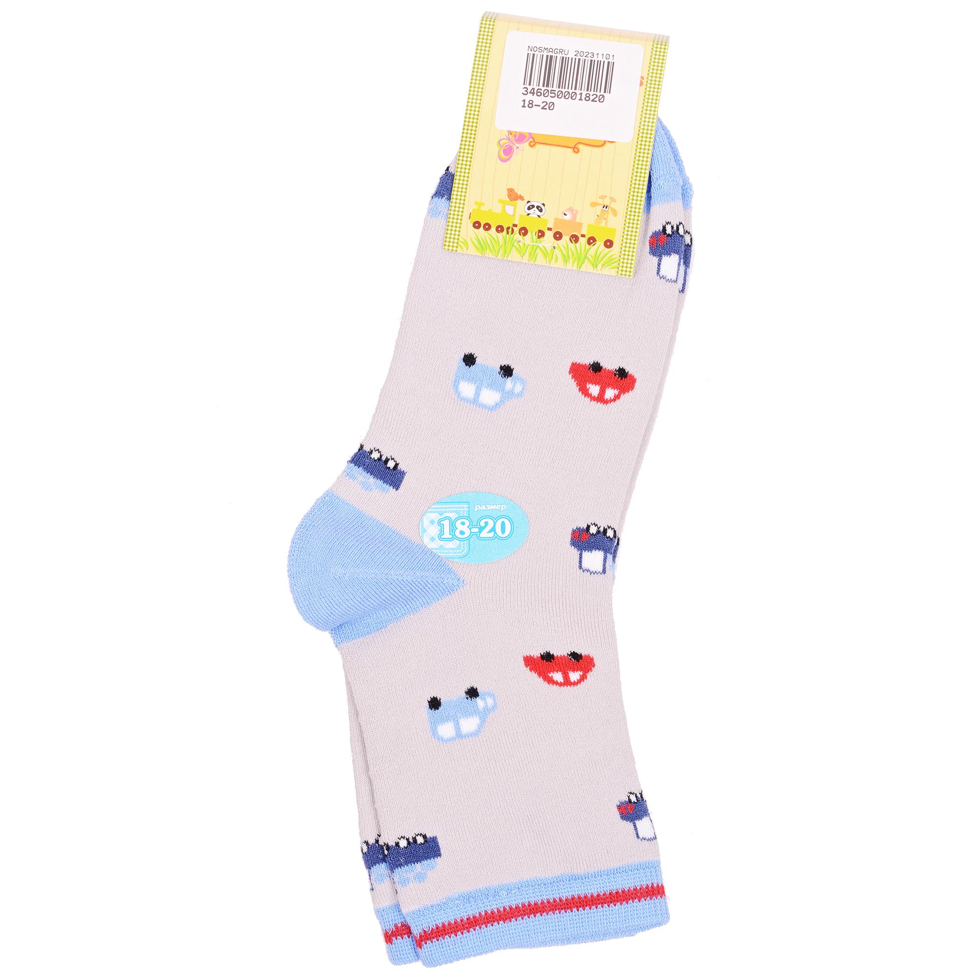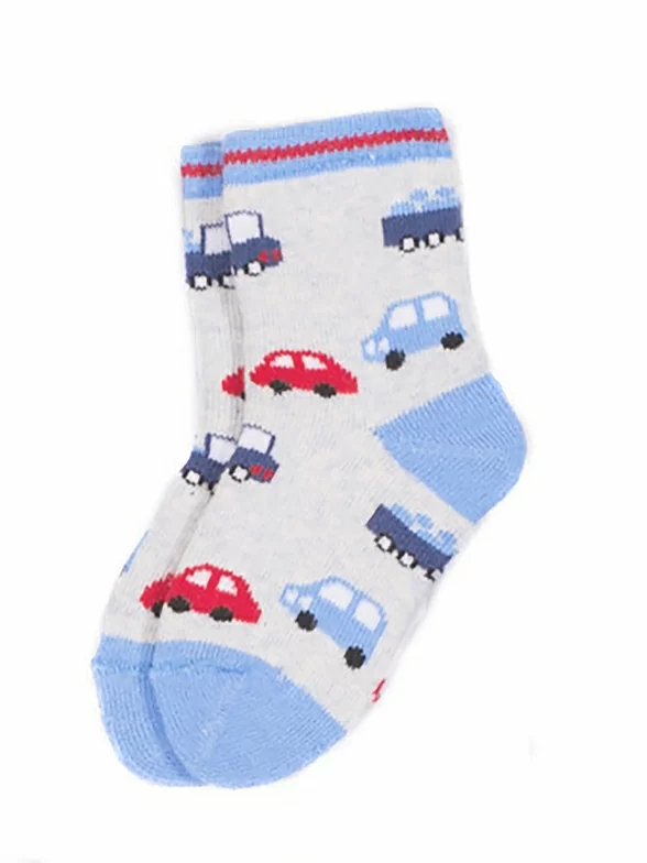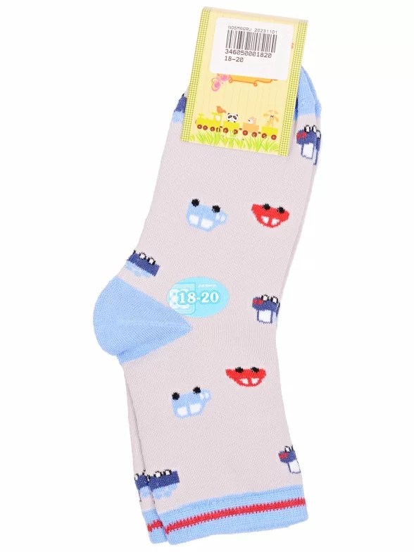 Зимние укороченные детские носки, цвет светло-серый, теплые, повседневные, махровые, шов обычный (не бесшовные), принт (рисунок): транспорт, с узором, состав: 90% хлопок, 7% полиамид, 3% эластан (лайкра), арт. Л6. Производитель «ИП Мурзаков В.А., Ставропольский край, Россия» под брендом «Lorenzline».