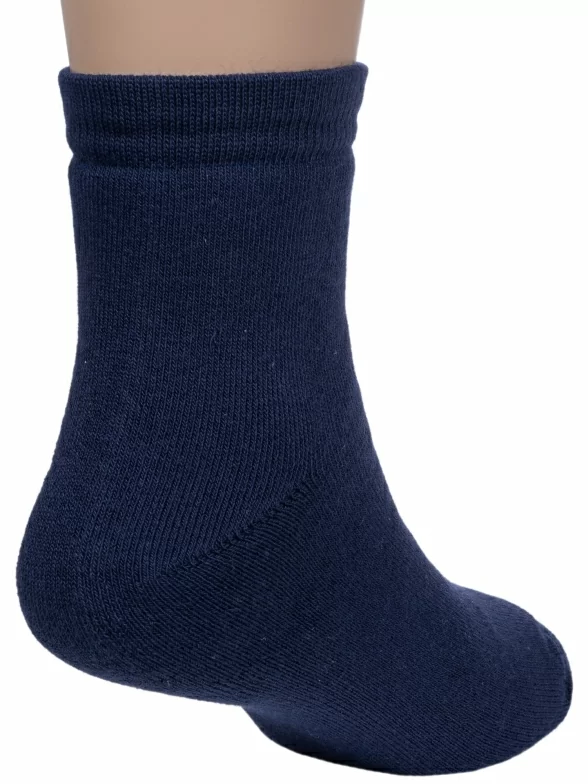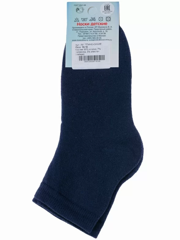 Зимние укороченные детские носки, цвет темно-синий, теплые, махровые, классические, шов обычный (не бесшовные), принт (рисунок): однотонный, без рисунков/узоров, состав: 90% хлопок, 7% полиамид, 3% эластан (лайкра), арт. Л51. Производитель «ИП Мурзаков В.А., Ставропольский край, Россия» под брендом «Lorenzline».