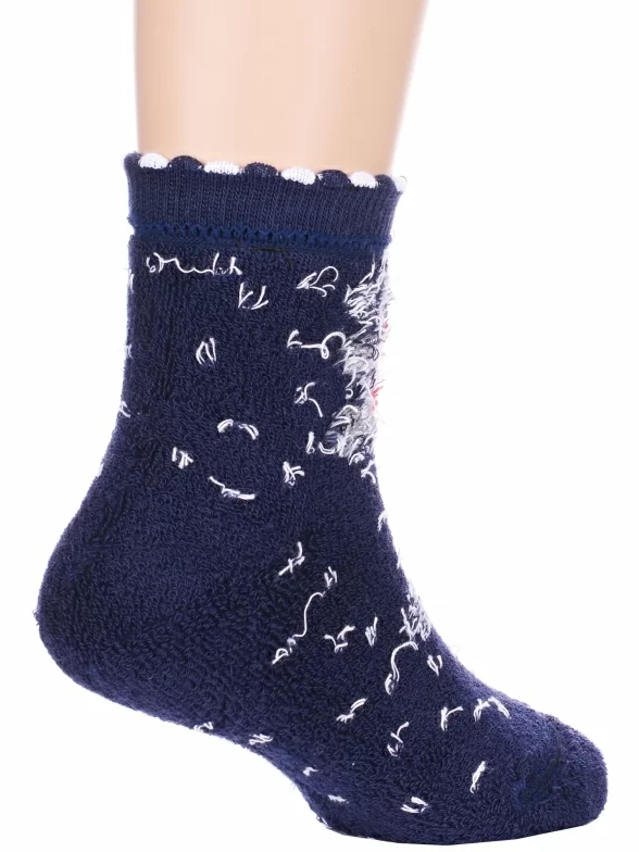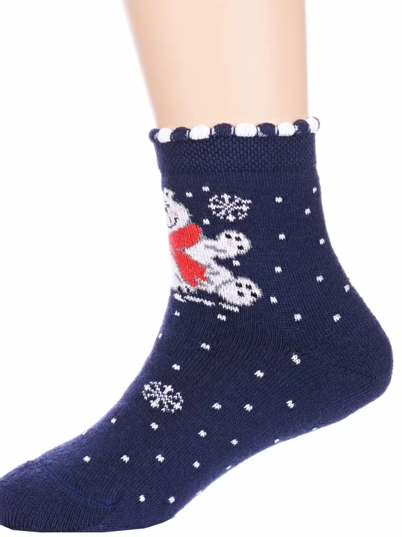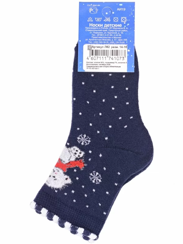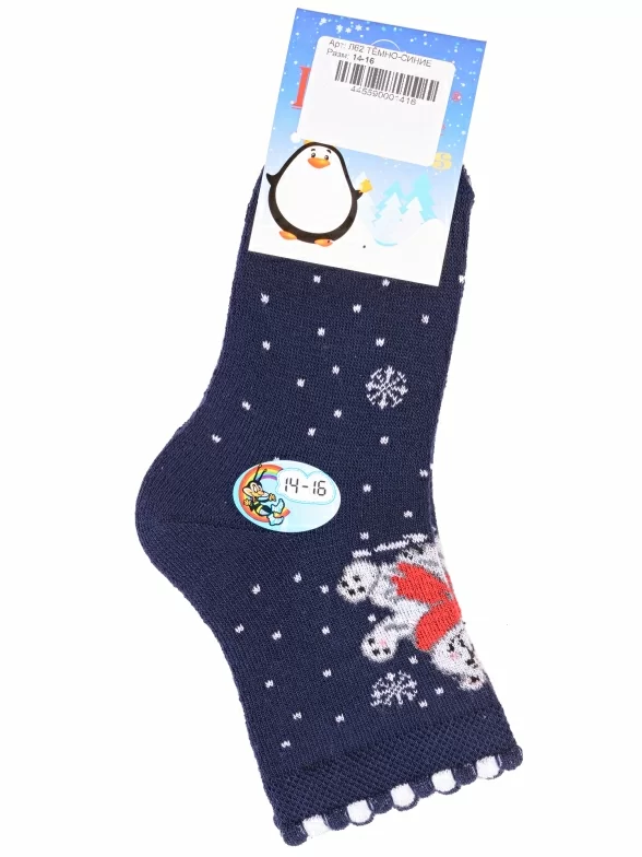 Межсезонные или зимние укороченные детские носки, цвет темно-синий, с принтом, махровые, теплые, состав: 90% хлопок, 7% полиамид, 3% эластан (лайкра), арт. Л62. Производитель «ИП Мурзаков В.А., Ставропольский край, Россия» под брендом «Lorenzline».