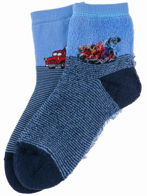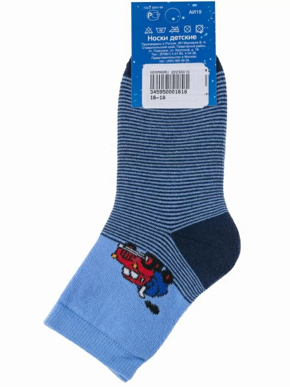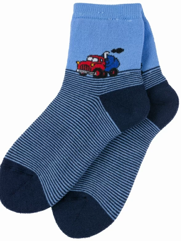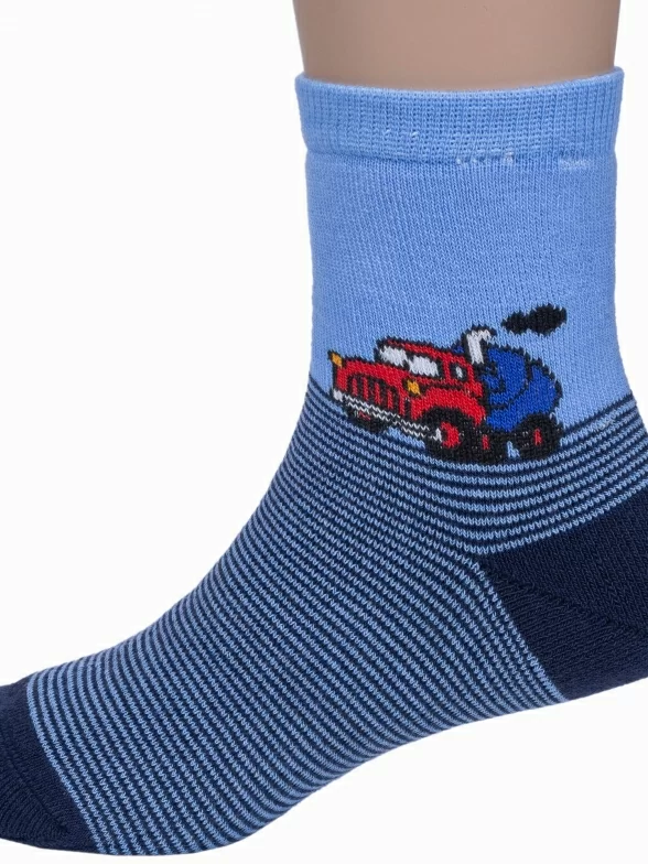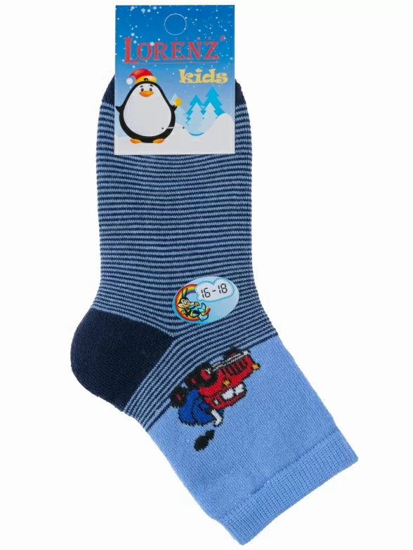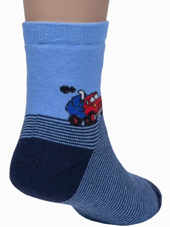 Зимние укороченные детские носки, цвет синий, теплые, махровые, повседневные, шов обычный (не бесшовные), принт (рисунок): транспорт, с узором, состав: 90% хлопок, 7% полиамид, 3% эластан (лайкра), арт. Л81. Производитель «ИП Мурзаков В.А., Ставропольский край, Россия» под брендом «Lorenzline».