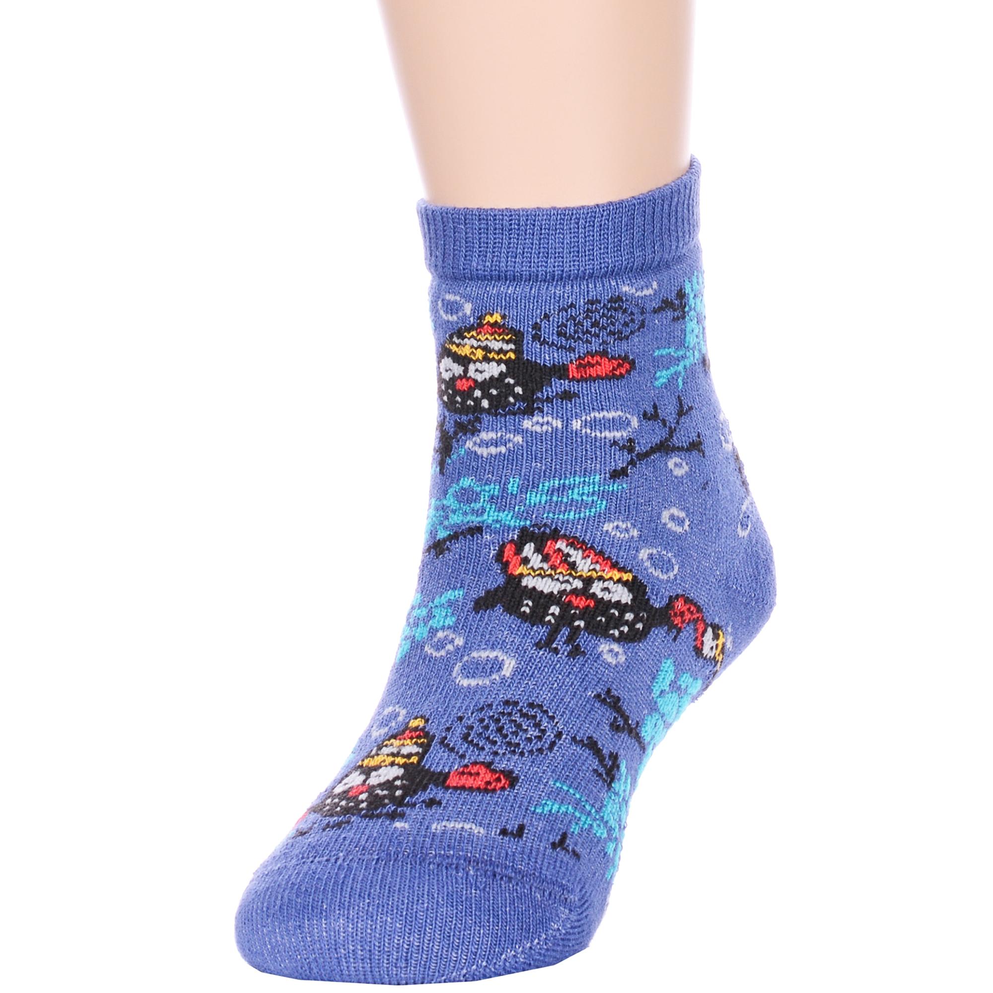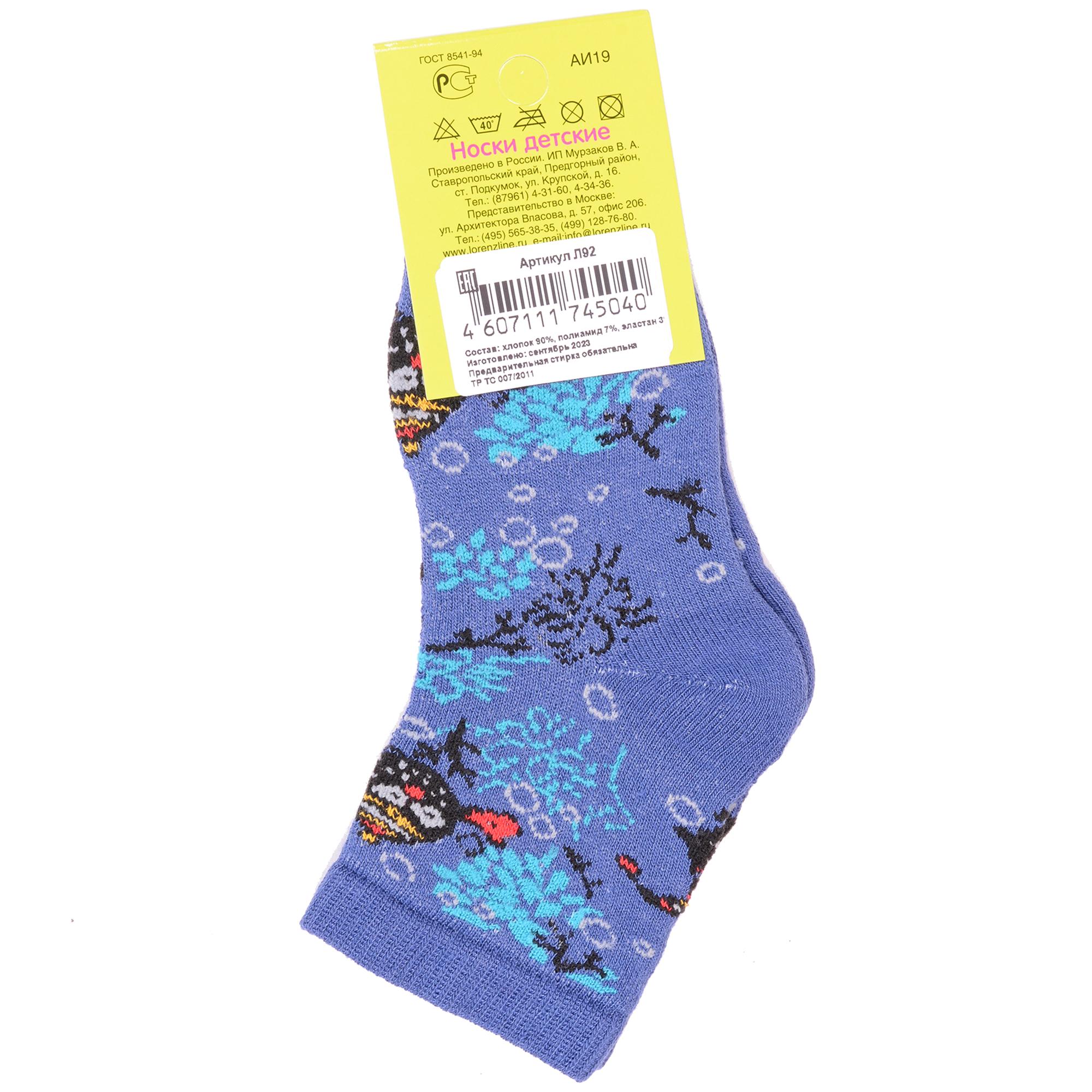 Зимние или межсезонные укороченные детские носки, цвет темно-синий, махровые, теплые, с принтом, состав: 90% хлопок, 7% полиамид, 3% эластан (лайкра), арт. Л92. Производитель «ИП Мурзаков В.А., Ставропольский край, Россия» под брендом «Lorenzline».