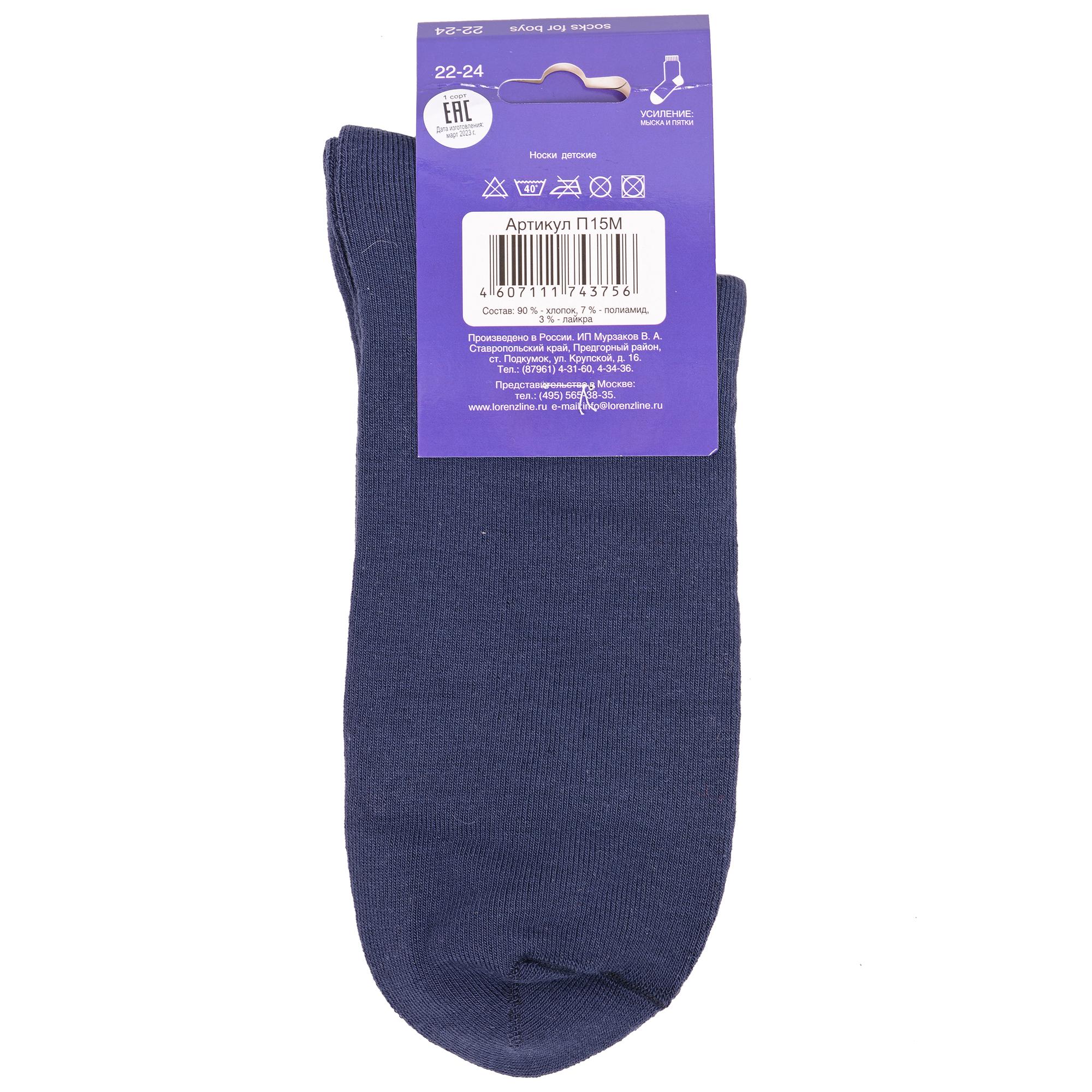Межсезонные или зимние укороченные детские носки, цвет темно-синий, теплые, махровые, классические, возможно бесшовные, принт (рисунок): однотонный, без рисунков/узоров, состав: 90% хлопок, 7% полиамид, 3% лайкра, арт. П15М. Производитель «ИП Мурзаков В.А., Ставропольский край, Россия» под брендом «Lorenzline».