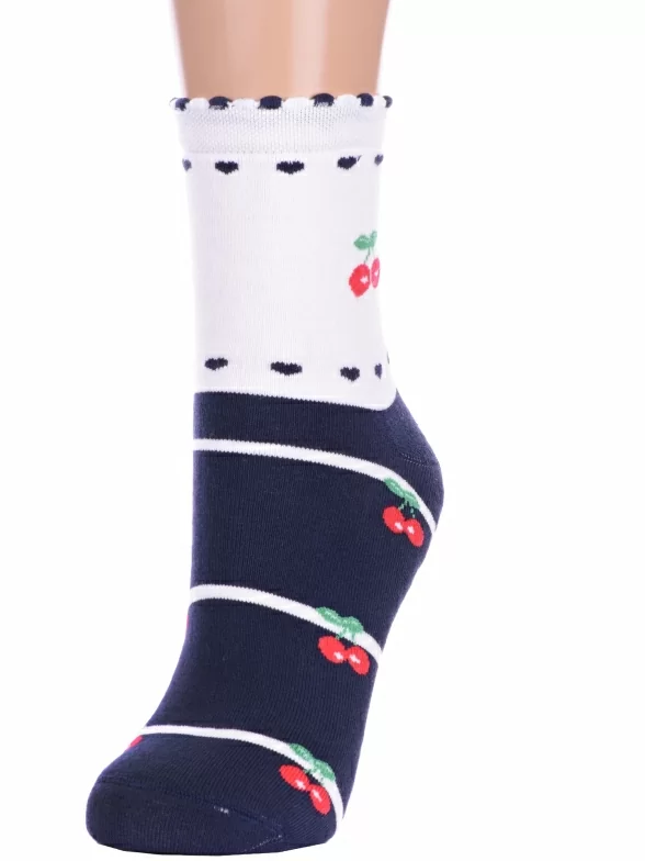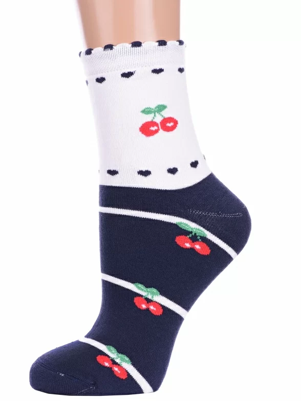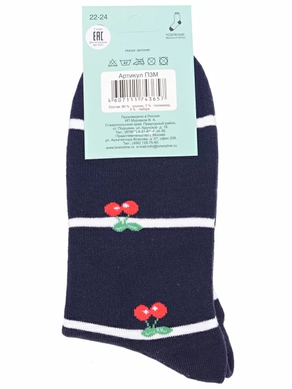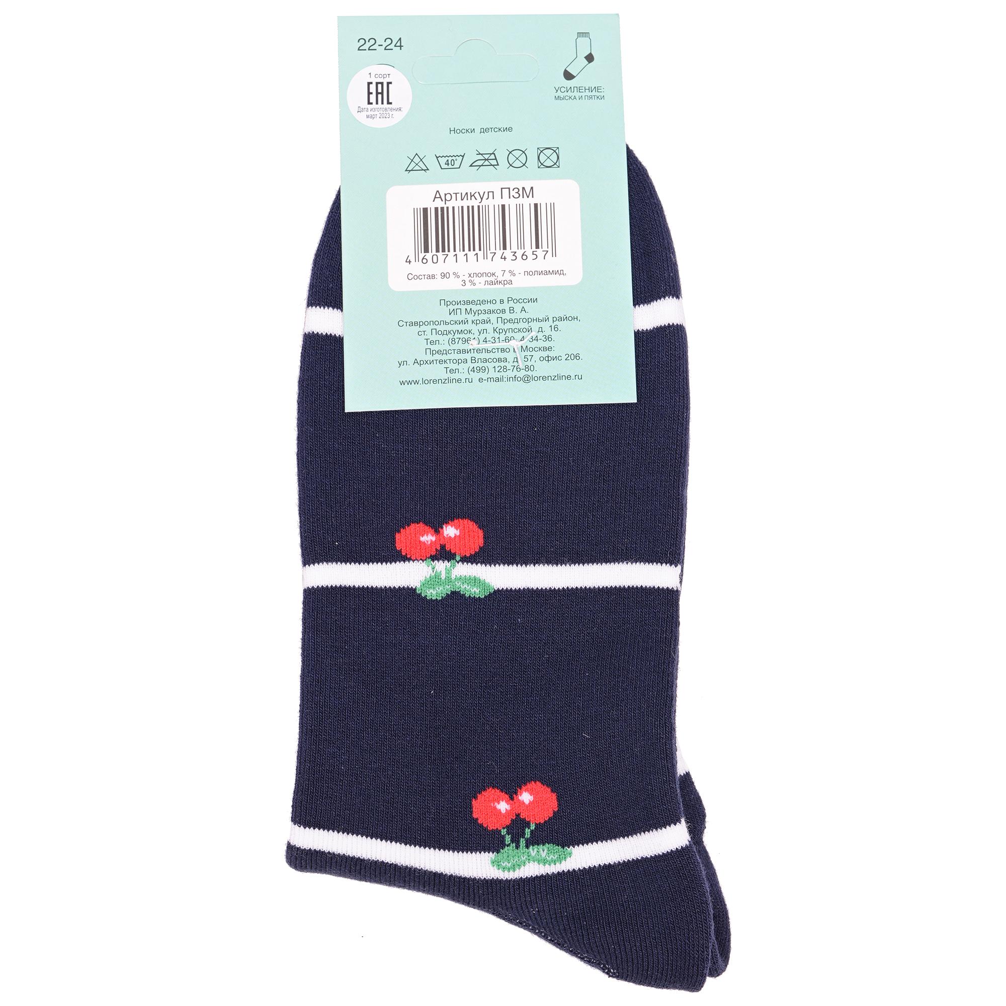 Межсезонные или зимние укороченные детские носки, цвет темно-синий, теплые, повседневные, махровые, возможно бесшовные, принт (рисунок): овощи / фрукты / ягоды, полоски, с узором, состав: 90% хлопок, 7% полиамид, 3% эластан (лайкра), арт. П3М. Производитель «ИП Мурзаков В.А., Ставропольский край, Россия» под брендом «Lorenzline».