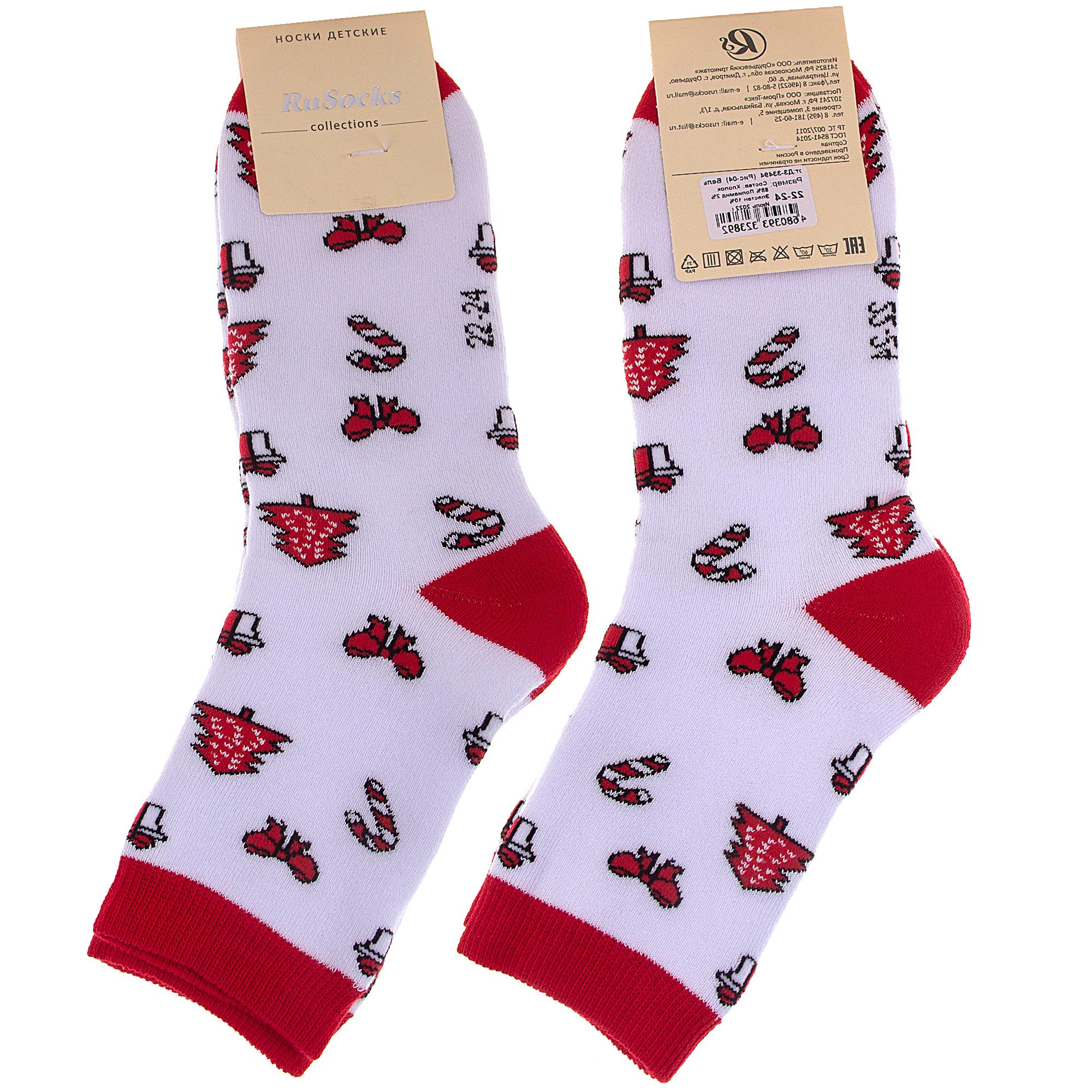 Зимние или межсезонные укороченные детские носки, цвет белый, с принтом, махровые, теплые, состав: 88% хлопок, 10% эластан, 2% полиамид, арт. Д3-33494. Производитель «ООО Орудьевский трикотаж, Россия» под брендом «Rusocks (орудьевский трикотаж)».