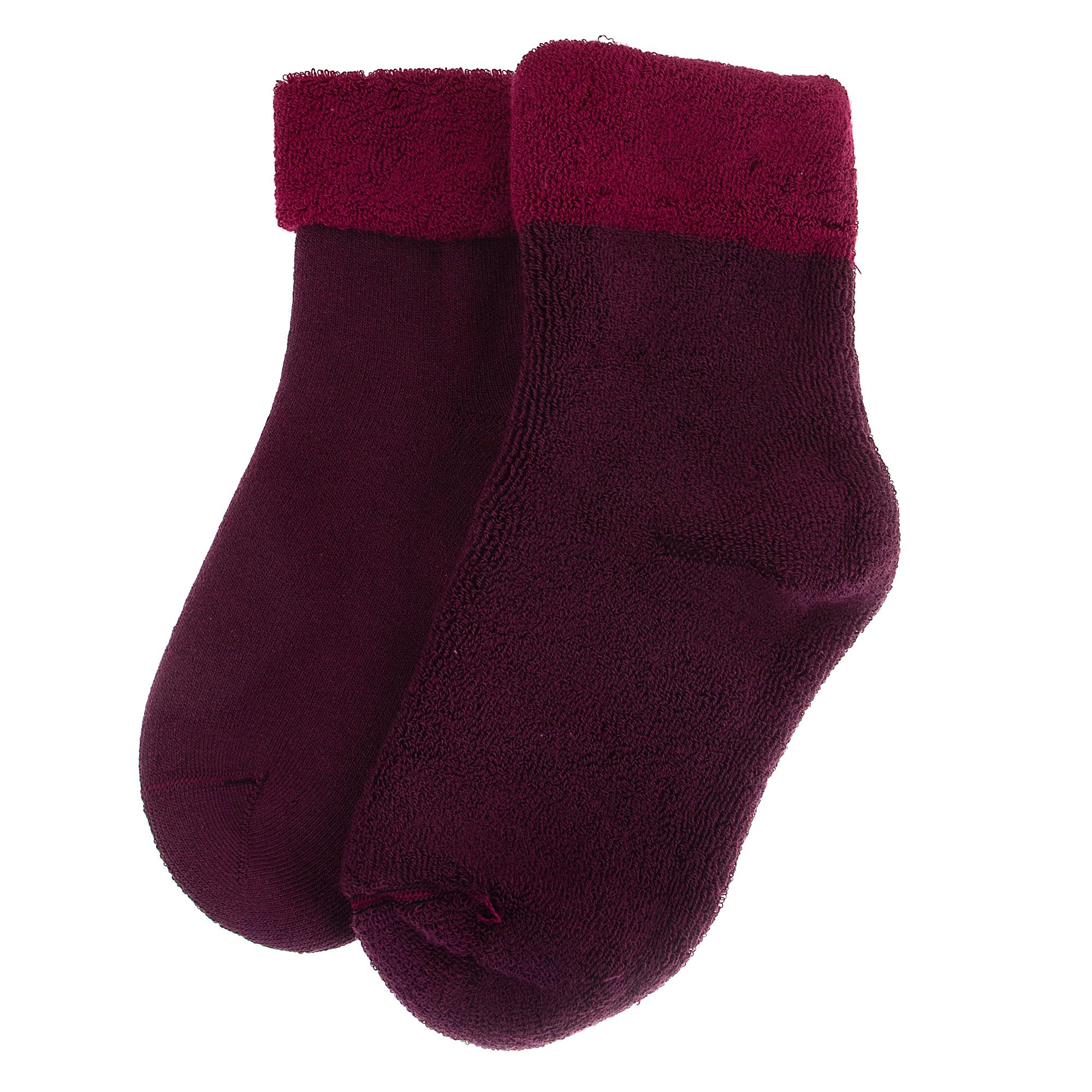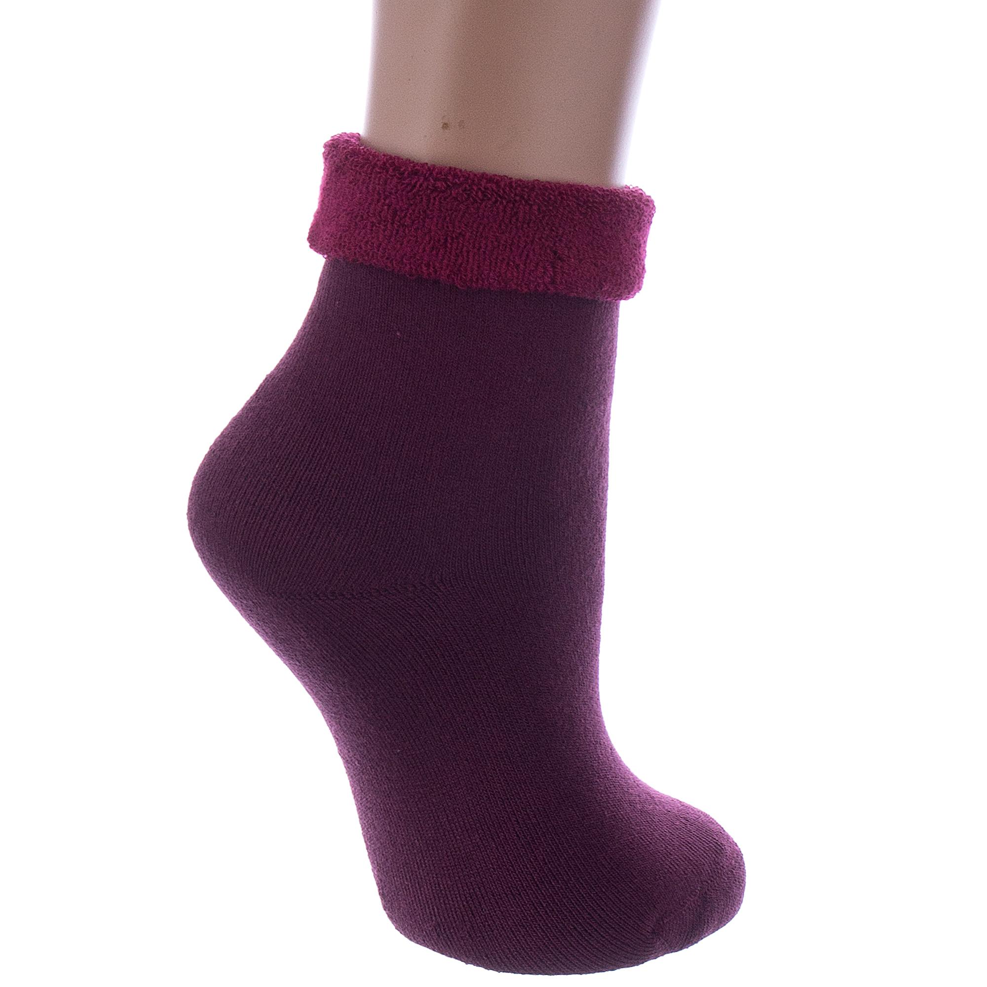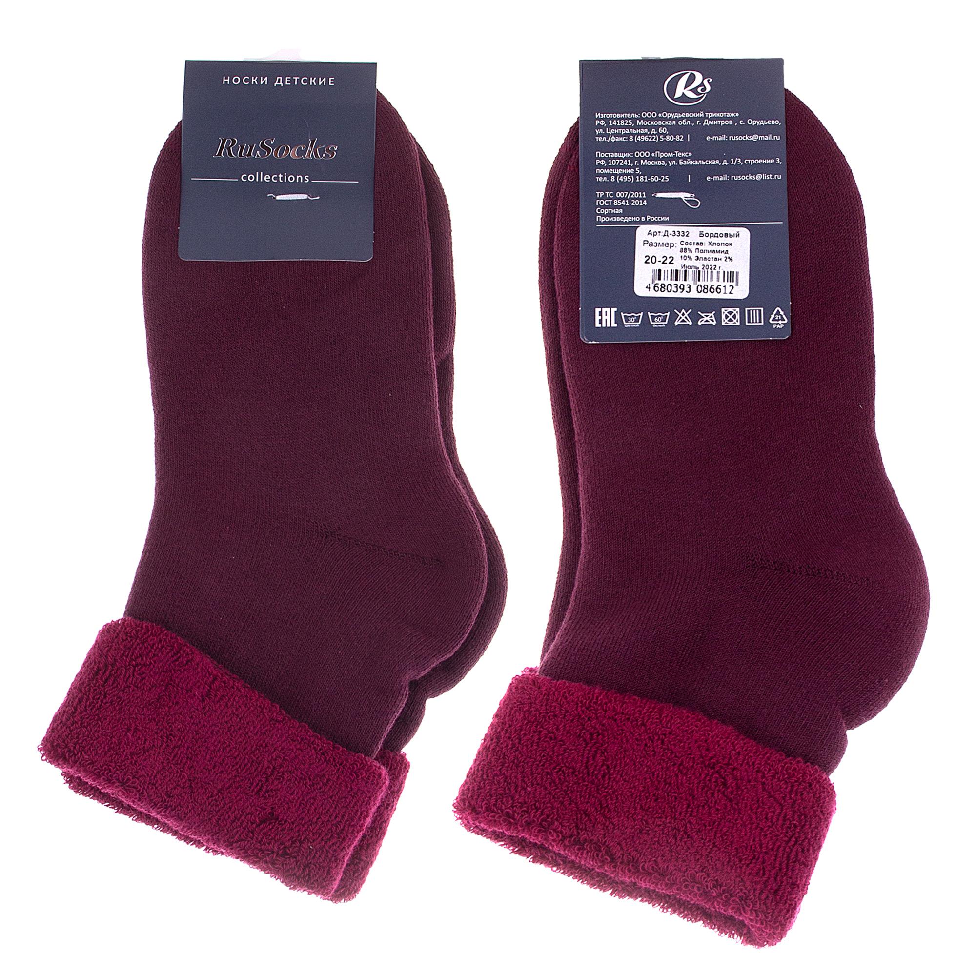 Зимние или межсезонные укороченные детские носки, цвет бордовый, классические, махровые, с отворотом, теплые, состав: 88% хлопок, 10% полиамид, 2% эластан, арт. Д-3332. Производитель «ООО Орудьевский трикотаж, Россия» под брендом «Rusocks (орудьевский трикотаж)».