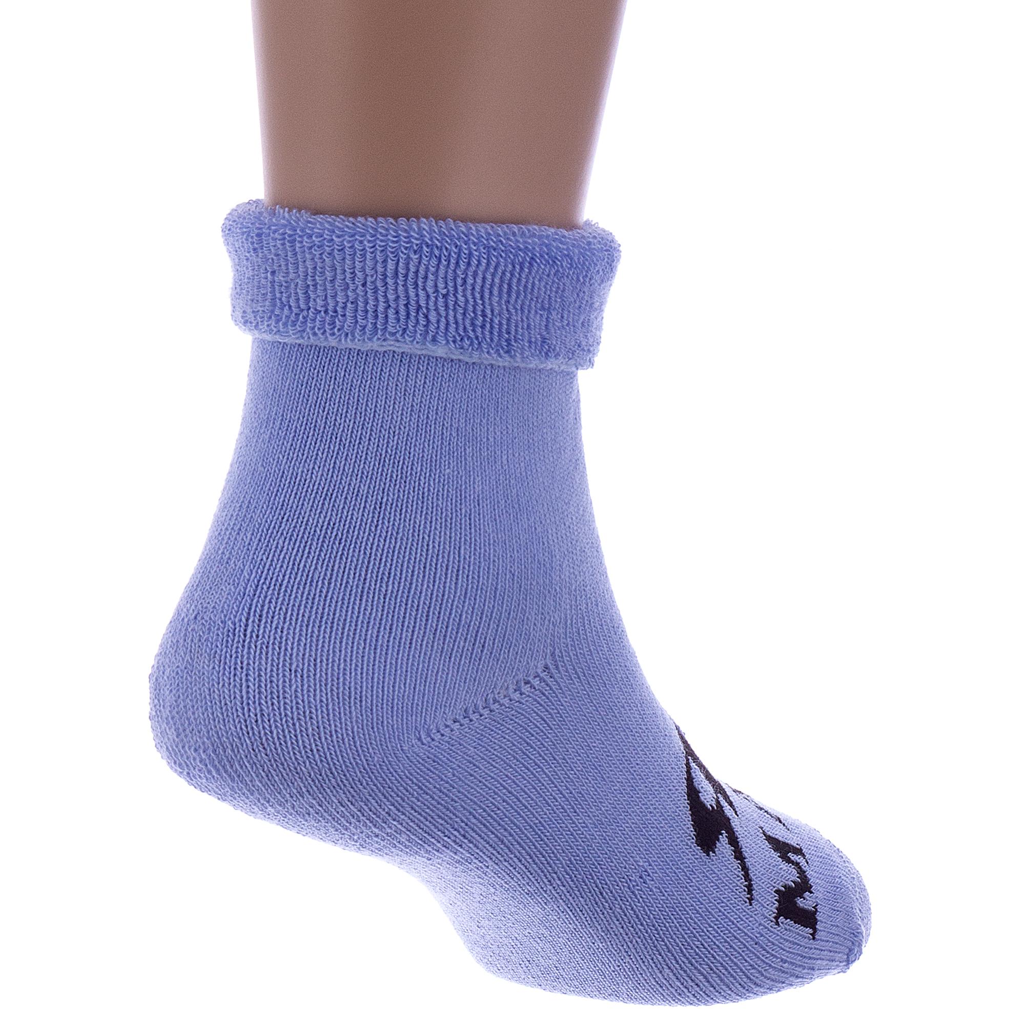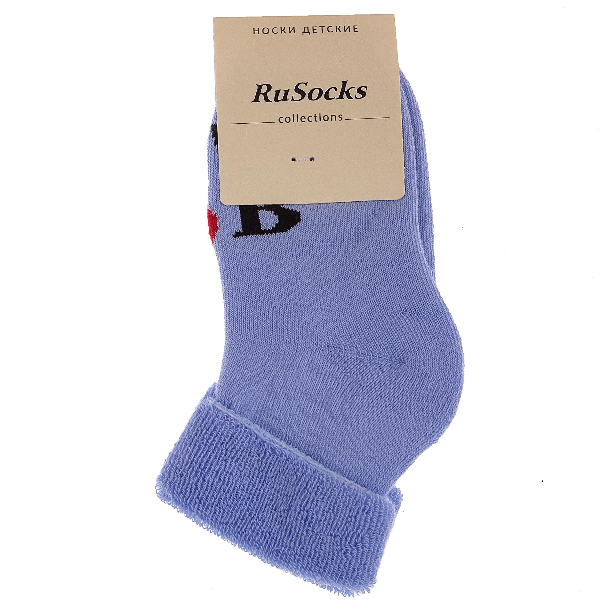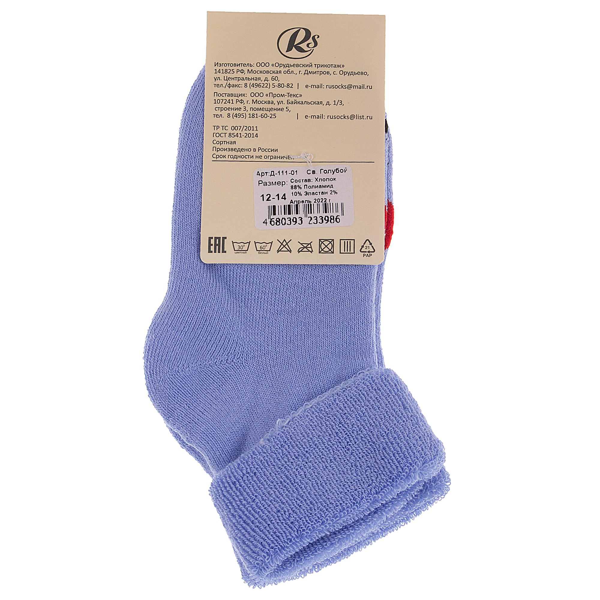 Зимние или межсезонные укороченные детские носки, цвет голубой, махровые, с отворотом, с принтом, теплые, состав: 88% хлопок, 10% полиамид, 2% эластан, арт. Д-111-01. Производитель «ООО Орудьевский трикотаж, Россия» под брендом «Rusocks (орудьевский трикотаж)».