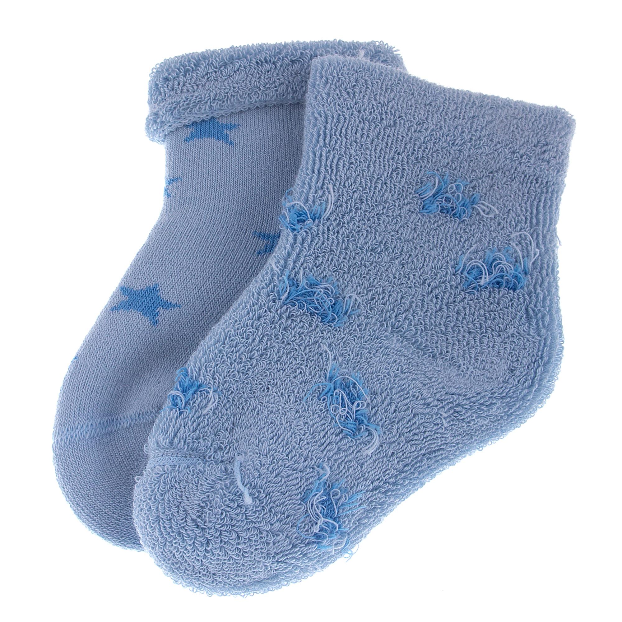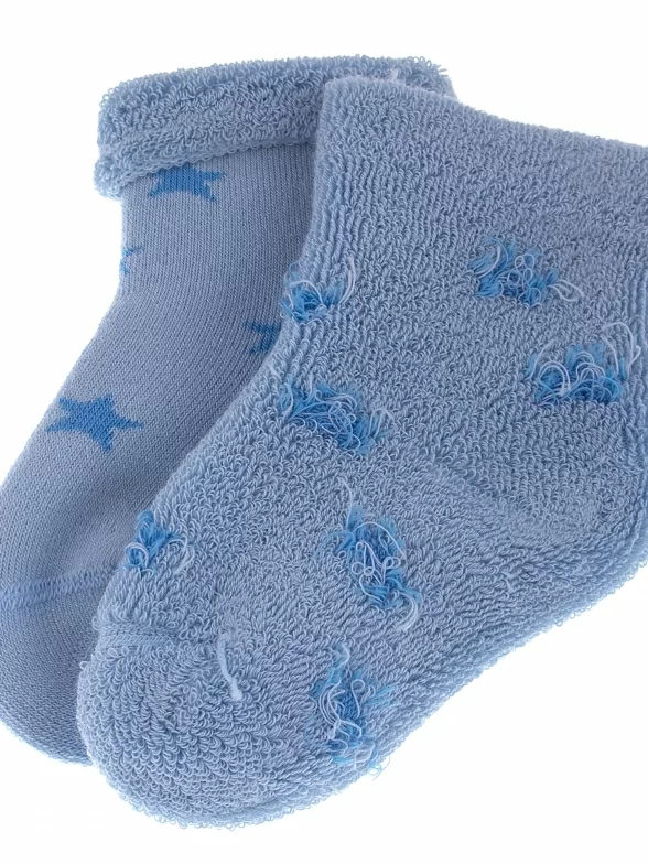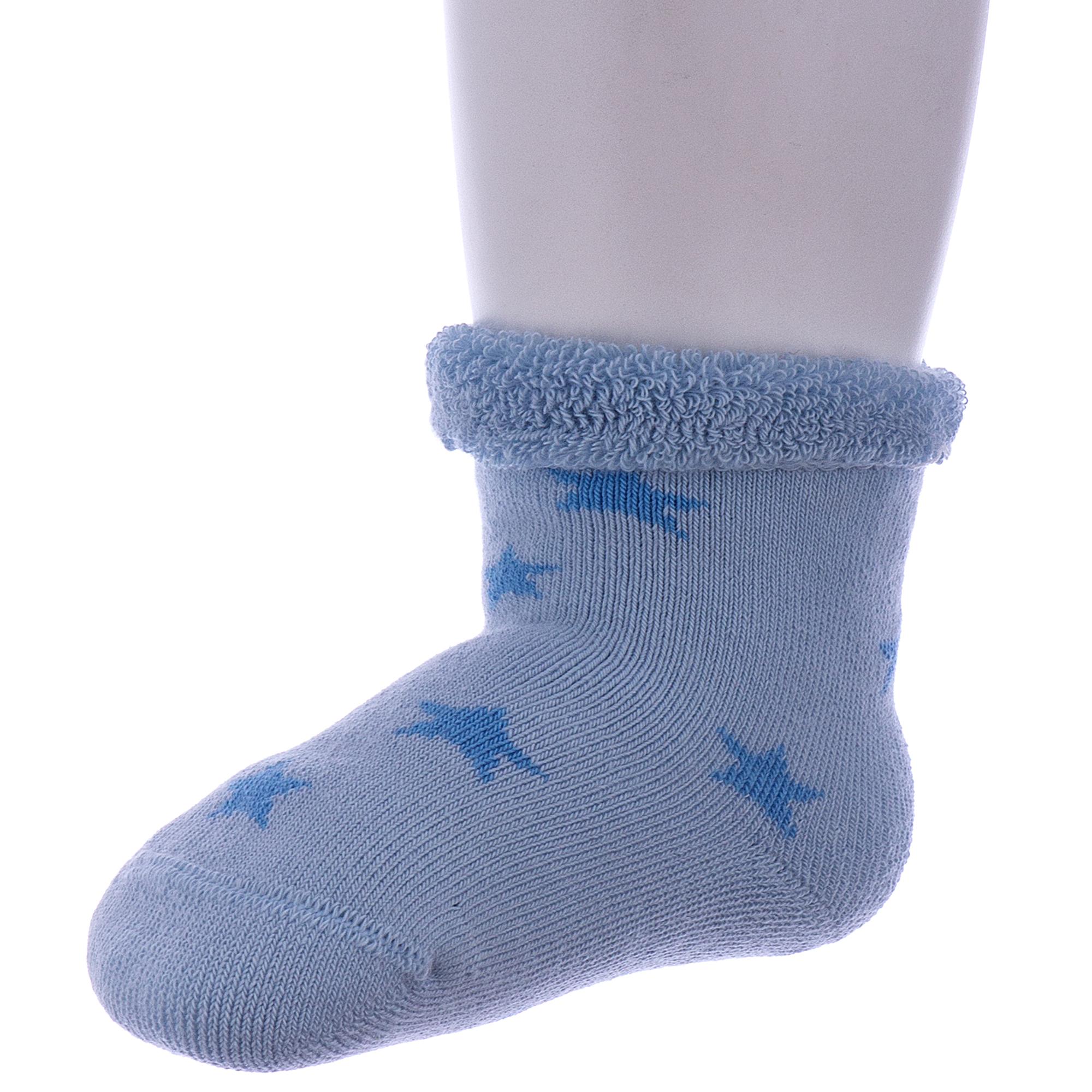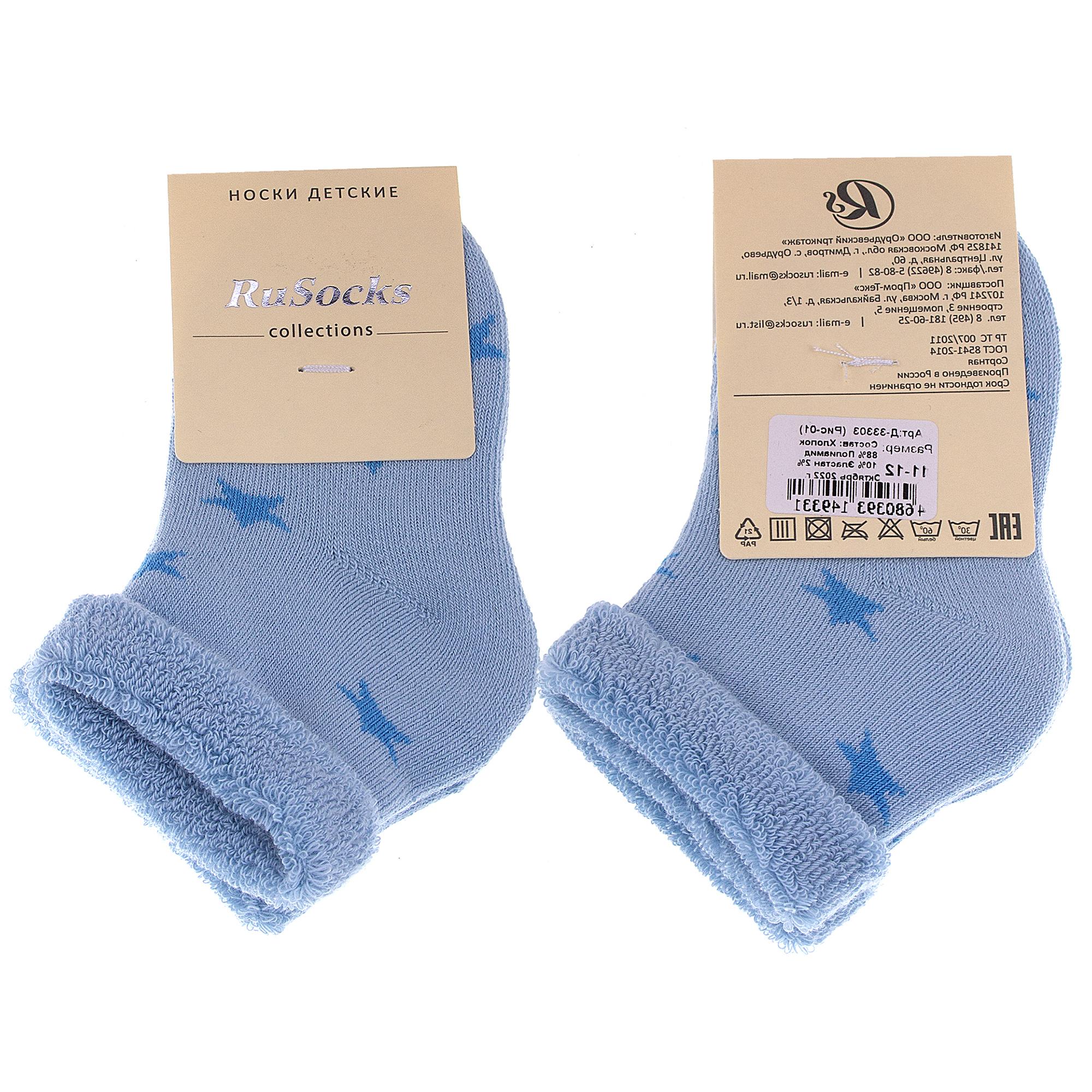 Зимние или межсезонные укороченные детские носки, цвет голубой, махровые, с отворотом, с принтом, теплые, состав: 88% хлопок, 10% полиамид, 2% эластан, арт. Д-33303. Производитель «ООО Орудьевский трикотаж, Россия» под брендом «Rusocks (орудьевский трикотаж)».
