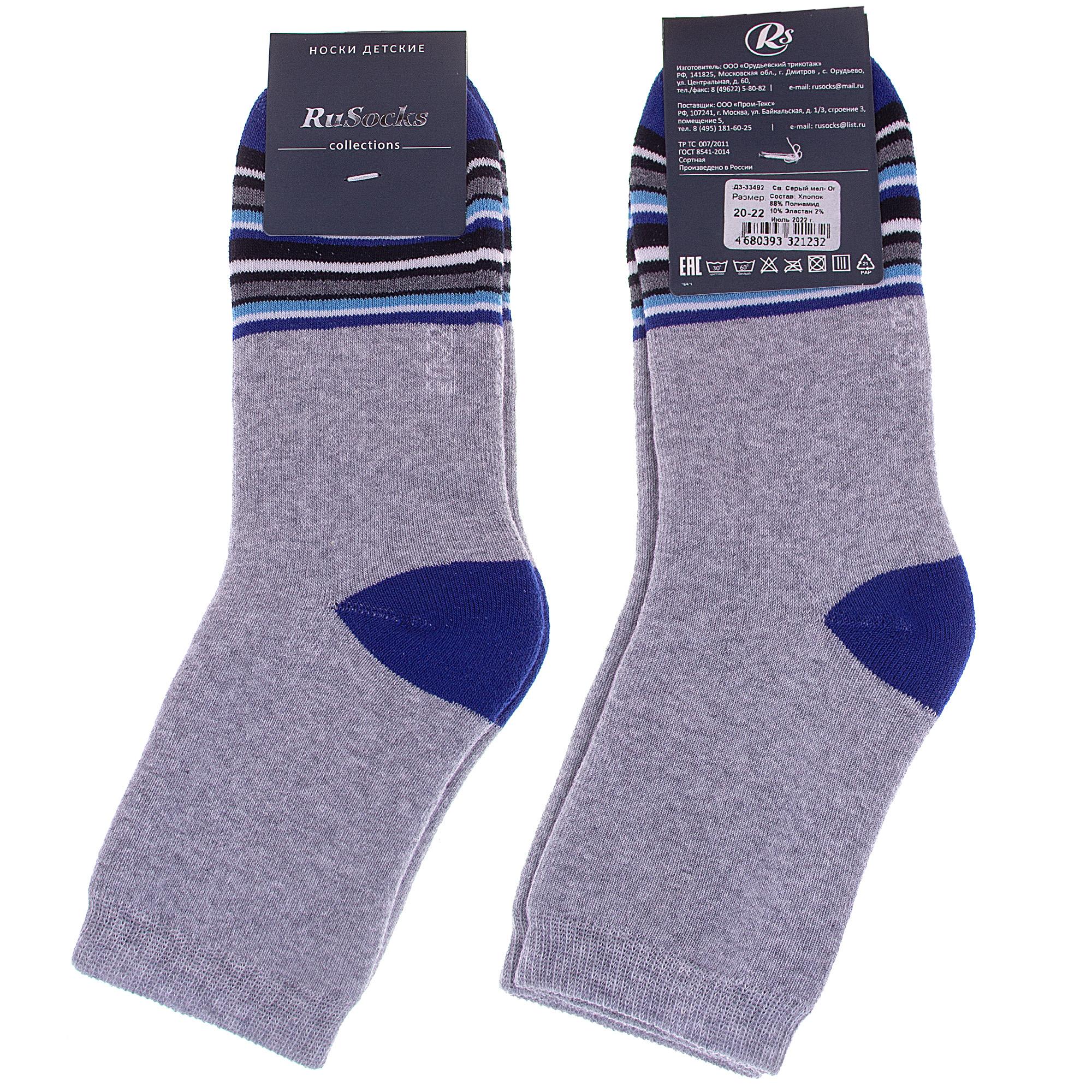 Межсезонные или зимние укороченные детские носки, цвет светло-серый, теплые, с принтом, махровые, состав: 88% хлопок, 10% полиамид, 2% эластан, арт. Д3-33492. Производитель «ООО Орудьевский трикотаж, Россия» под брендом «Rusocks (орудьевский трикотаж)».