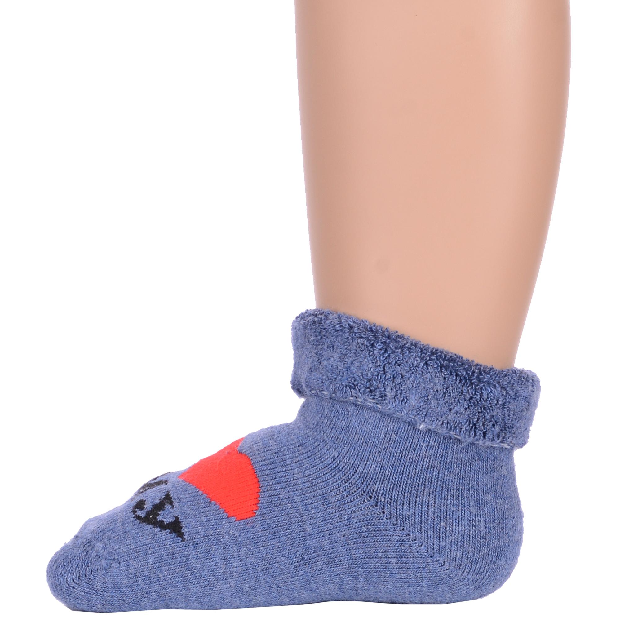 Межсезонные или зимние укороченные детские носки, цвет темно-синий, теплые, повседневные, с отворотом, махровые, шов кеттельный (бесшовная технология), принт (рисунок): сердечки / поцелуи / любовь, надписи, с узором, состав: 88% хлопок, 10% полиамид, 2% эластан, арт. Д-111-01. Производитель «ООО Орудьевский трикотаж, Россия» под брендом «Rusocks (орудьевский трикотаж)».