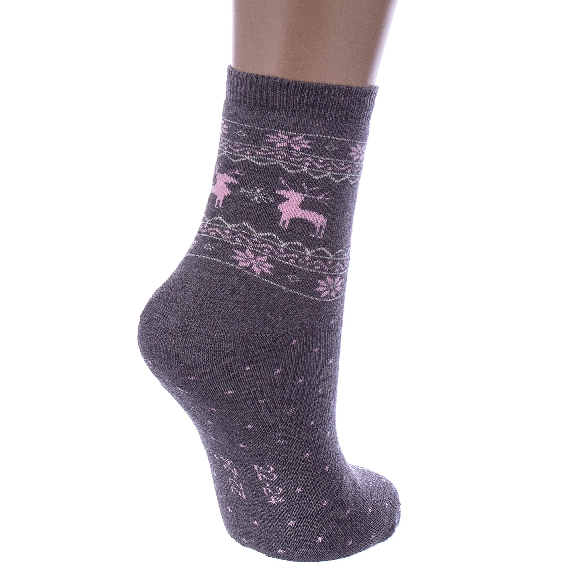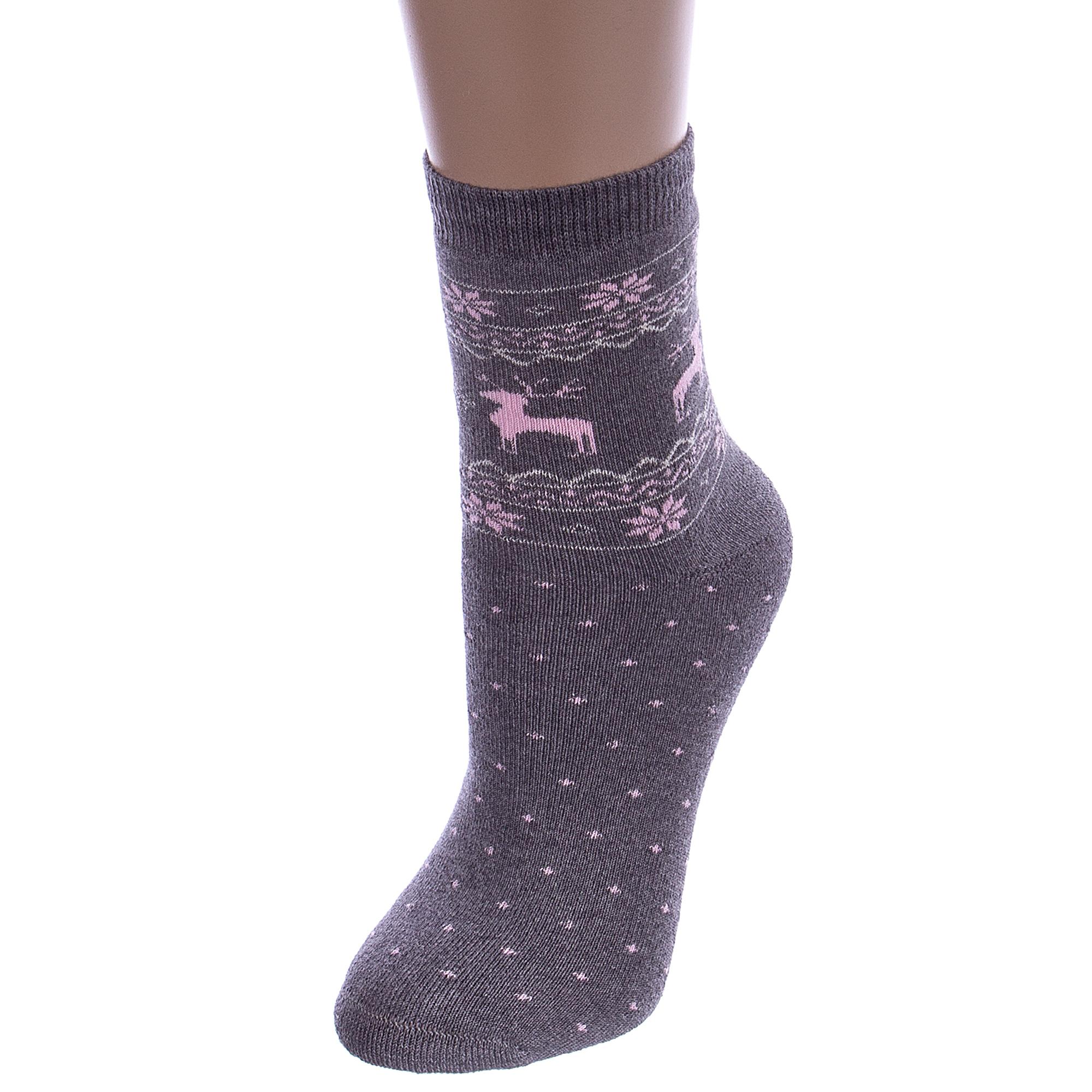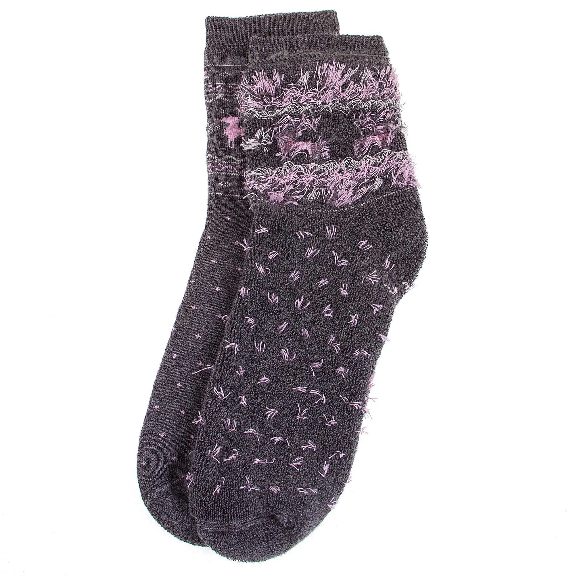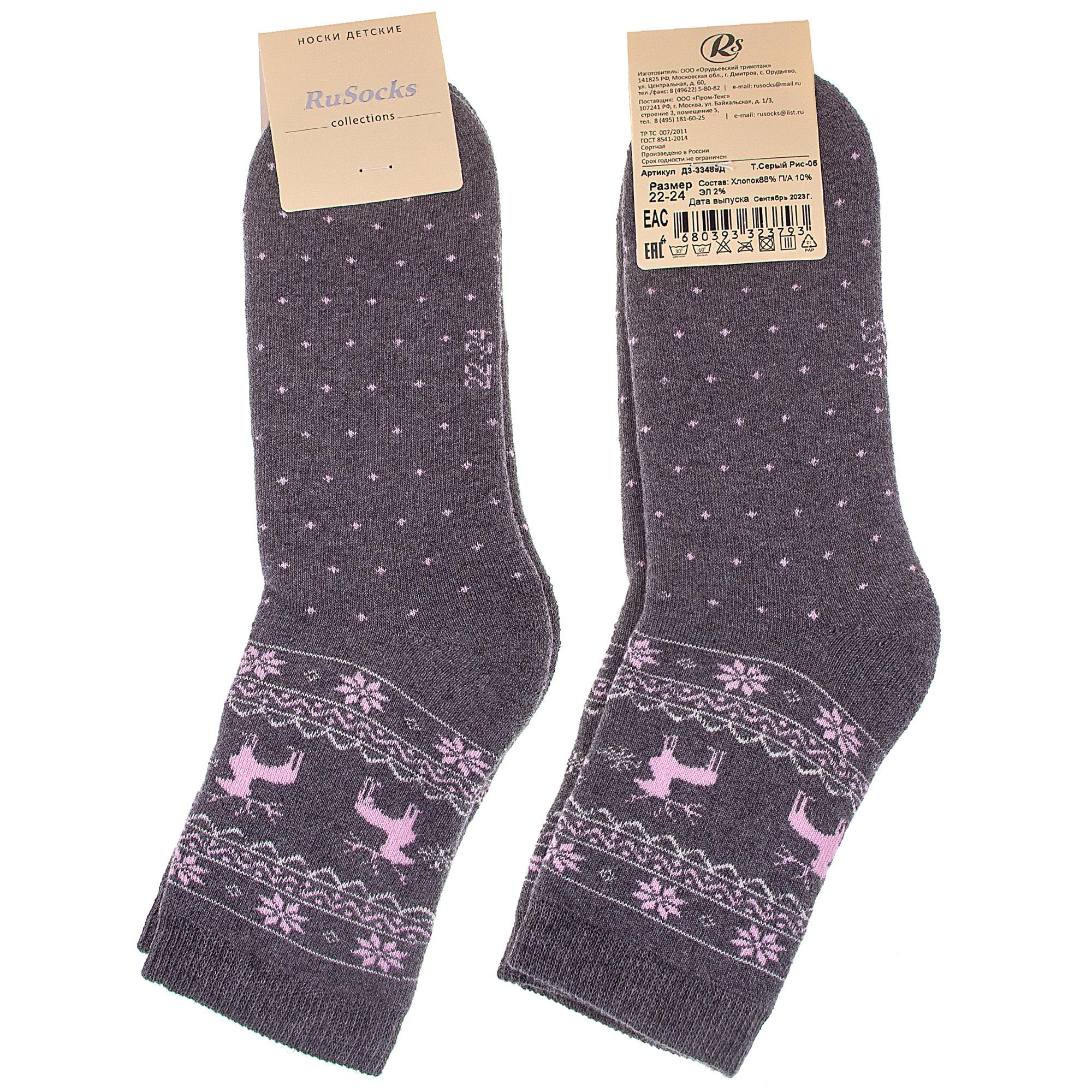 Зимние или межсезонные укороченные детские носки, цвет темно-серый, махровые, с принтом, теплые, состав: 88% хлопок, 10% полиамид, 2% эластан, арт. Д3-33489Д. Производитель «ООО Орудьевский трикотаж, Россия» под брендом «Rusocks (орудьевский трикотаж)».