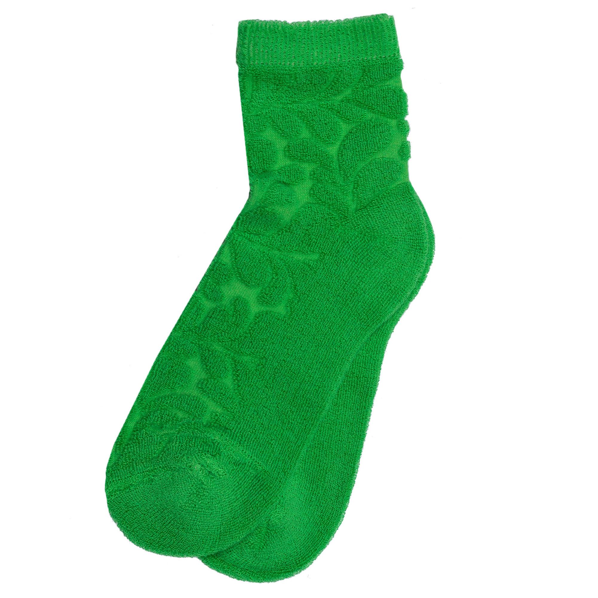 Зимние средней длины детские носки, цвет зеленый, махровые, теплые, классические, шов обычный (не бесшовные), принт (рисунок): цветы / растения, с узором, однотонный, состав: 88% хлопок, 10% полиамид, 2% эластан, арт. Д-33301. Производитель «ООО Орудьевский трикотаж, Россия» под брендом «Rusocks (орудьевский трикотаж)».