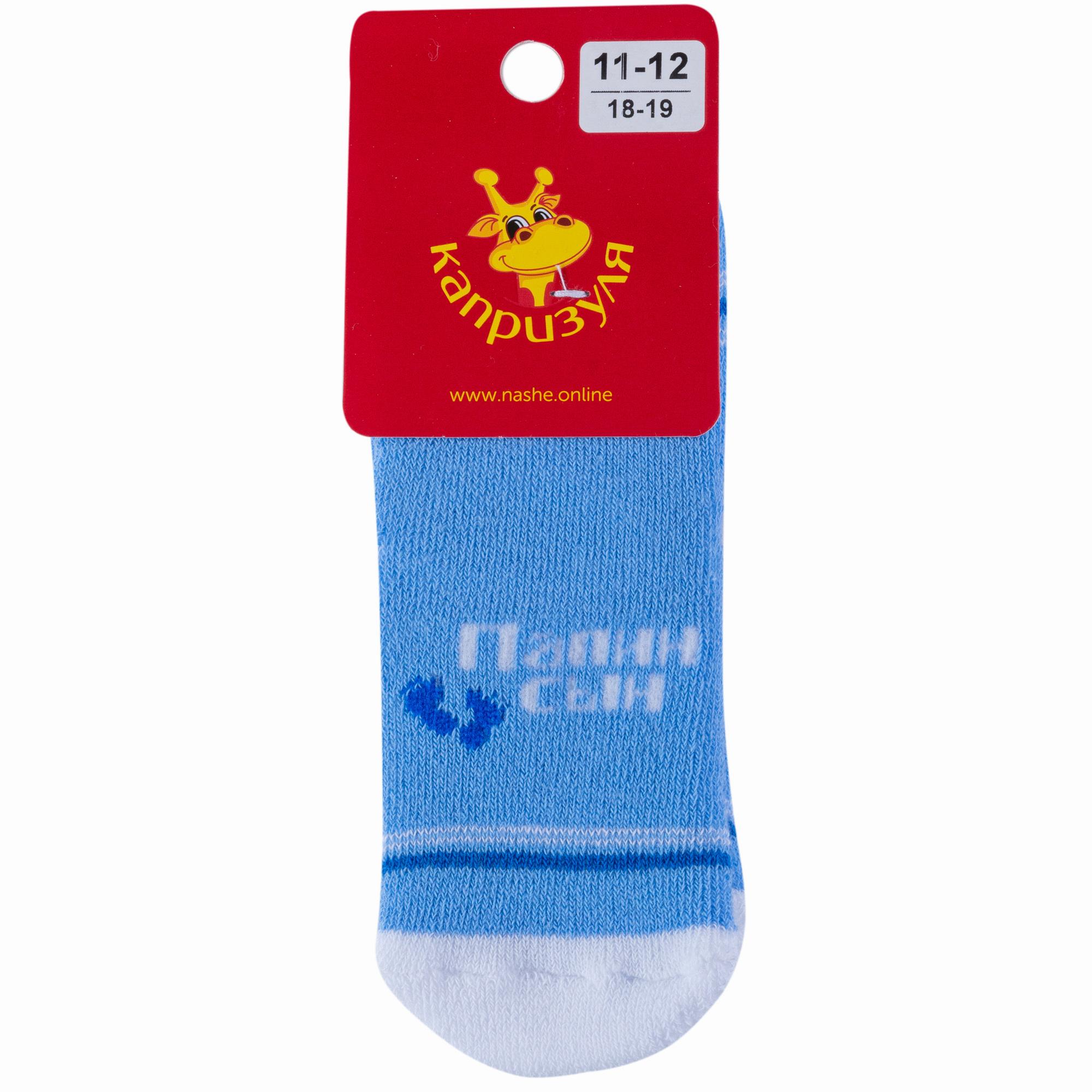 Зимние укороченные детские носки, цвет голубой, теплые, махровые, повседневные, шов обычный (не бесшовные), принт (рисунок): надписи, с узором, состав: 80% хлопок, 10% полиамид, 8% полипропилен, 2% эластан, арт. 232С1. Производитель «Смоленская чулочная фабрика, Россия» под брендом «Наше смоленской чулочной фабрики».