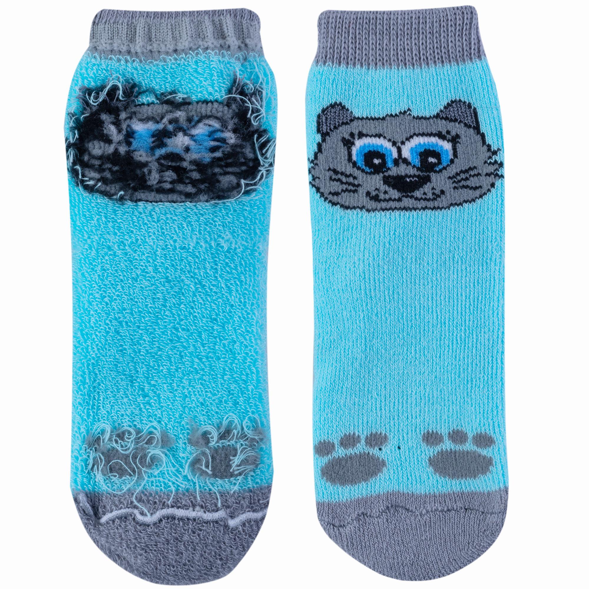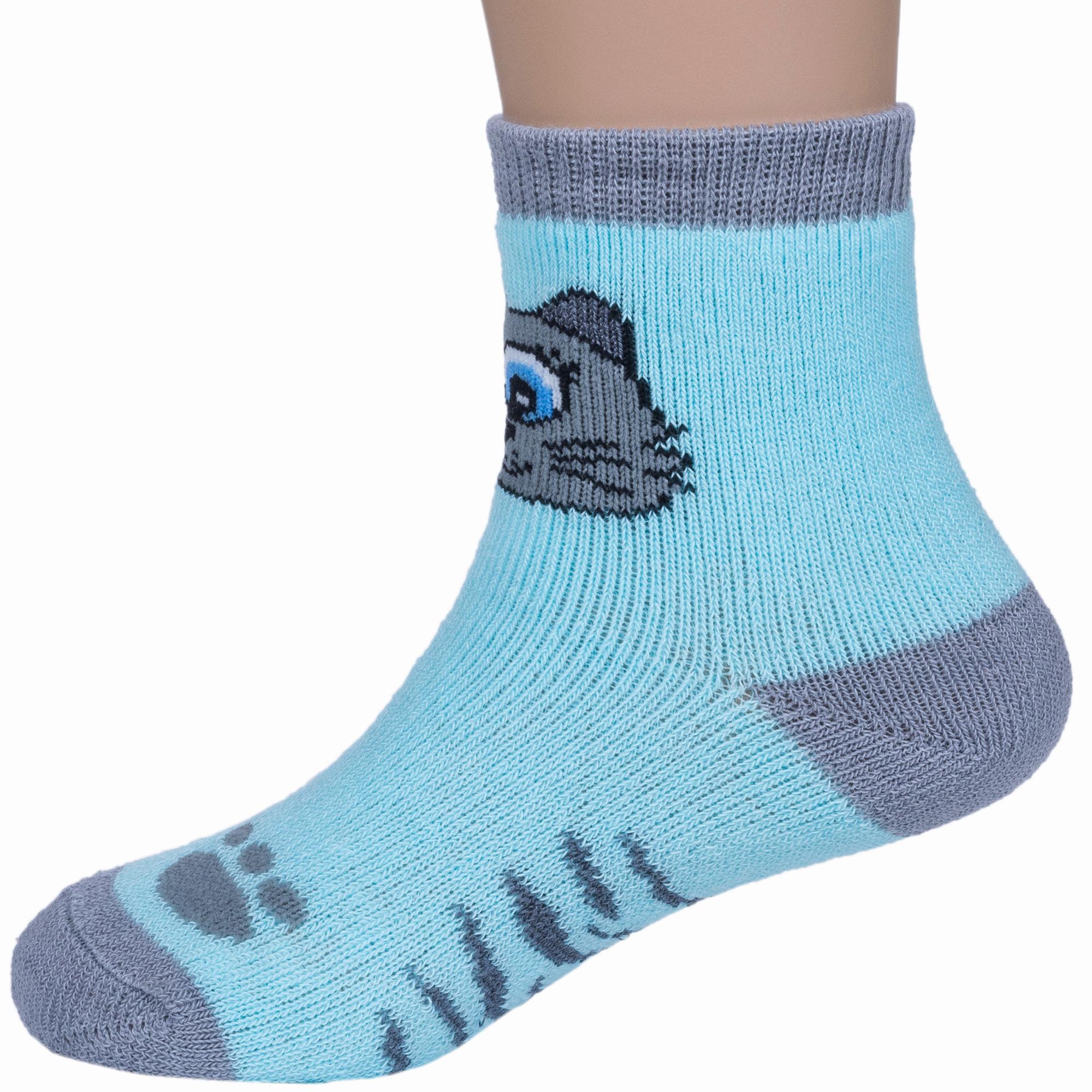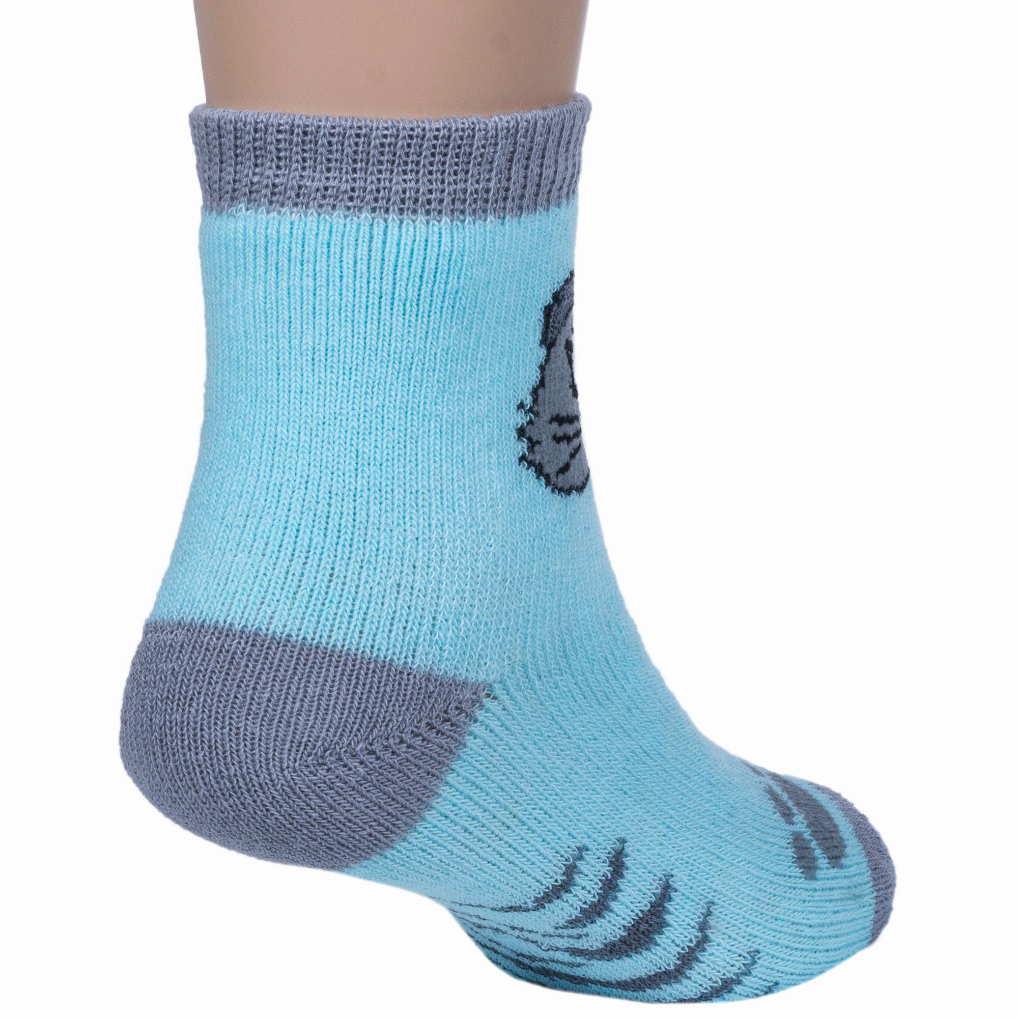 Зимние укороченные детские носки, цвет голубой-бирюзовый, теплые, махровые, повседневные, шов обычный (не бесшовные), принт (рисунок): животные, с узором, крупные контрастные рисунки, состав: 80% хлопок, 10% полиамид, 8% полипропилен, 2% эластан, арт. 232С1. Производитель «Смоленская чулочная фабрика, Россия» под брендом «Наше смоленской чулочной фабрики».