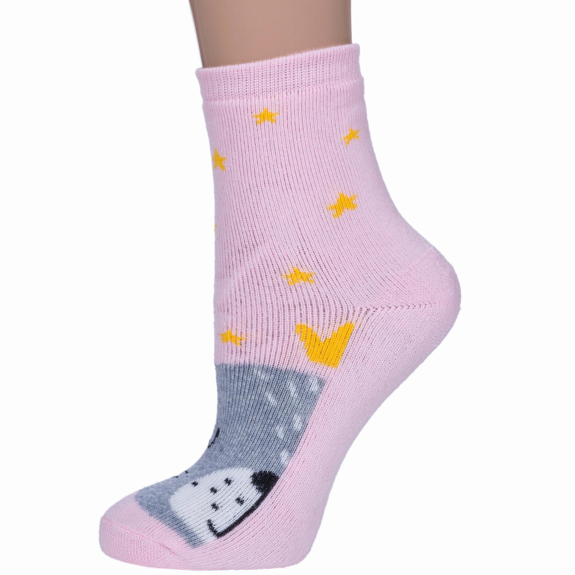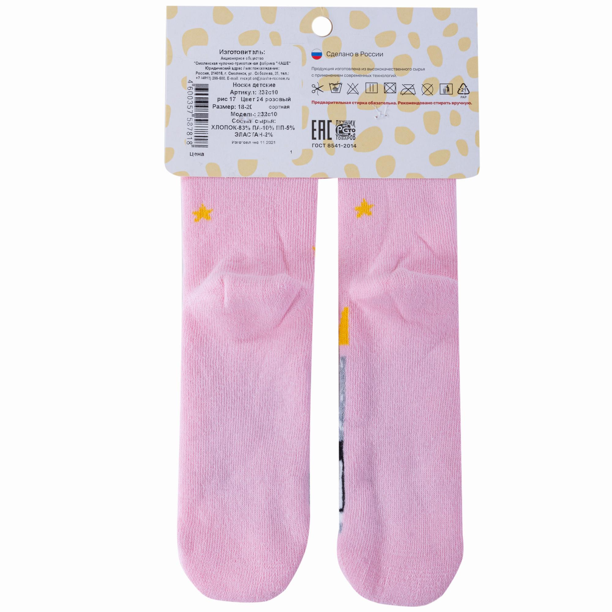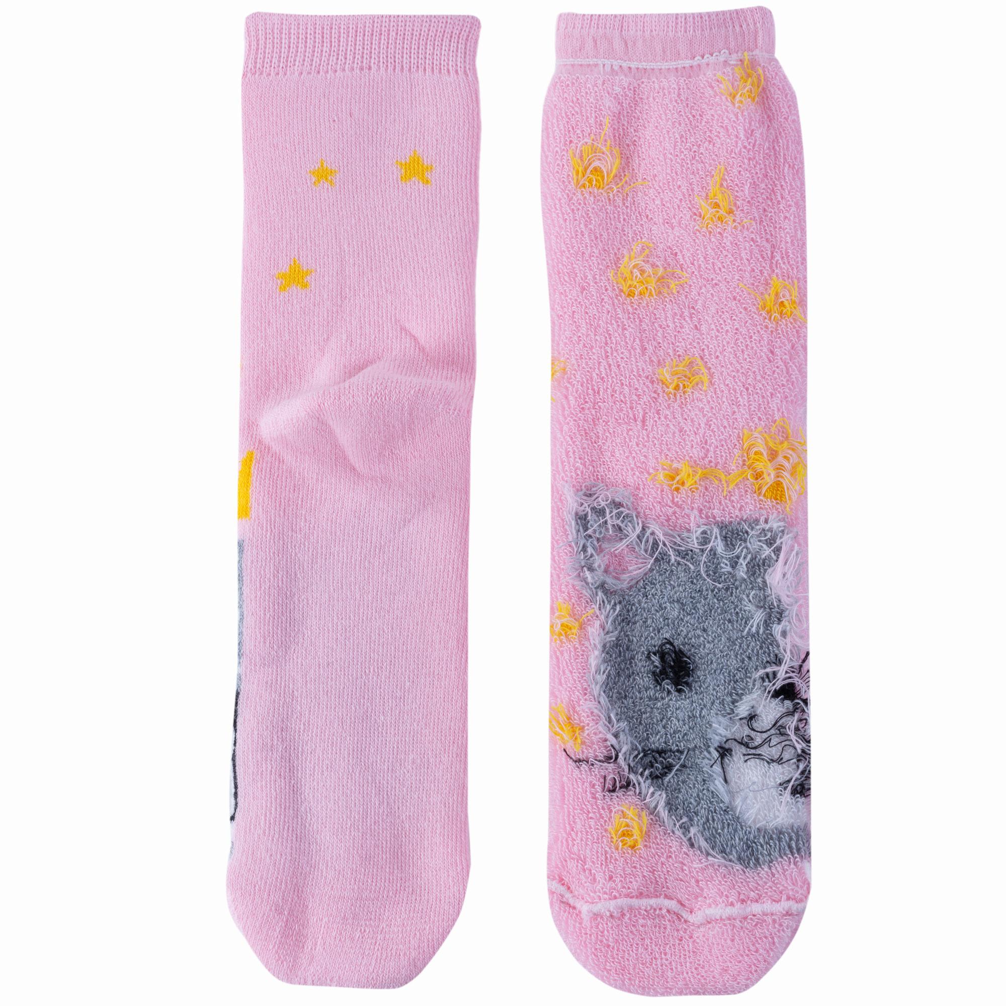 Зимние укороченные детские носки, цвет розовый, необычные, махровые, повседневные, теплые, разного цвета, шов обычный (не бесшовные), принт (рисунок): животные, крупные контрастные рисунки, с узором, состав: 83% хлопок, 10% полиамид, 5% полипропилен, 2% эластан, арт. 232С10. Производитель «Смоленская чулочная фабрика, Россия» под брендом «Наше смоленской чулочной фабрики».