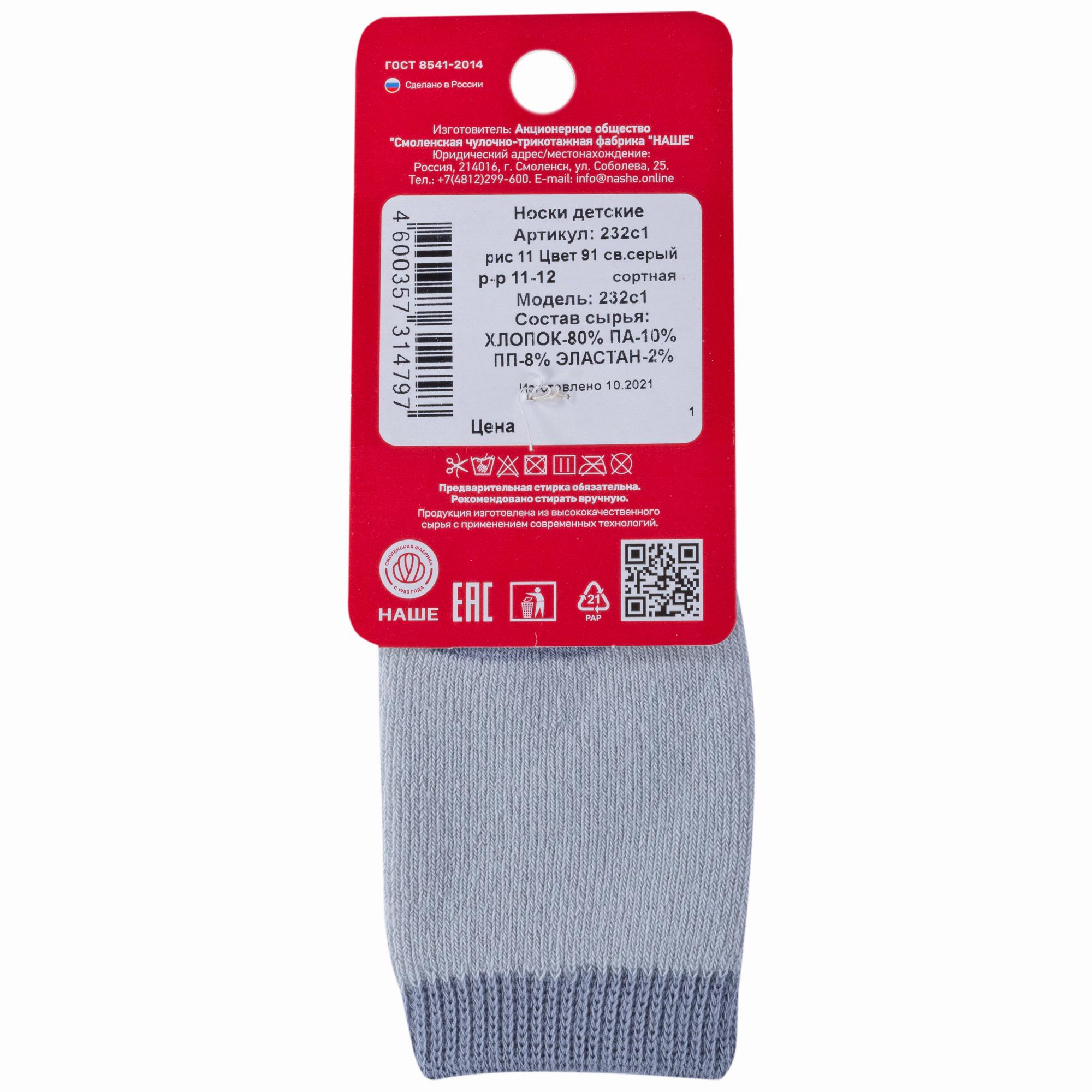 Детские махровые носки "НАШЕ" Смоленской чулочной фабрики 232С1, рис. 11, СВЕТЛО-СЕРЫЕ №91
