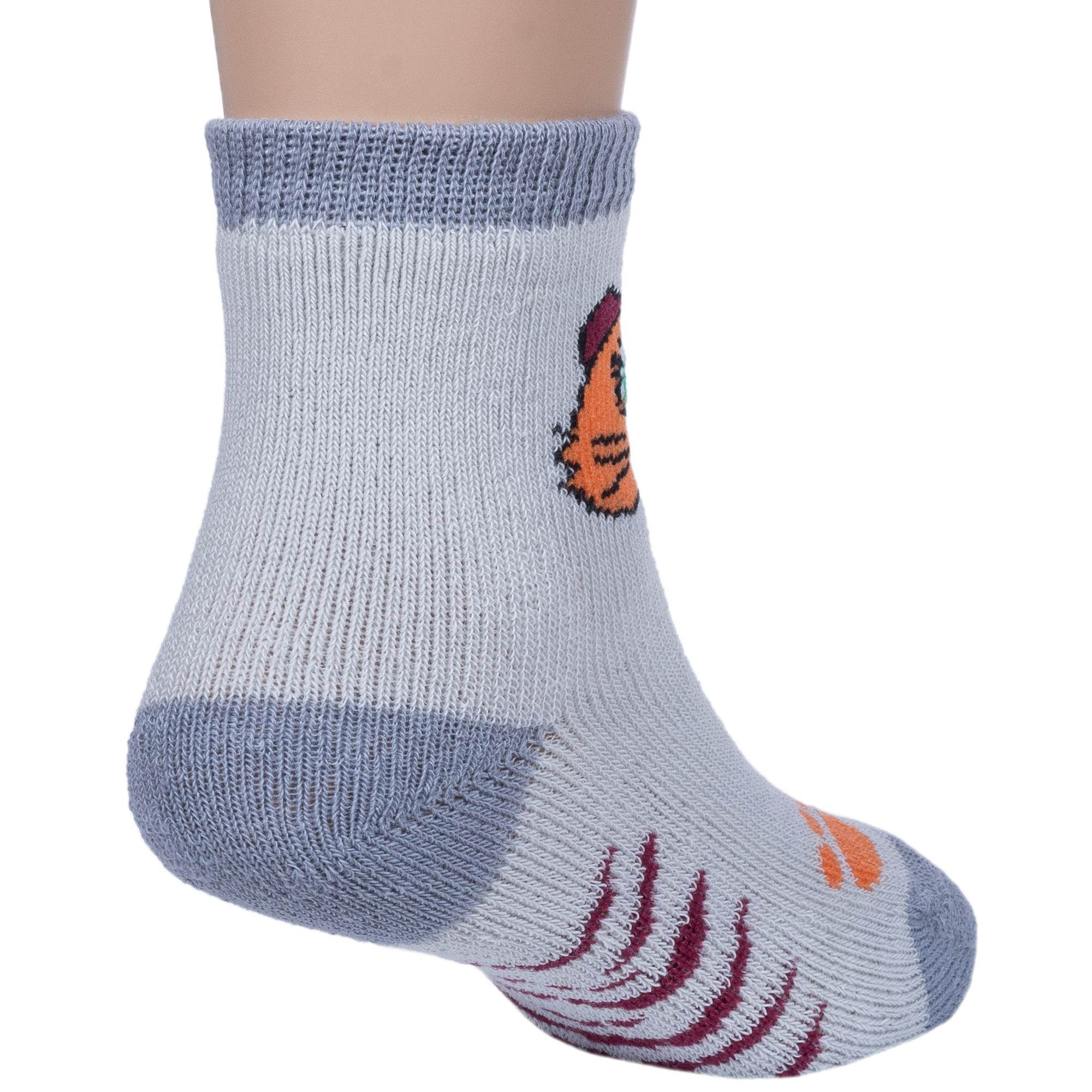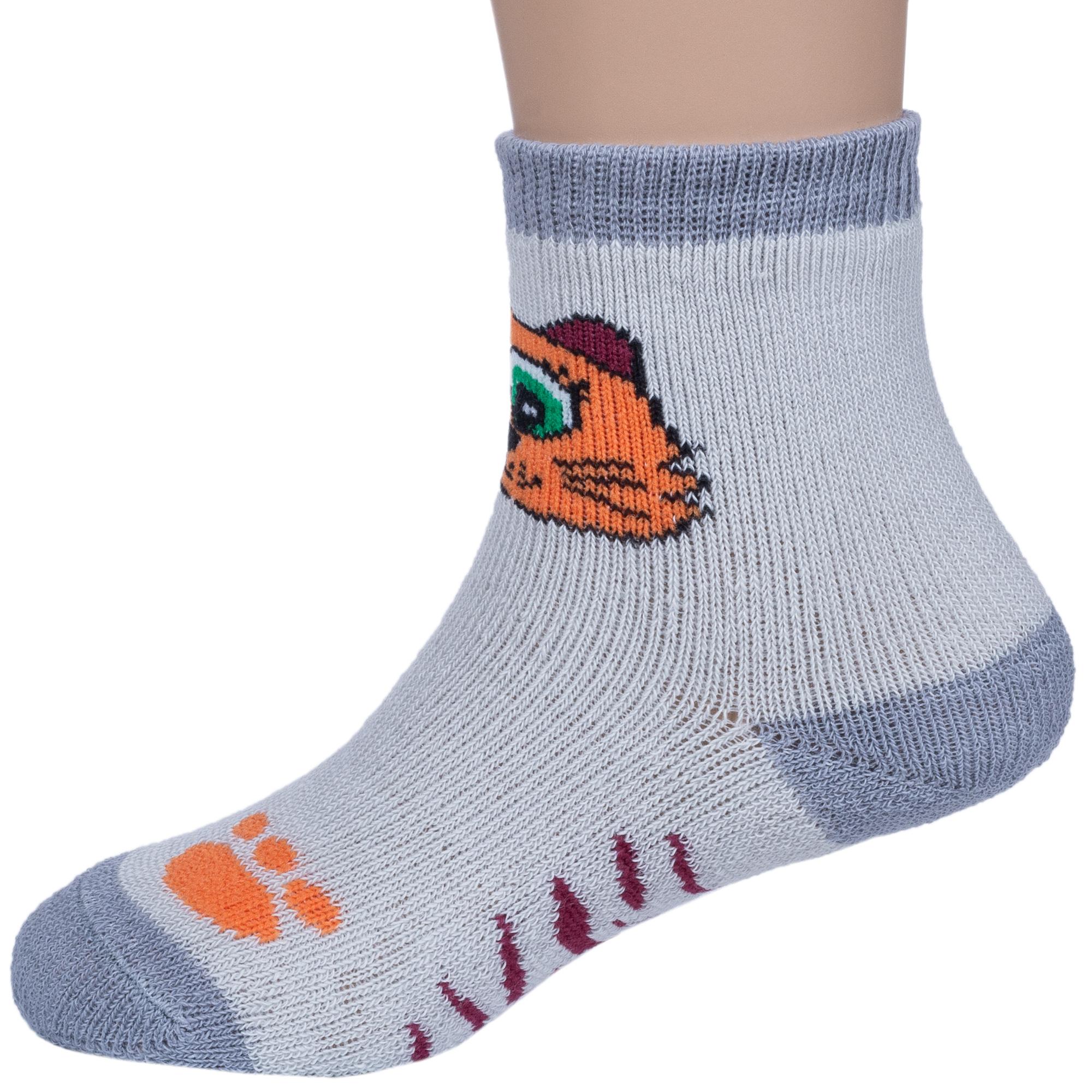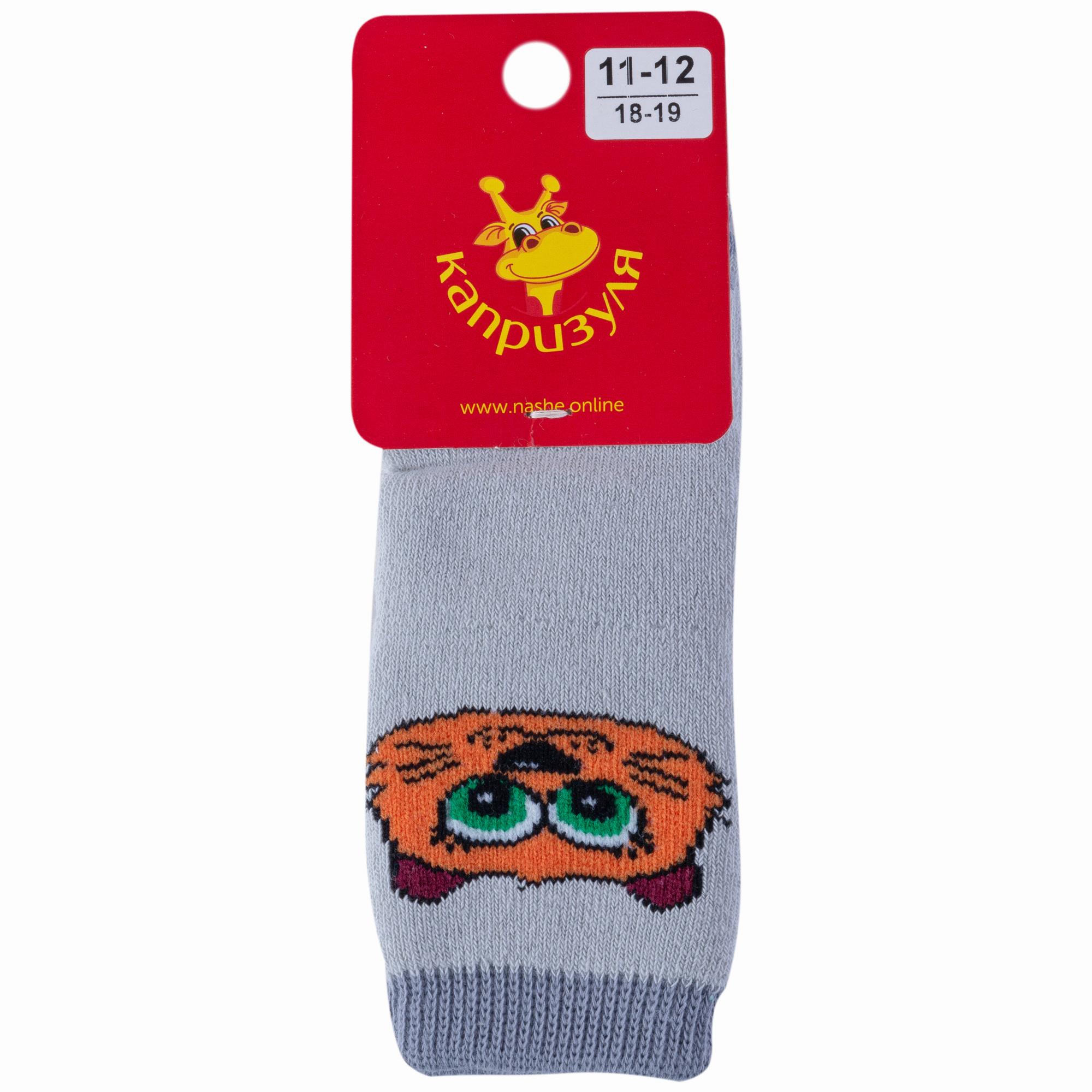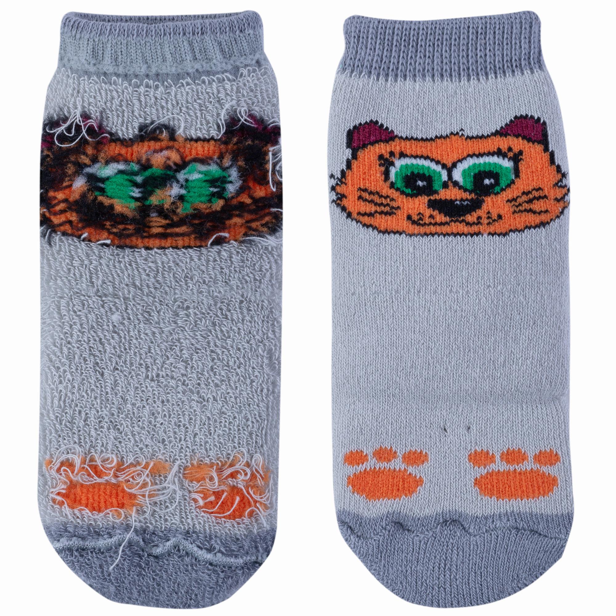 Зимние укороченные детские носки, цвет светло-серый, теплые, махровые, повседневные, шов обычный (не бесшовные), принт (рисунок): животные, с узором, крупные контрастные рисунки, состав: 80% хлопок, 10% полиамид, 8% полипропилен, 2% эластан, арт. 232С1. Производитель «Смоленская чулочная фабрика, Россия» под брендом «Наше смоленской чулочной фабрики».