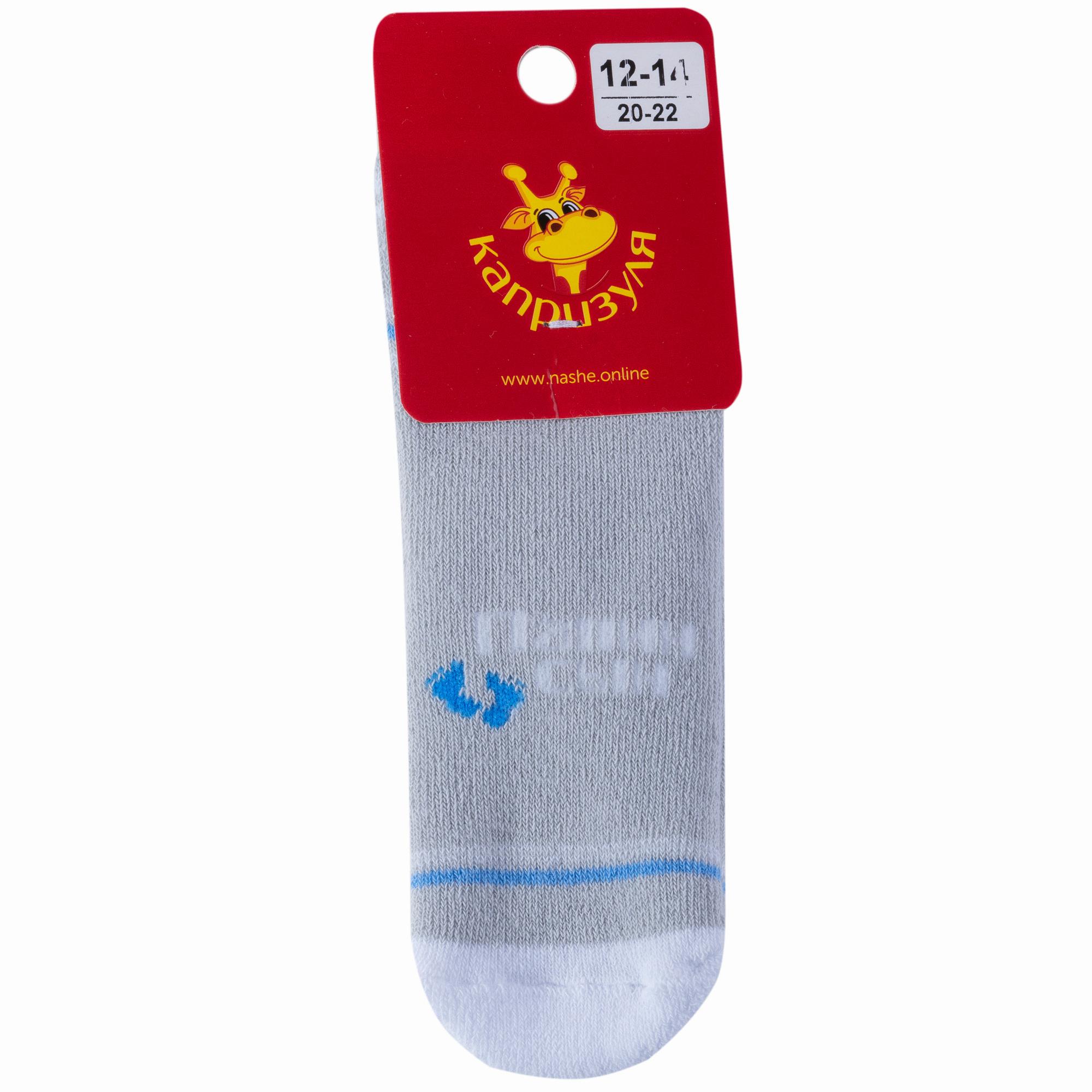 Зимние укороченные детские носки, цвет светло-серый, теплые, махровые, повседневные, шов обычный (не бесшовные), принт (рисунок): надписи, с узором, состав: 80% хлопок, 10% полиамид, 8% полипропилен, 2% эластан, арт. 232С1. Производитель «Смоленская чулочная фабрика, Россия» под брендом «Наше смоленской чулочной фабрики».