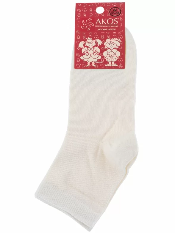 Круглогодичные укороченные детские носки, цвет кремовый-бежевый, классические, шов обычный (не бесшовные), принт (рисунок): однотонный, без рисунков/узоров, состав: 75% хлопок, 20% полиамид, 5% эластан, арт. ВК41000 000. Производитель «ООО «АКОС ТЭКС», Московская область, Россия» под брендом «Akos».