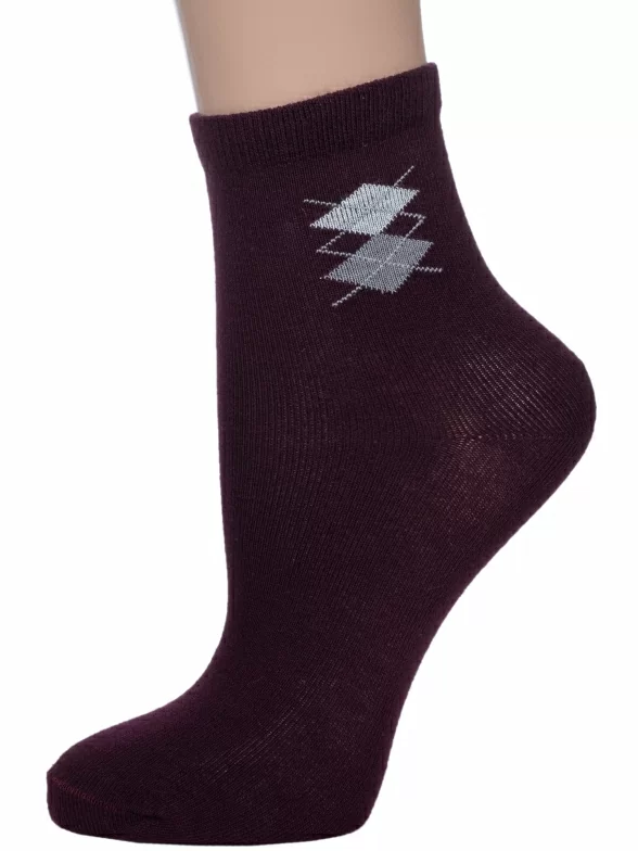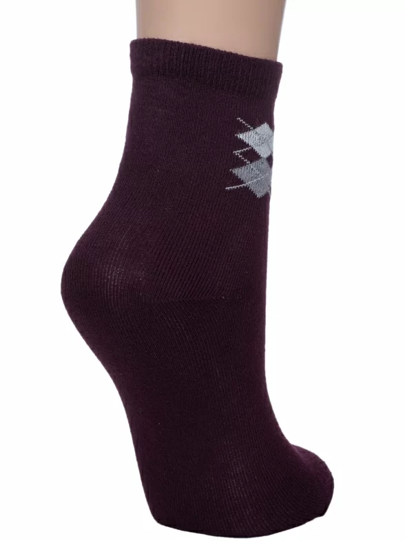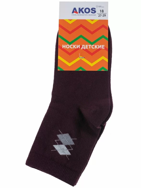 Круглогодичные укороченные детские носки, цвет бордовый, классические, шов обычный (не бесшовные), принт (рисунок): геометрия, аргайл, с узором, состав: 80% хлопок, 15% полиамид, 5% эластан, арт. CK41800 013. Производитель «ООО «АКОС ТЭКС», Московская область, Россия» под брендом «Akos».