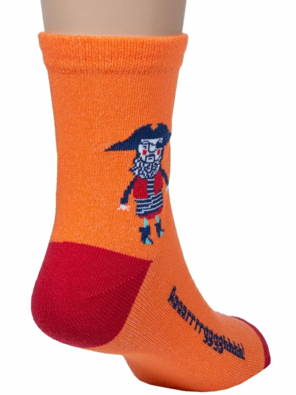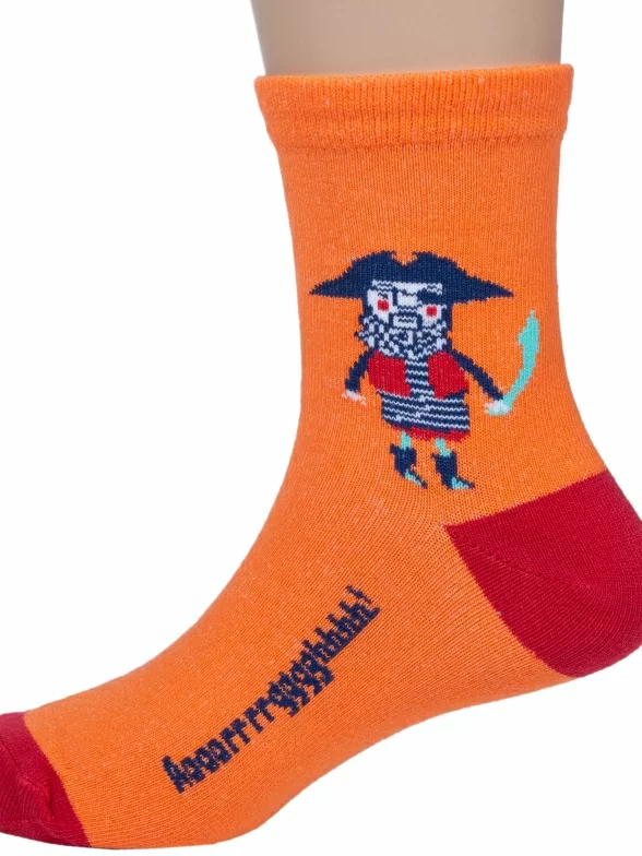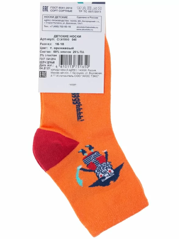 Круглогодичные укороченные детские носки, цвет оранжевый-многоцветные (мультиколор), повседневные, шов обычный (не бесшовные), принт (рисунок): фильмы / сериалы / мультики, люди, с узором, крупные контрастные рисунки, состав: 68% хлопок, 29% полиамид, 3% эластан, арт. CK41800 045. Производитель «ООО «АКОС ТЭКС», Московская область, Россия» под брендом «Akos».