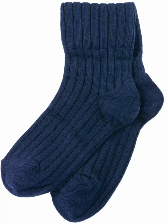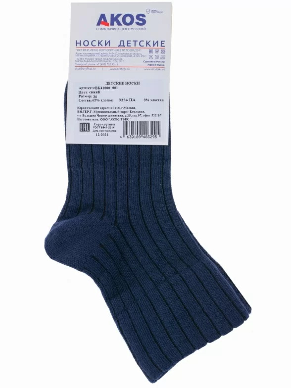 Круглогодичные укороченные детские носки, цвет темно-синий, с отворотом, классические, шов обычный (не бесшовные), принт (рисунок): полоски, в рубчик, с узором, состав: 65% хлопок, 32% полиамид, 3% эластан, арт. ВК41000 001. Производитель «ООО «АКОС ТЭКС», Московская область, Россия» под брендом «Akos».