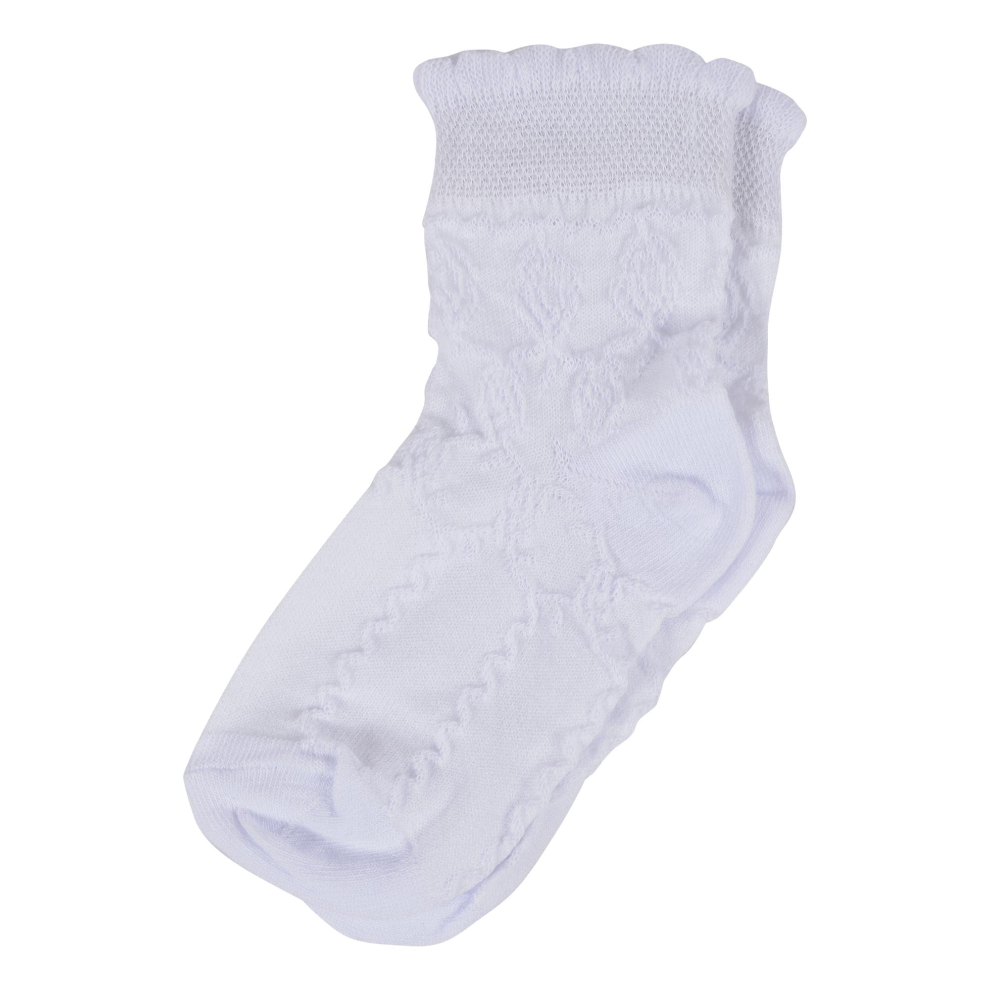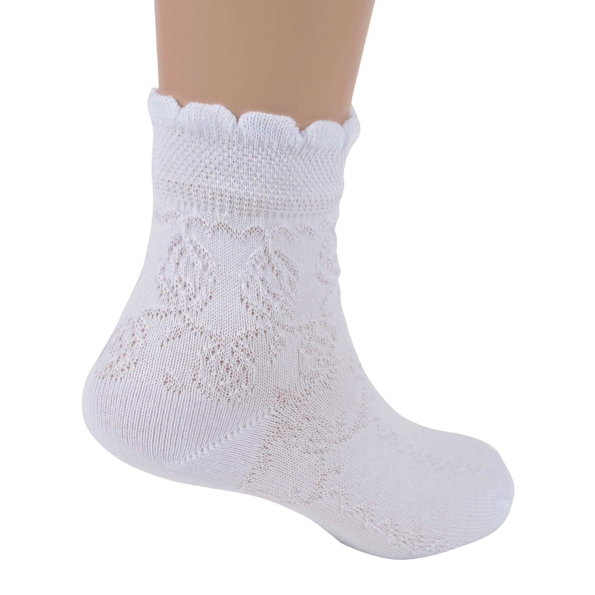 Летние укороченные детские носки, цвет белый, в сеточку, классические, шов обычный (не бесшовные), принт (рисунок): цветы / растения, кружево (или имитация), с узором, однотонный, состав: 90% хлопок, 10% эластан, арт. Д304. Производитель «Алена (г. Чебоксары)» Россия под брендом «Алена».