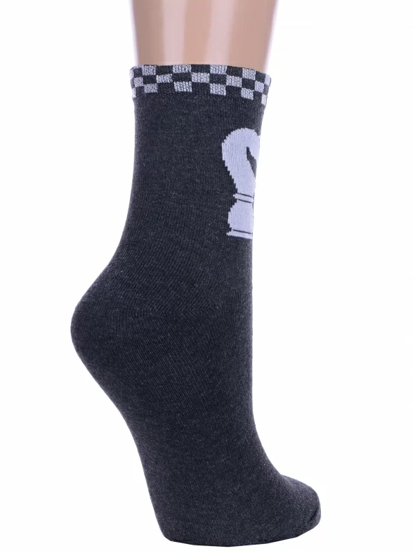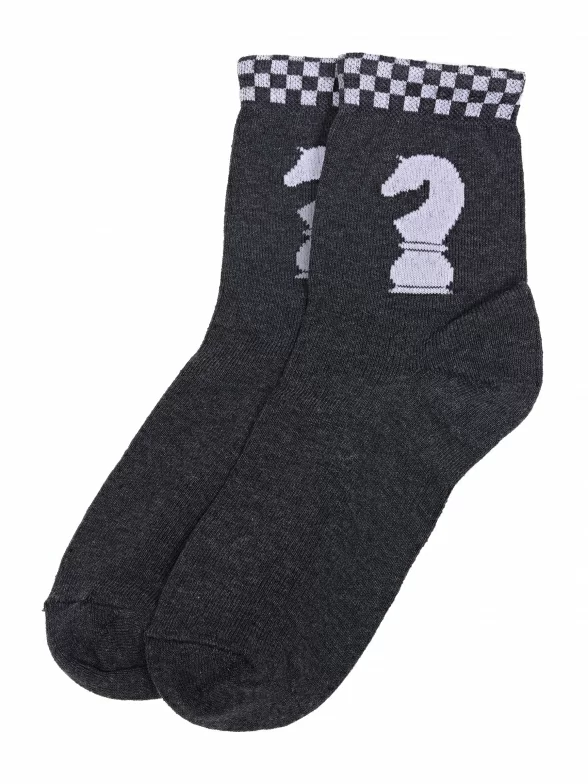 Круглогодичные укороченные детские носки, цвет темно-серый, повседневные, шов обычный (не бесшовные), принт (рисунок): игры, с узором, состав: 80% хлопок, 18% полиамид, 2% эластан, арт. С150. Производитель «ООО Альтаир, г. Орск, Оренбургская обл, Россия» под брендом «Альтаир».