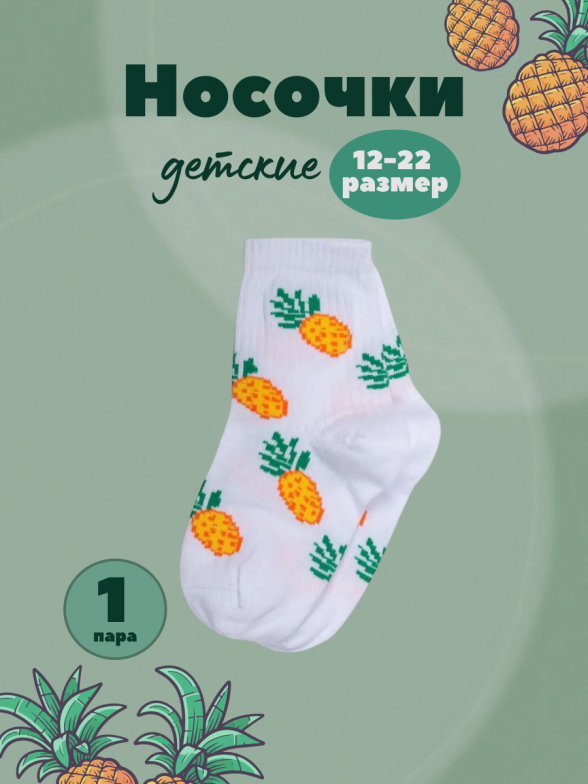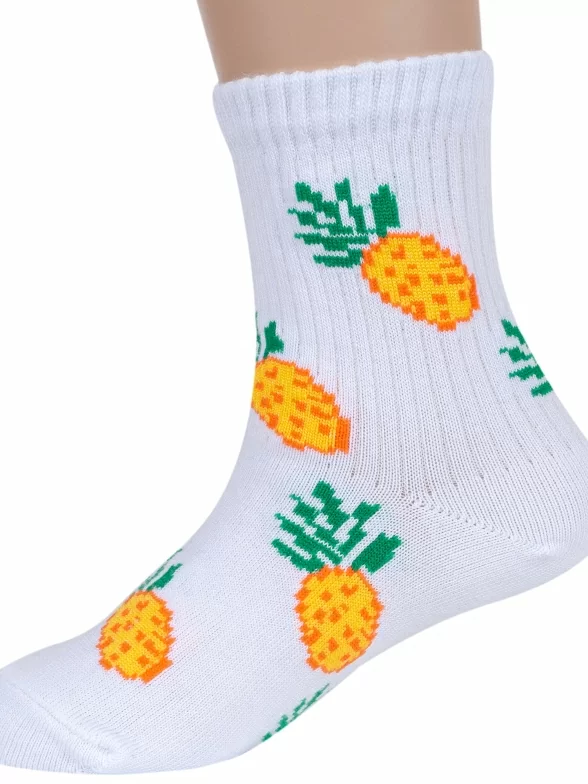 Детские носки Альтаир, А225, БЕЛЫЕ с желтыми ананасами