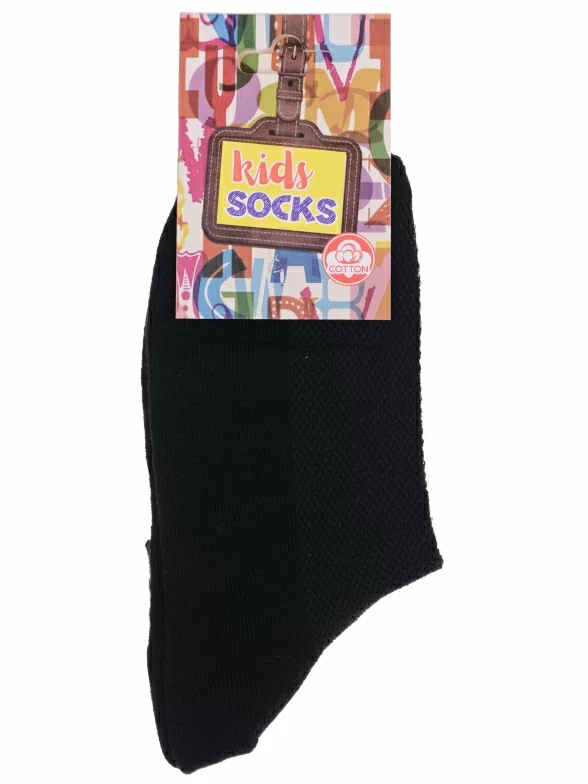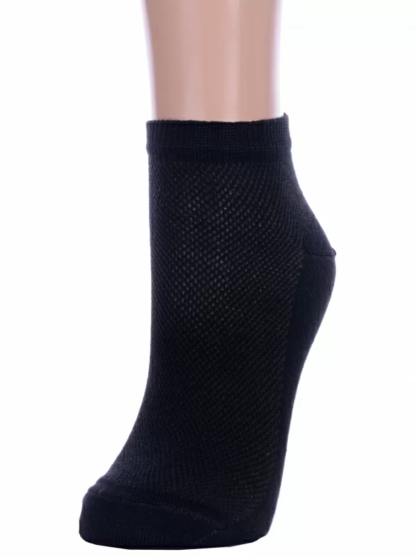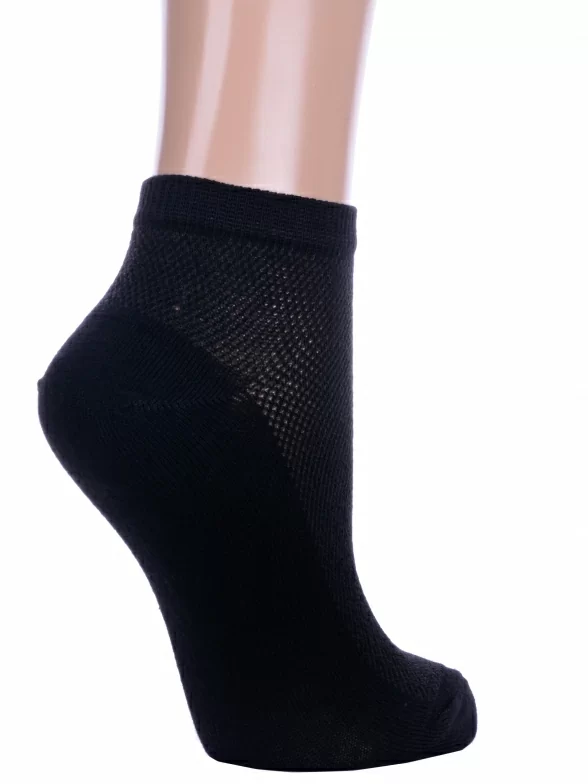 Летние укороченные детские носки, цвет черный, в сеточку, классические, возможно бесшовные, принт (рисунок): однотонный, без рисунков/узоров, состав: 80% хлопок, 18% полиамид, 2% эластан, арт. Д82. Производитель «ООО Альтаир, г. Орск, Оренбургская обл, Россия» под брендом «Альтаир».