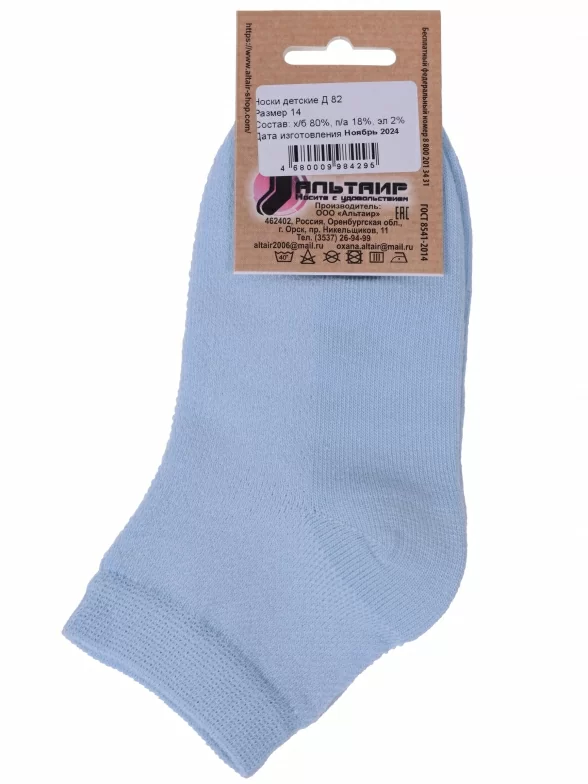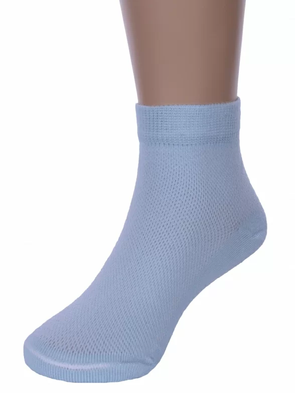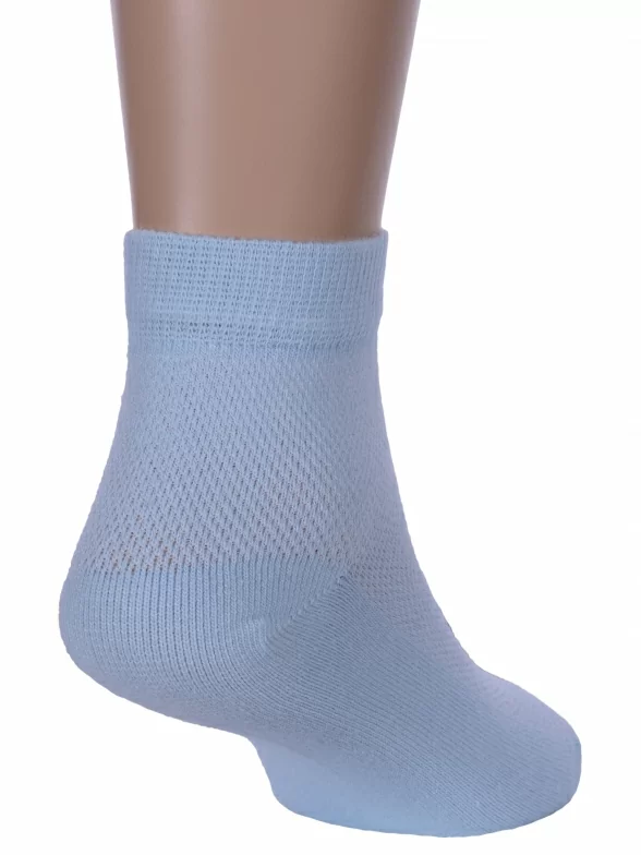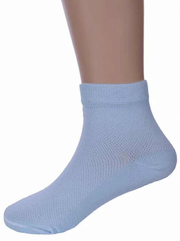 Летние укороченные детские носки, цвет голубой, в сеточку, шов плоский, принт (рисунок): с узором, однотонный, состав: 80% хлопок, 18% полиамид, 2% эластан, арт. Д82. Производитель «ООО Альтаир, г. Орск, Оренбургская обл, Россия» под брендом «Альтаир».