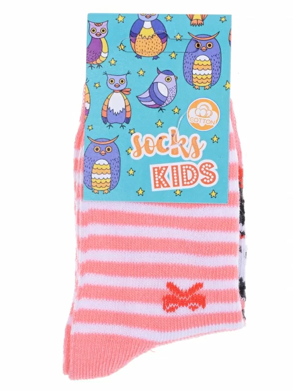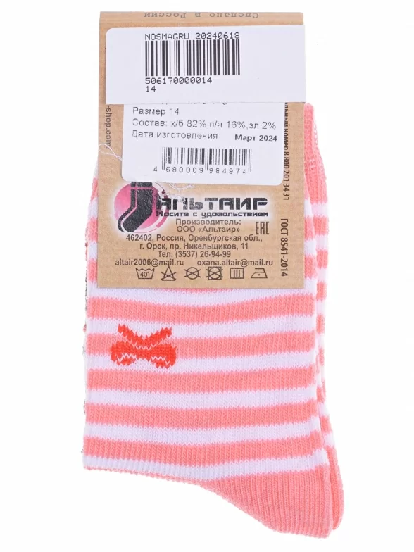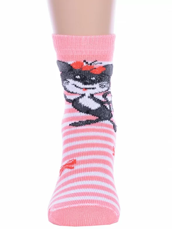 Круглогодичные укороченные детские носки, цвет розовый, повседневные, возможно бесшовные, принт (рисунок): полоски, животные, бабочки / бантики, с узором, крупные контрастные рисунки, состав: 82% хлопок, 16% полиамид, 2% эластан, арт. С143. Производитель «ООО Альтаир, г. Орск, Оренбургская обл, Россия» под брендом «Альтаир».