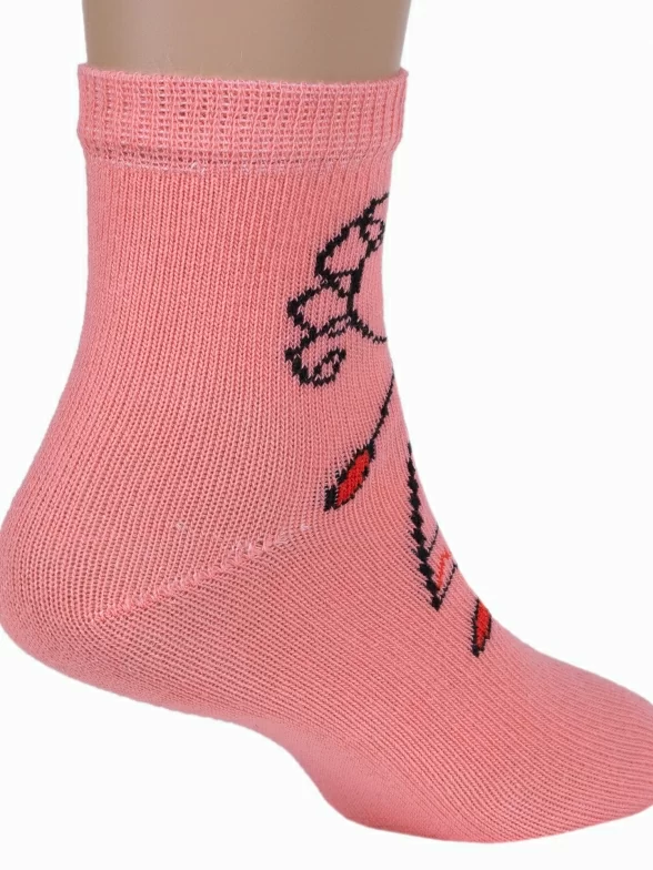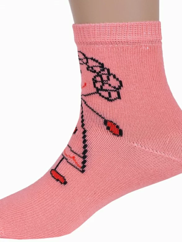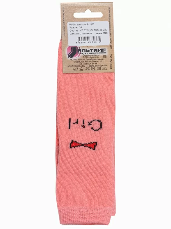 Круглогодичные укороченные детские носки, цвет розовый, повседневные, необычные, разного цвета, шов обычный (не бесшовные), принт (рисунок): овощи / фрукты / ягоды, надписи, люди, с узором, состав: 90% хлопок, 8% полиамид, 2% эластан, арт. А172. Производитель «ООО Альтаир, г. Орск, Оренбургская обл, Россия» под брендом «Альтаир».