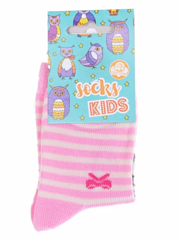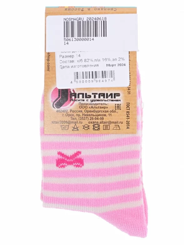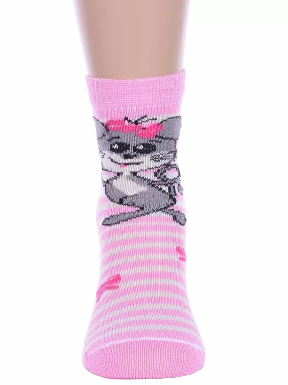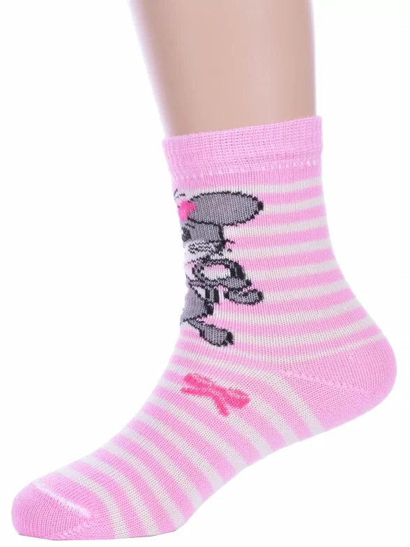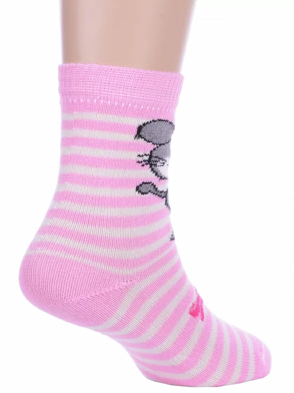 Круглогодичные укороченные детские носки, цвет розовый, повседневные, возможно бесшовные, принт (рисунок): полоски, животные, бабочки / бантики, с узором, крупные контрастные рисунки, состав: 82% хлопок, 16% полиамид, 2% эластан, арт. С143. Производитель «ООО Альтаир, г. Орск, Оренбургская обл, Россия» под брендом «Альтаир».