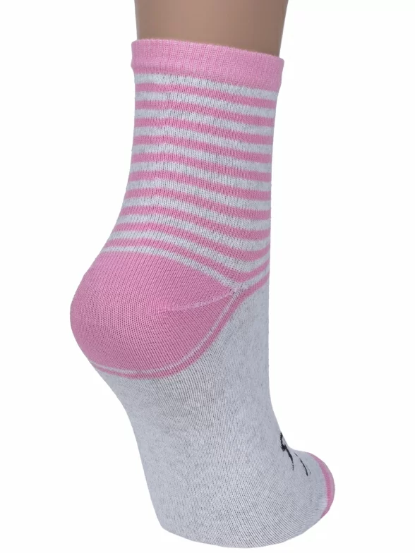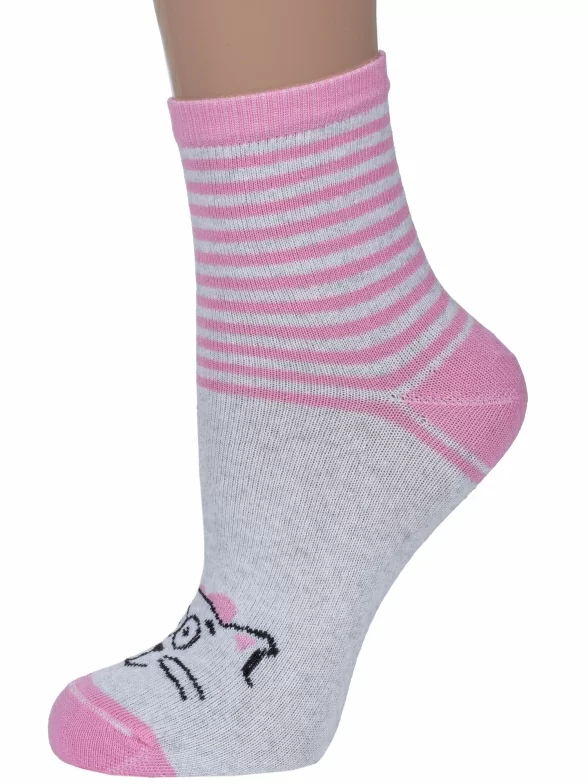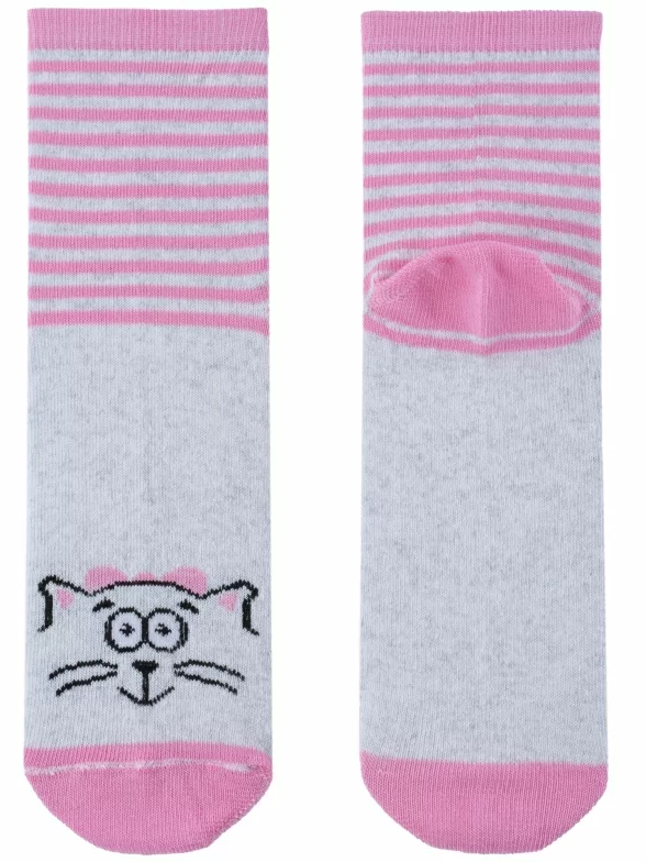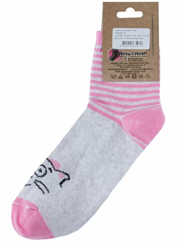 Круглогодичные средней длины детские носки, цвет розовый, повседневные, шов обычный (не бесшовные), принт (рисунок): животные, с узором, состав: 80% хлопок, 18% полиамид, 2% эластан, арт. С183. Производитель «ООО Альтаир, г. Орск, Оренбургская обл, Россия» под брендом «Альтаир».
