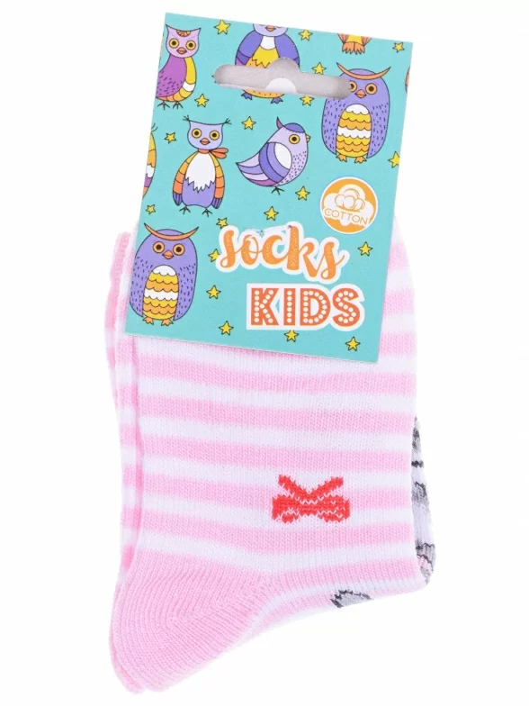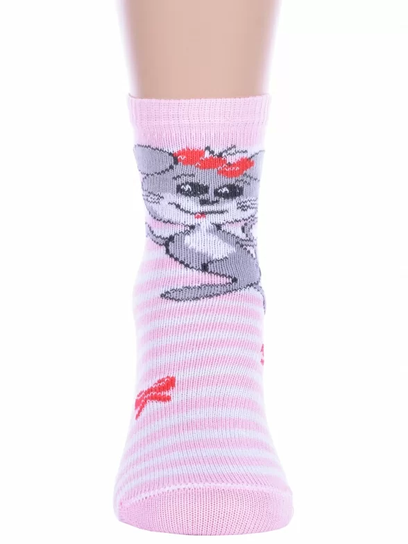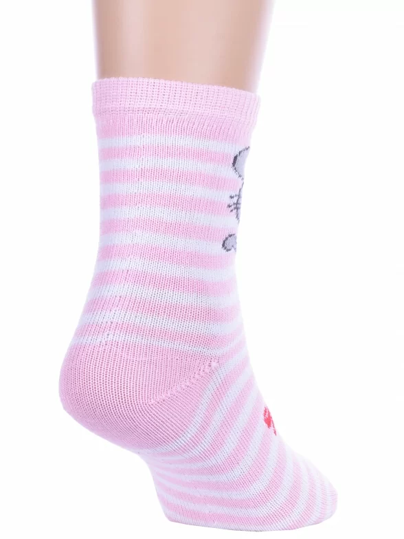 Круглогодичные укороченные детские носки, цвет розовый, повседневные, возможно бесшовные, принт (рисунок): полоски, животные, бабочки / бантики, с узором, крупные контрастные рисунки, состав: 82% хлопок, 16% полиамид, 2% эластан, арт. С143. Производитель «ООО Альтаир, г. Орск, Оренбургская обл, Россия» под брендом «Альтаир».