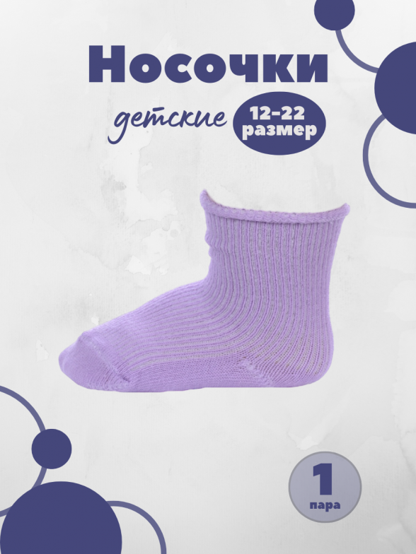 Круглогодичные укороченные детские носки, цвет сиреневый, классические, медицинские, шов обычный (не бесшовные), принт (рисунок): с узором, однотонный, в рубчик, состав: 90% хлопок, 8% полиамид, 2% эластан, арт. С63. Производитель «ООО Альтаир, г. Орск, Оренбургская обл, Россия» под брендом «Альтаир».