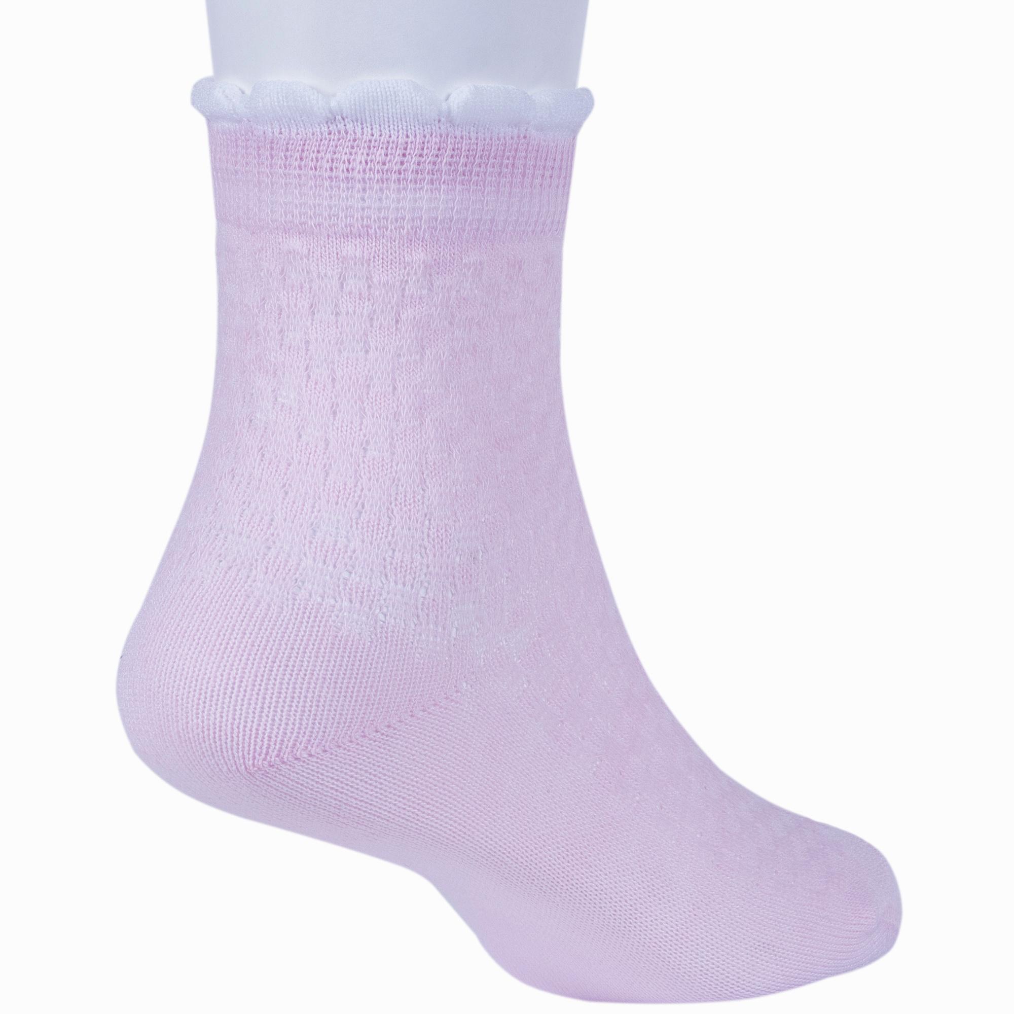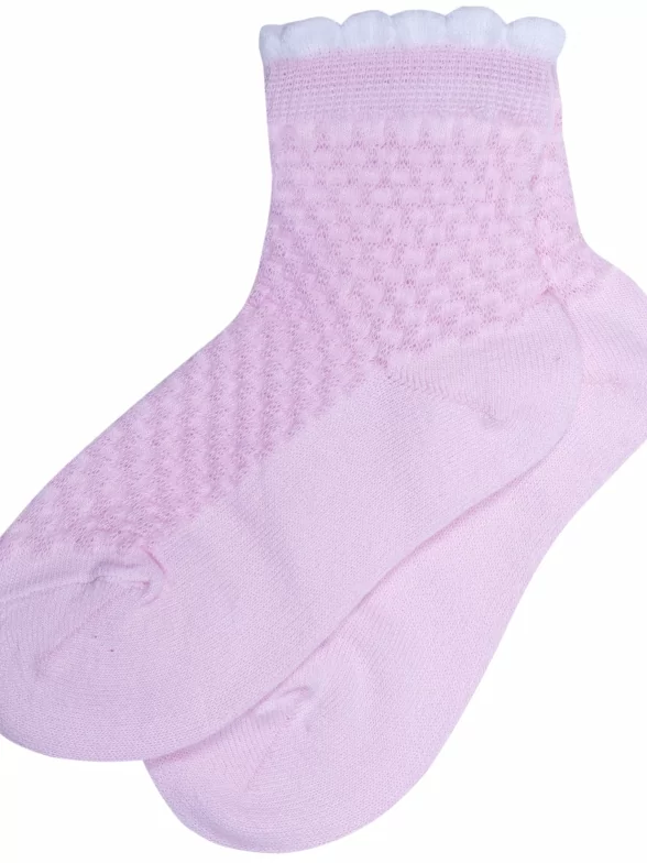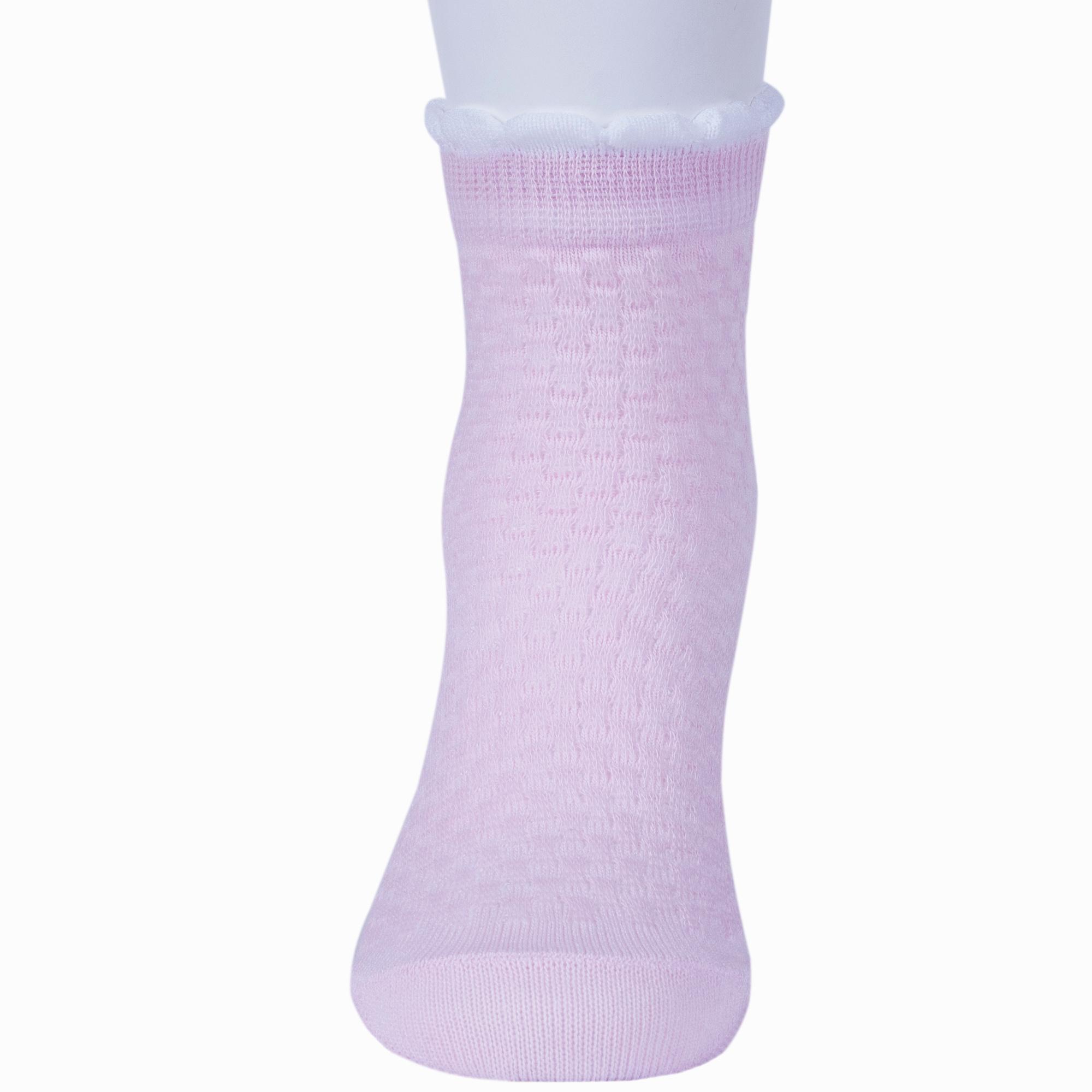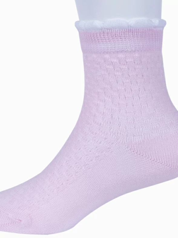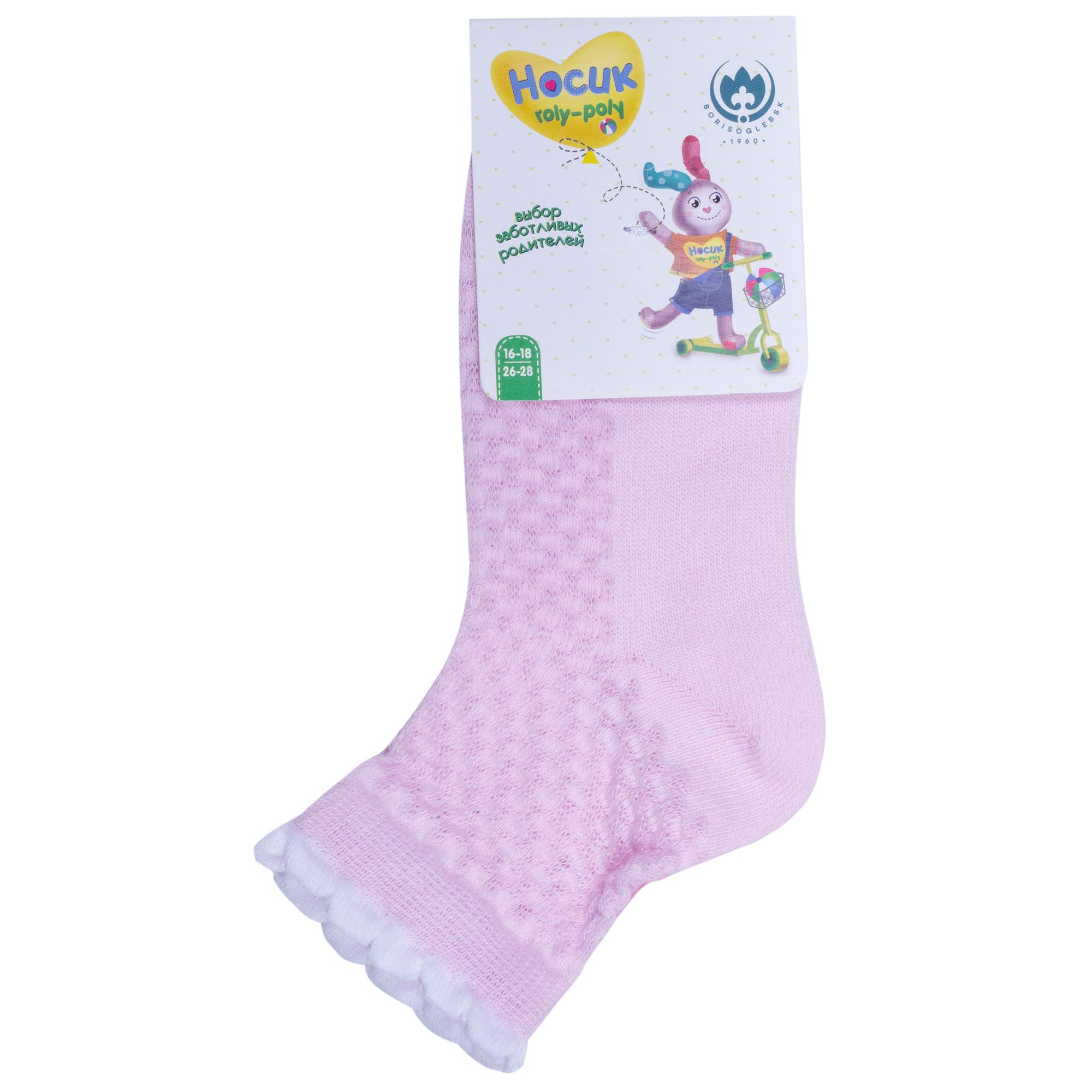 Летние укороченные детские носки, цвет сиреневый, в сеточку, классические, шов обычный (не бесшовные), принт (рисунок): с узором, состав: 85% хлопок, 12% полиамид, 3% эластан, арт. 8С953. Производитель «АО Борисоглебский трикотаж, Воронежская обл, Россия» под брендом «Борисоглебский трикотаж».