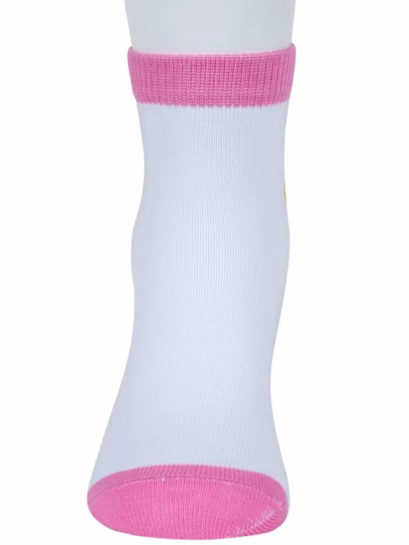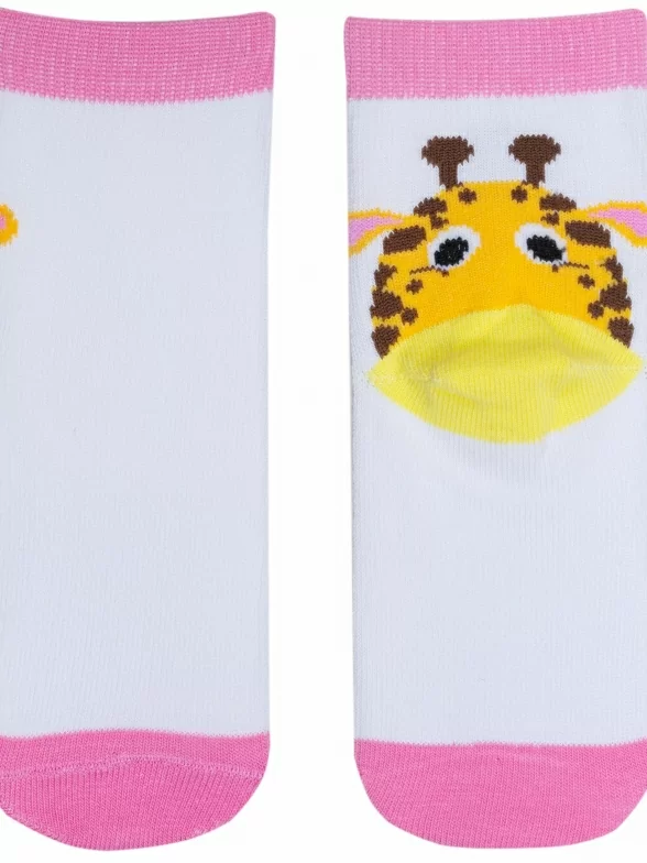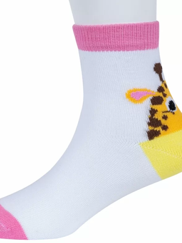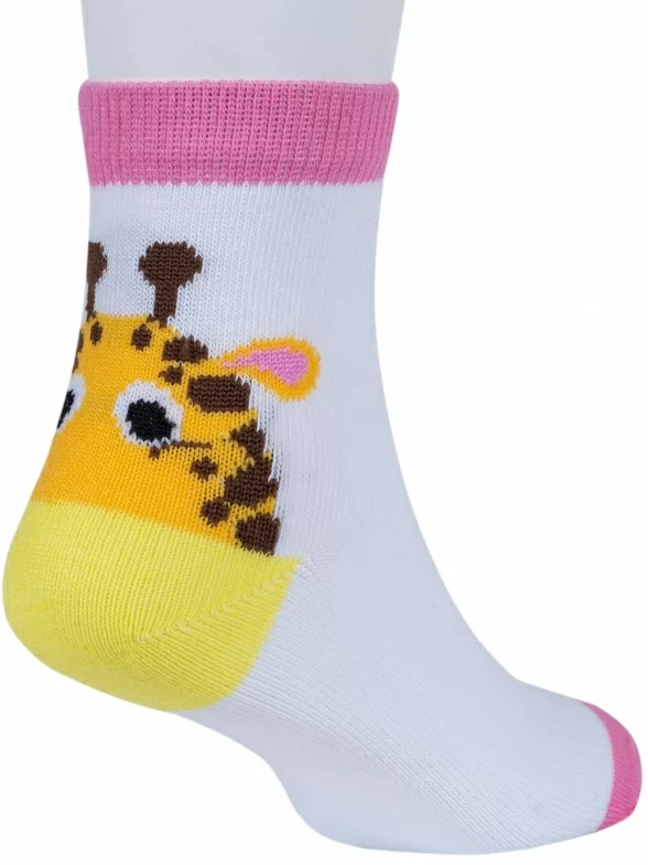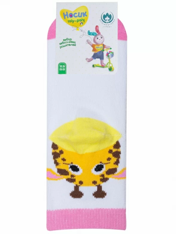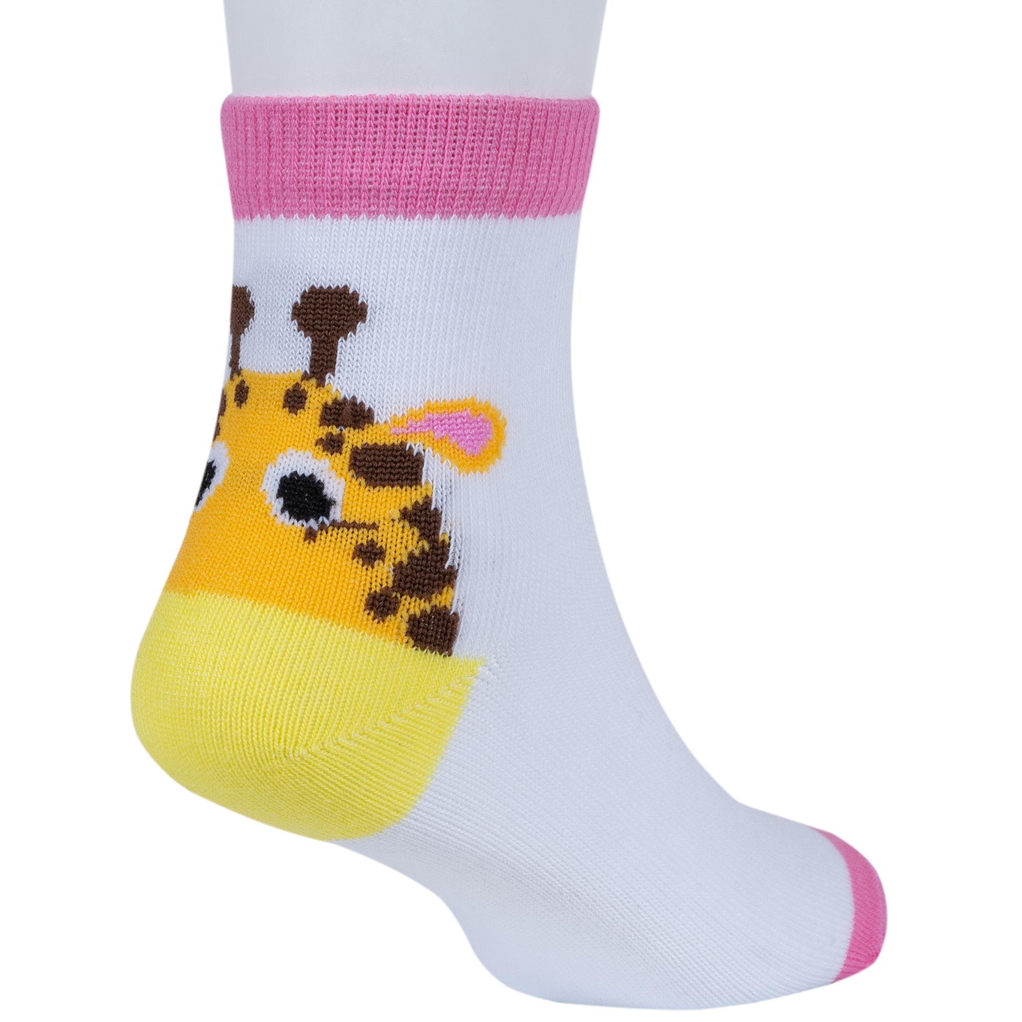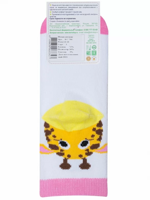 Круглогодичные укороченные детские носки, цвет белый, повседневные, шов обычный (не бесшовные), принт (рисунок): животные, с узором, состав: 71% хлопок, 26% полиэстер, 3% эластан, арт. 8С704. Производитель «АО Борисоглебский трикотаж, Воронежская обл, Россия» под брендом «Борисоглебский трикотаж».