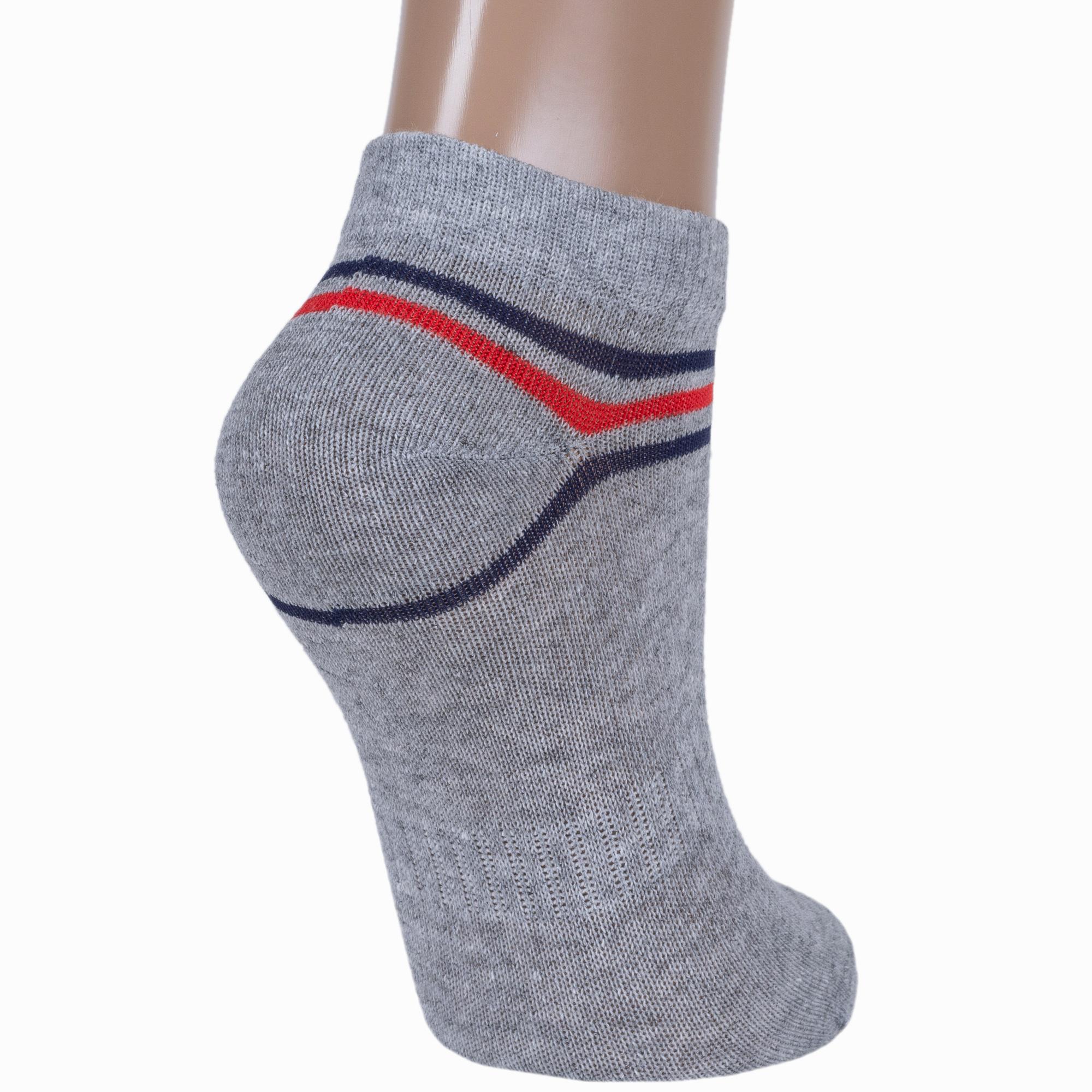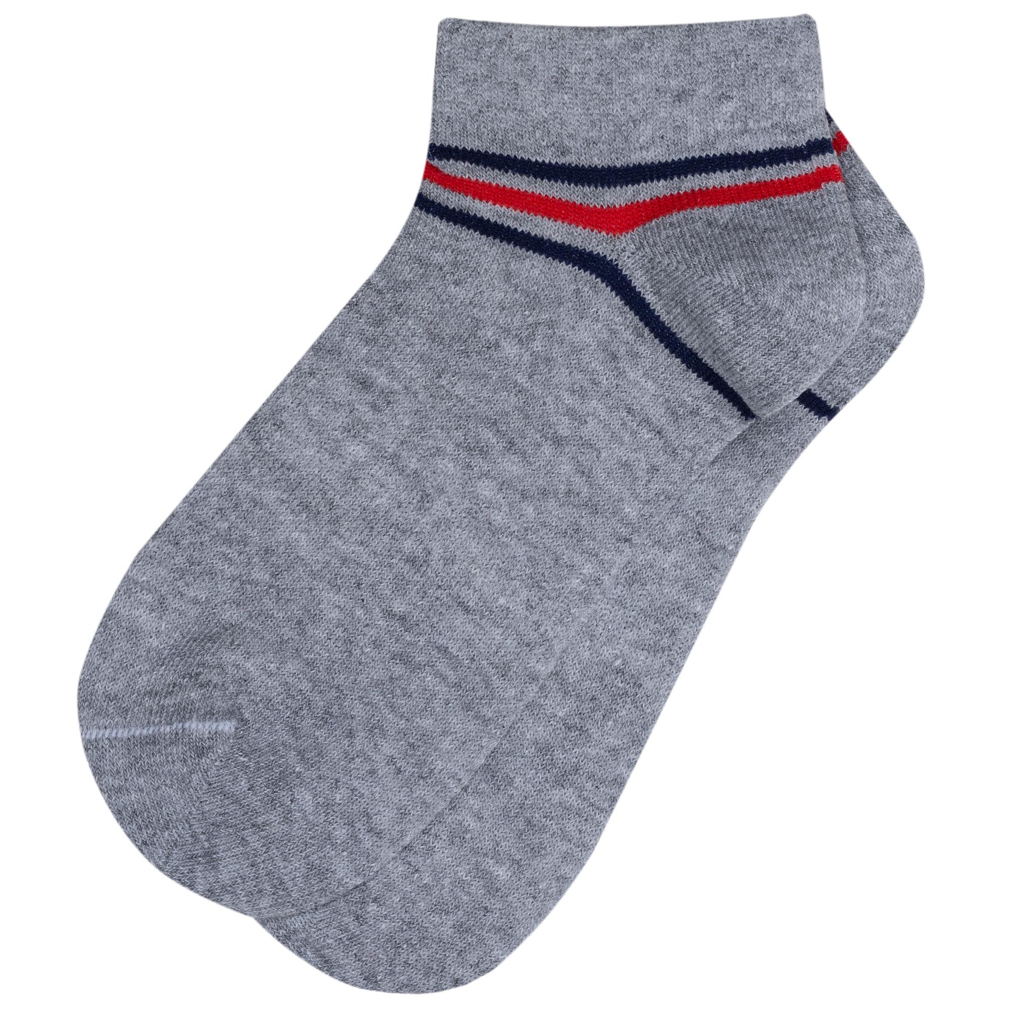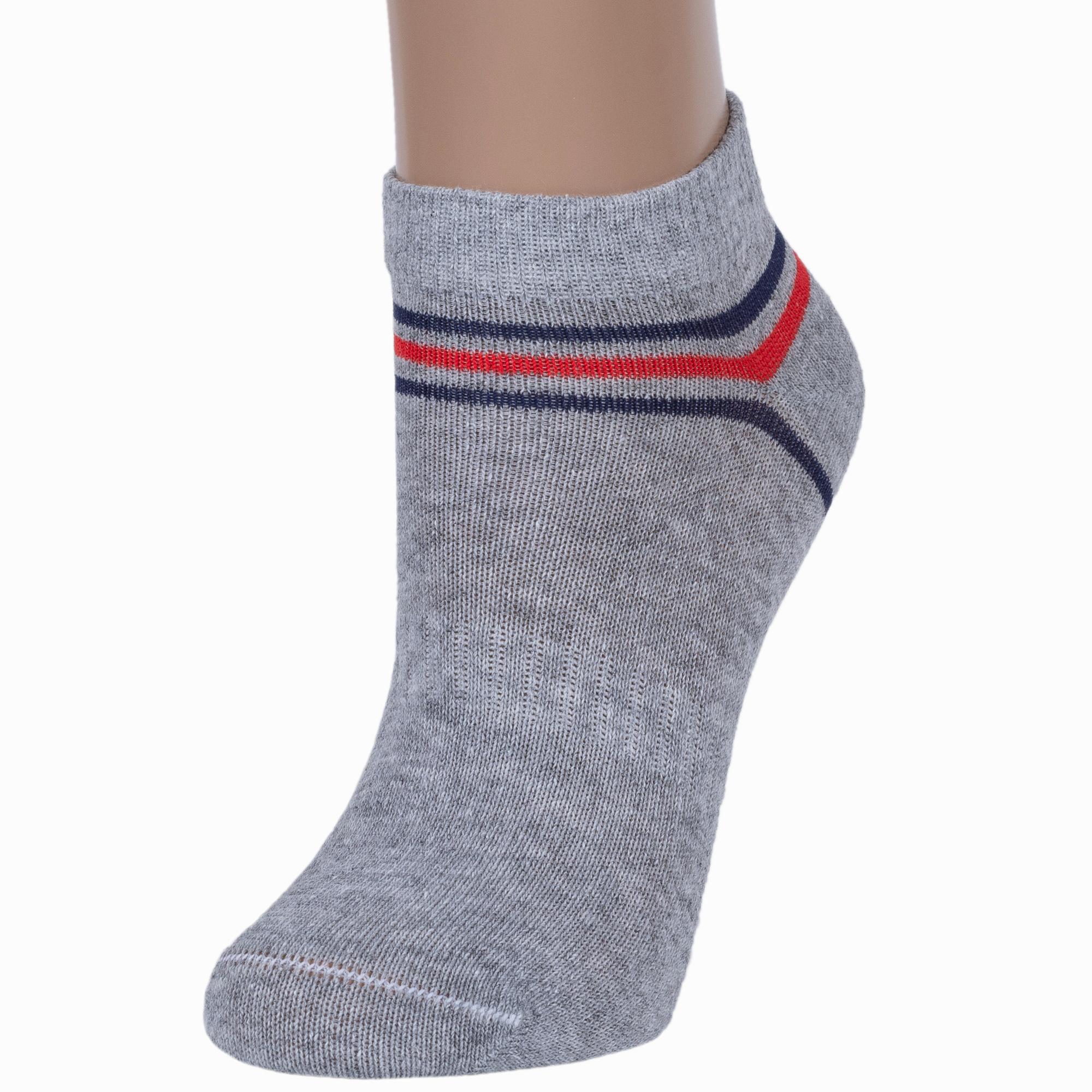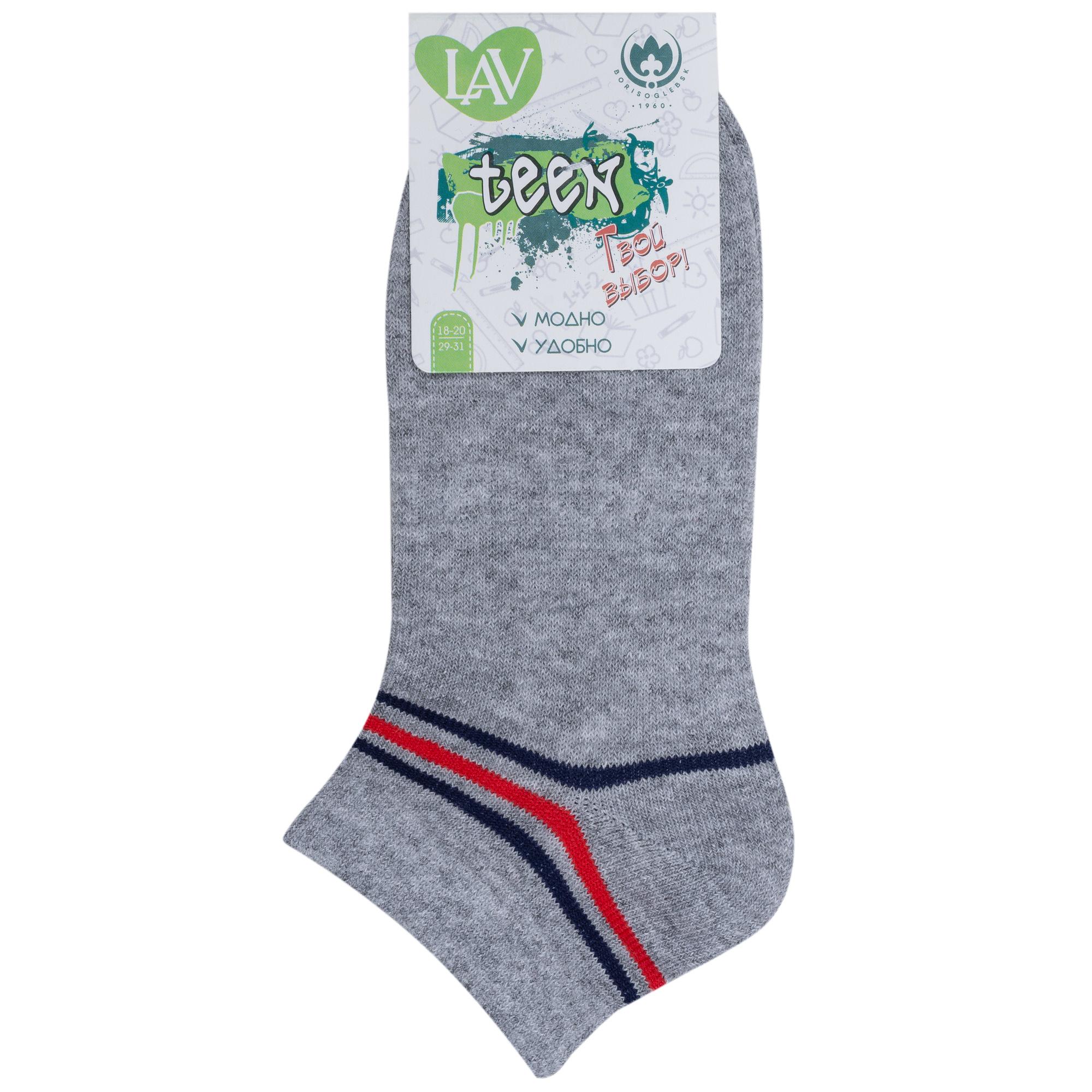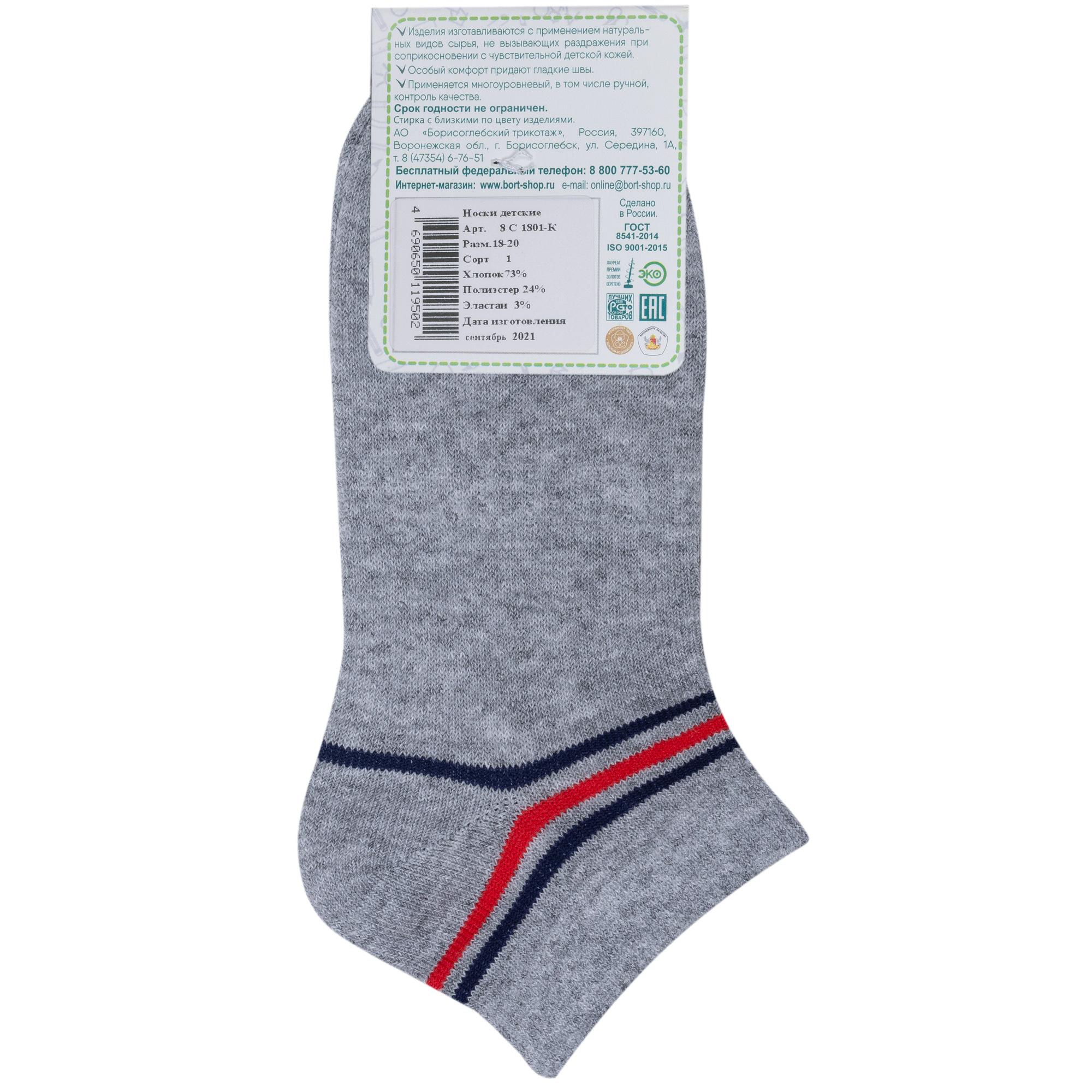 Круглогодичные короткие детские носки, цвет серый, спортивные, шов кеттельный (бесшовная технология), принт (рисунок): спортивные, с узором, состав: 73% хлопок, 24% полиэстер, 3% эластан, арт. 8С1801-К. Производитель «АО Борисоглебский трикотаж, Воронежская обл, Россия» под брендом «Борисоглебский трикотаж».