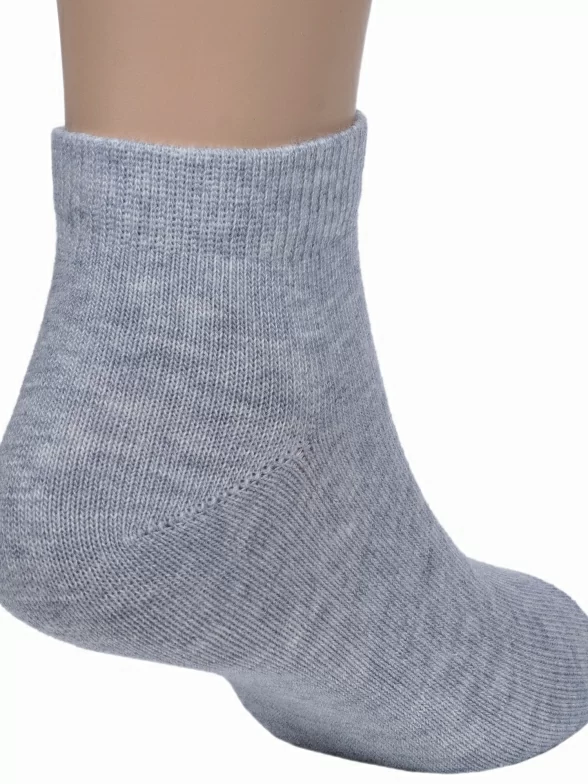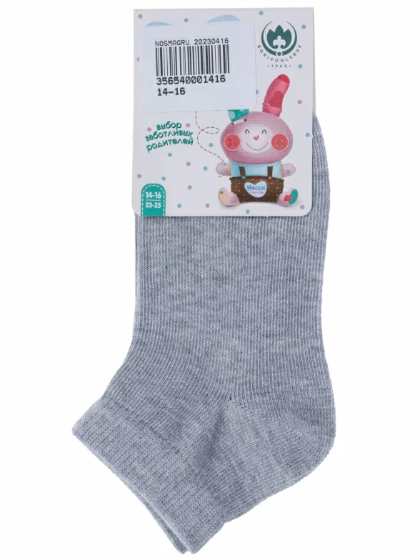Круглогодичные короткие детские носки, цвет светло-серый, классические, шов обычный (не бесшовные), принт (рисунок): без рисунков/узоров, однотонный, состав: 74% хлопок, 23% полиэстер, 3% эластан, арт. 8С720. Производитель «АО Борисоглебский трикотаж, Воронежская обл, Россия» под брендом «Борисоглебский трикотаж».