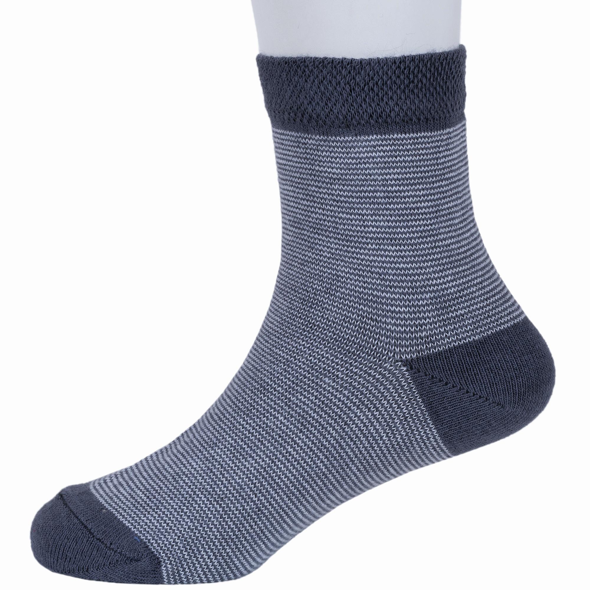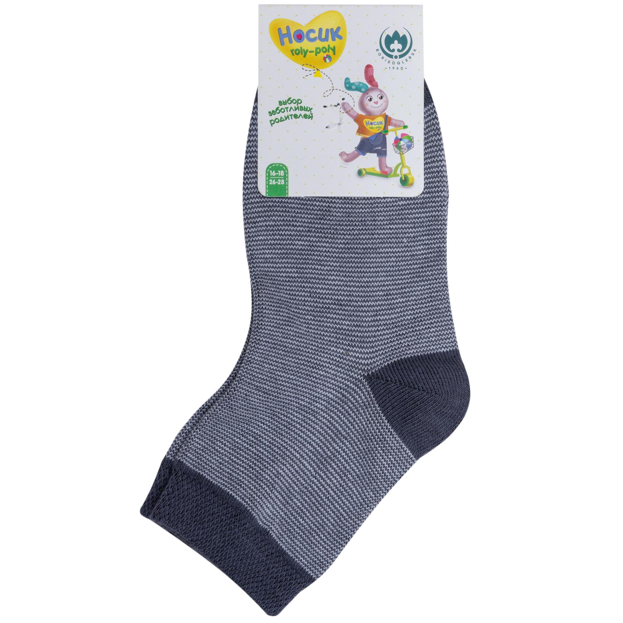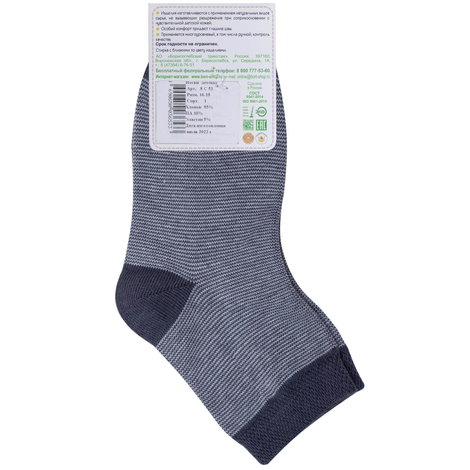 Круглогодичные укороченные детские носки, цвет серый, классические, шов обычный (не бесшовные), принт (рисунок): полоски, с узором, состав: 85% хлопок, 10% полиамид, 5% эластан, арт. 8С53. Производитель «АО Борисоглебский трикотаж, Воронежская обл, Россия» под брендом «Борисоглебский трикотаж».