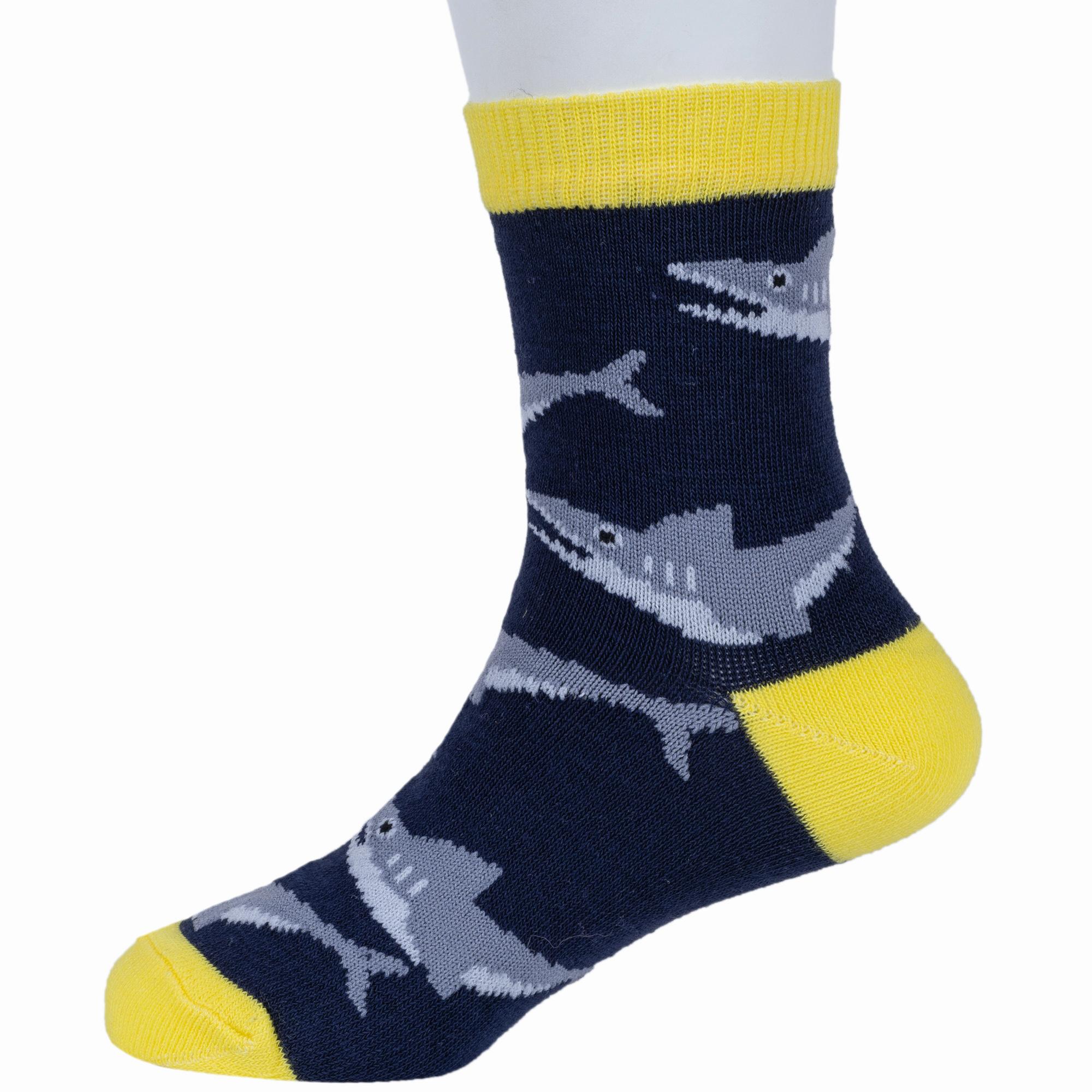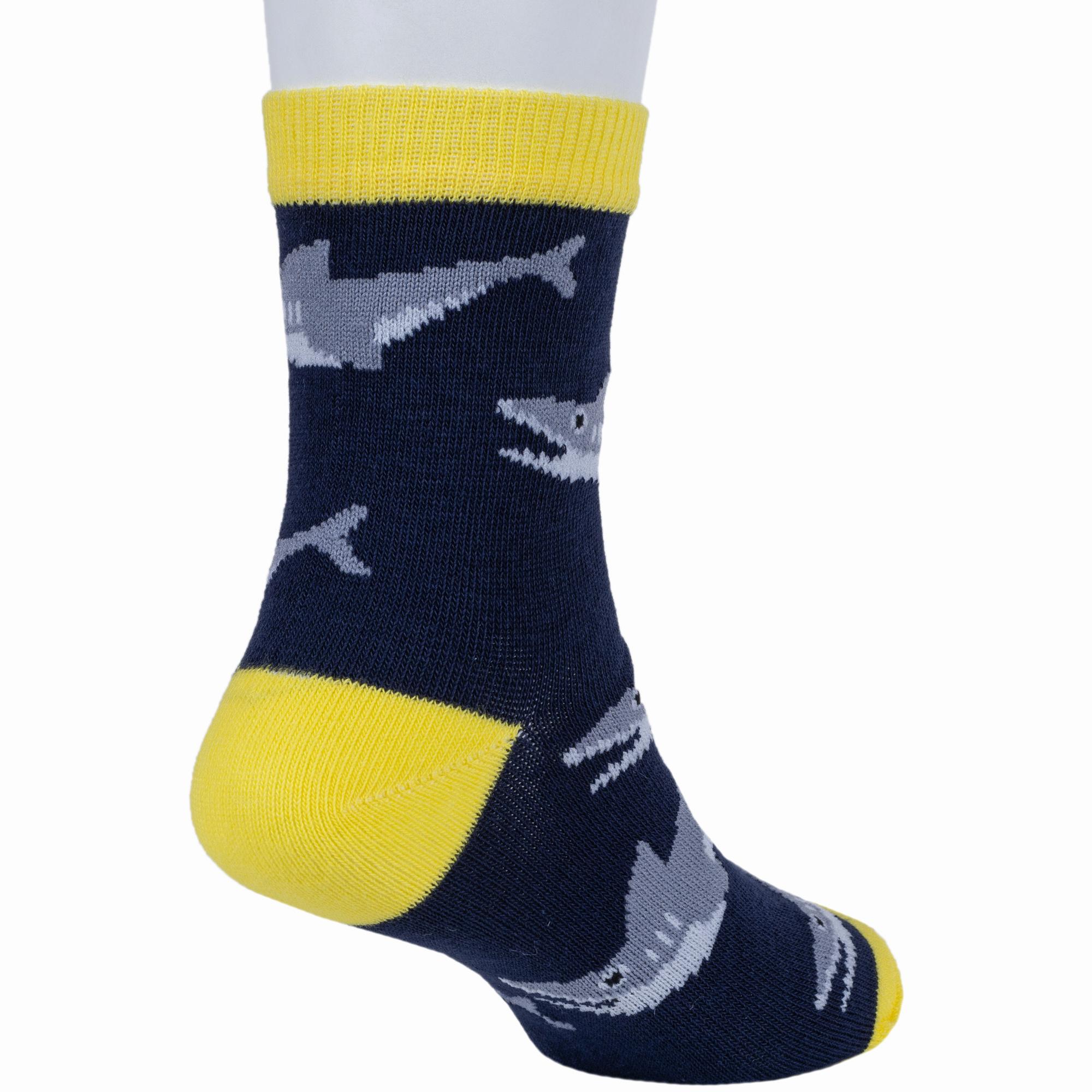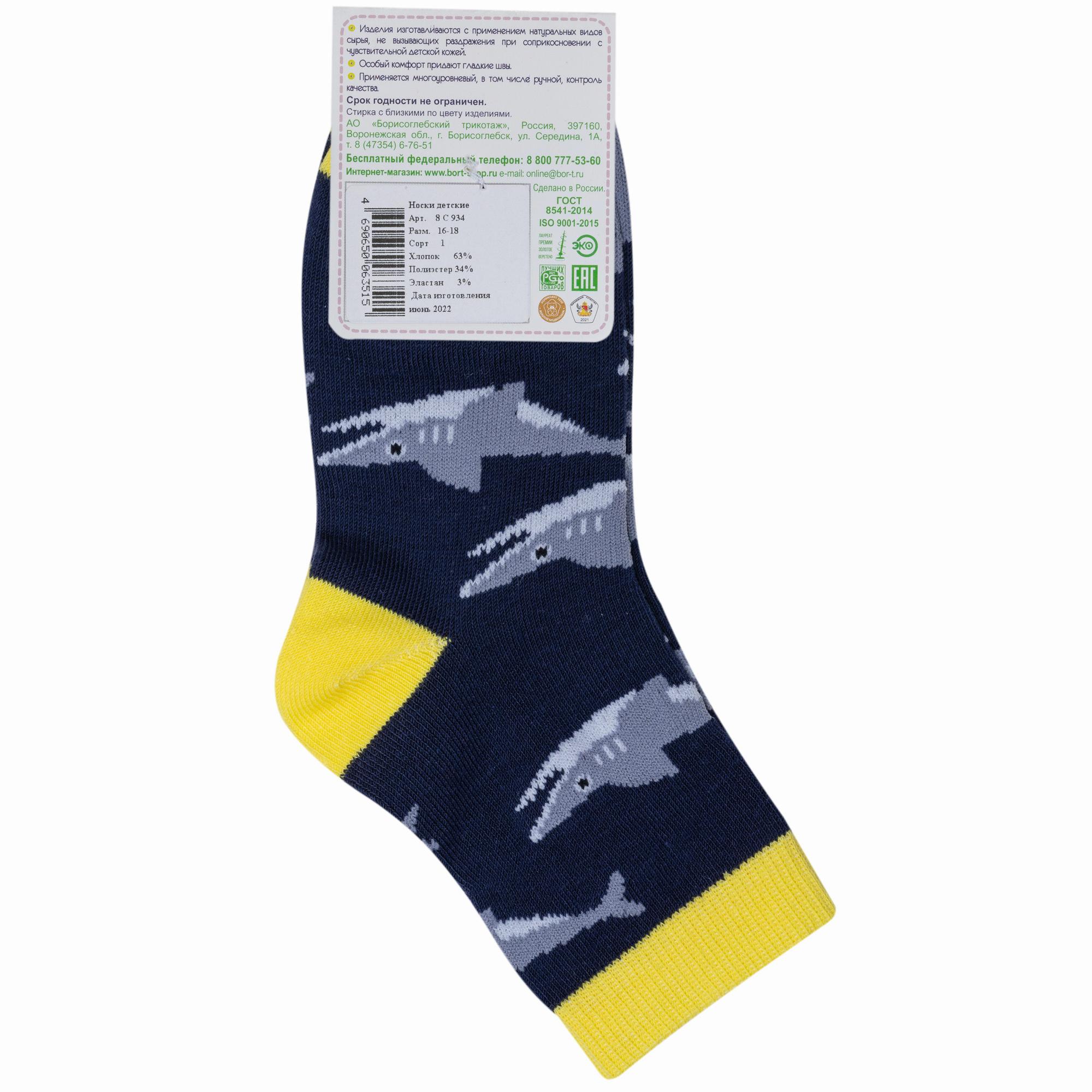 Круглогодичные укороченные детские носки, цвет темно-синий, повседневные, шов обычный (не бесшовные), принт (рисунок): животные, с узором, крупные контрастные рисунки, состав: 63% хлопок, 34% полиэстер, 3% эластан, арт. 8С934. Производитель «АО Борисоглебский трикотаж, Воронежская обл, Россия» под брендом «Борисоглебский трикотаж».